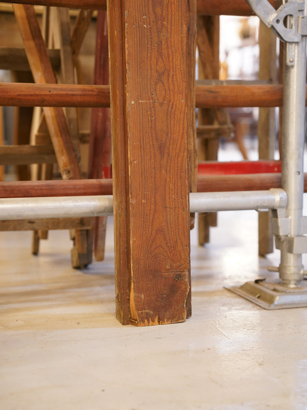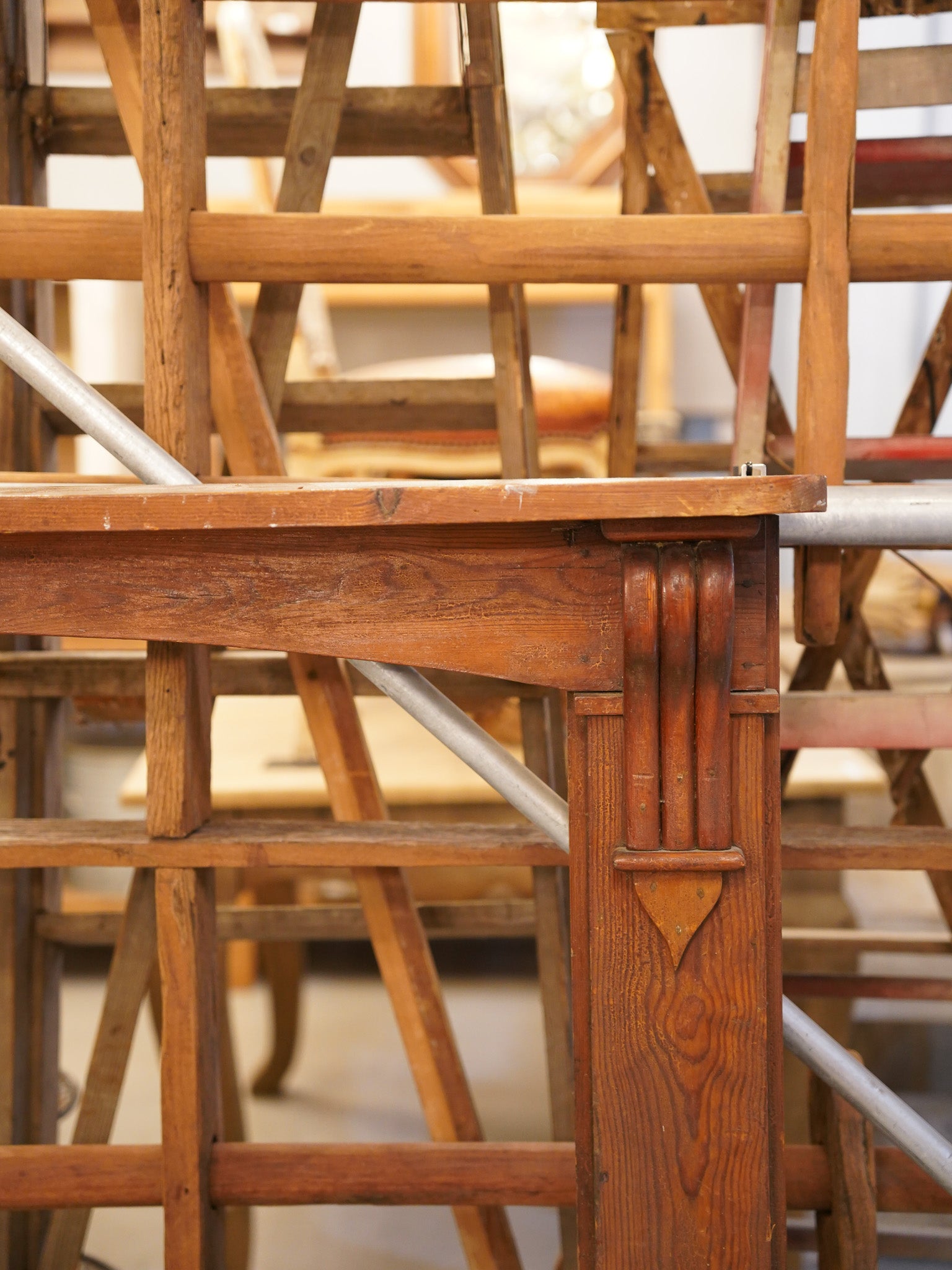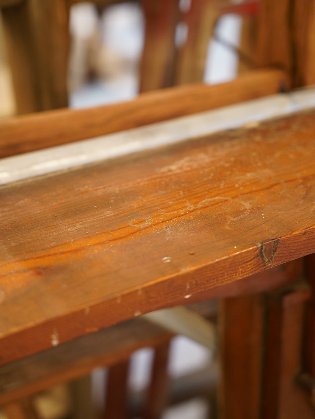 曲線や彫刻は控えめで、直線的かつ重厚な雰囲気があります。