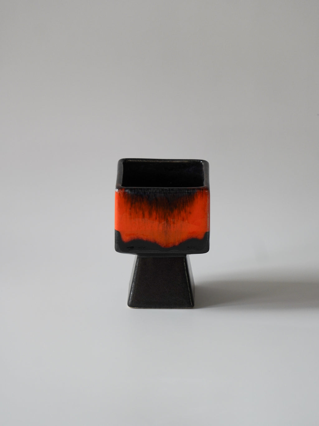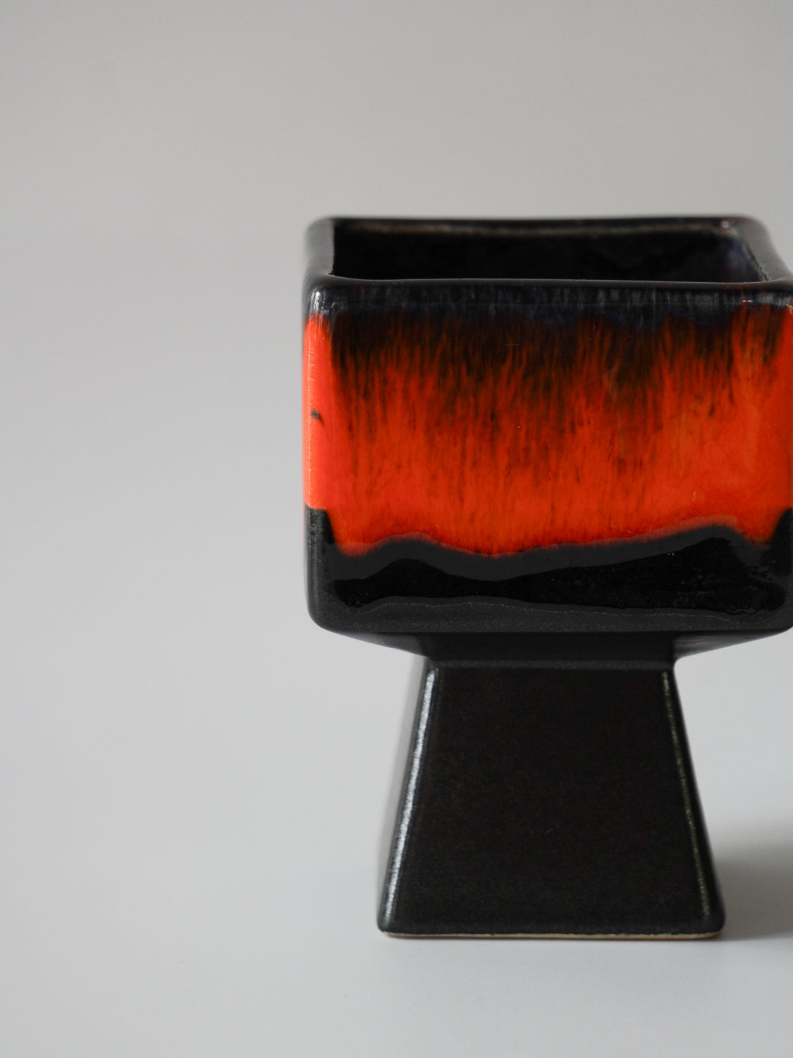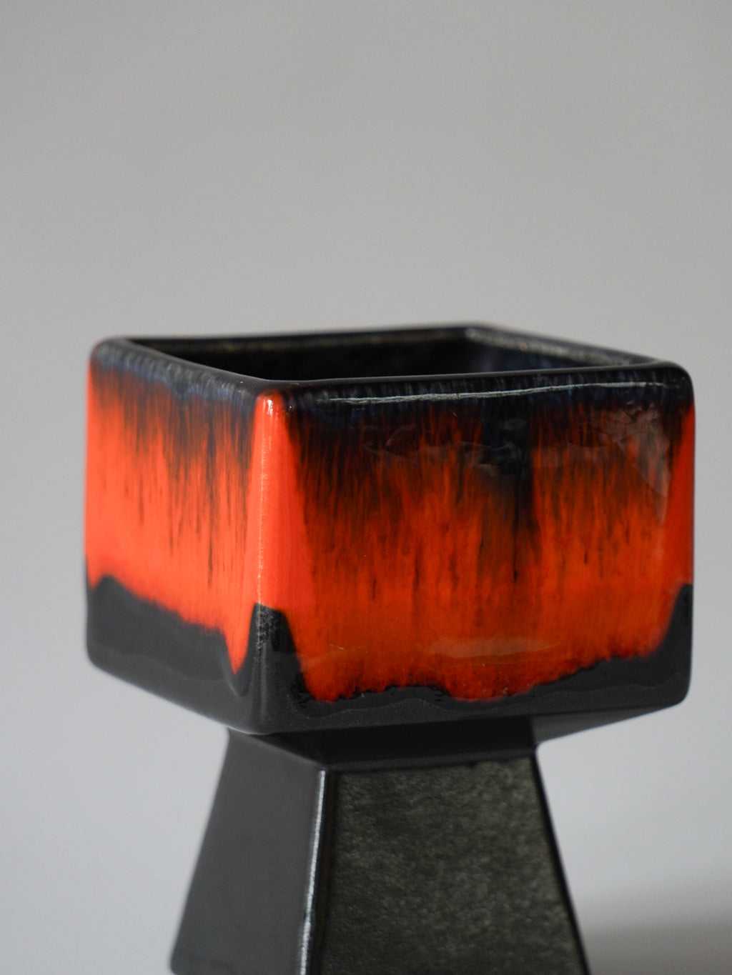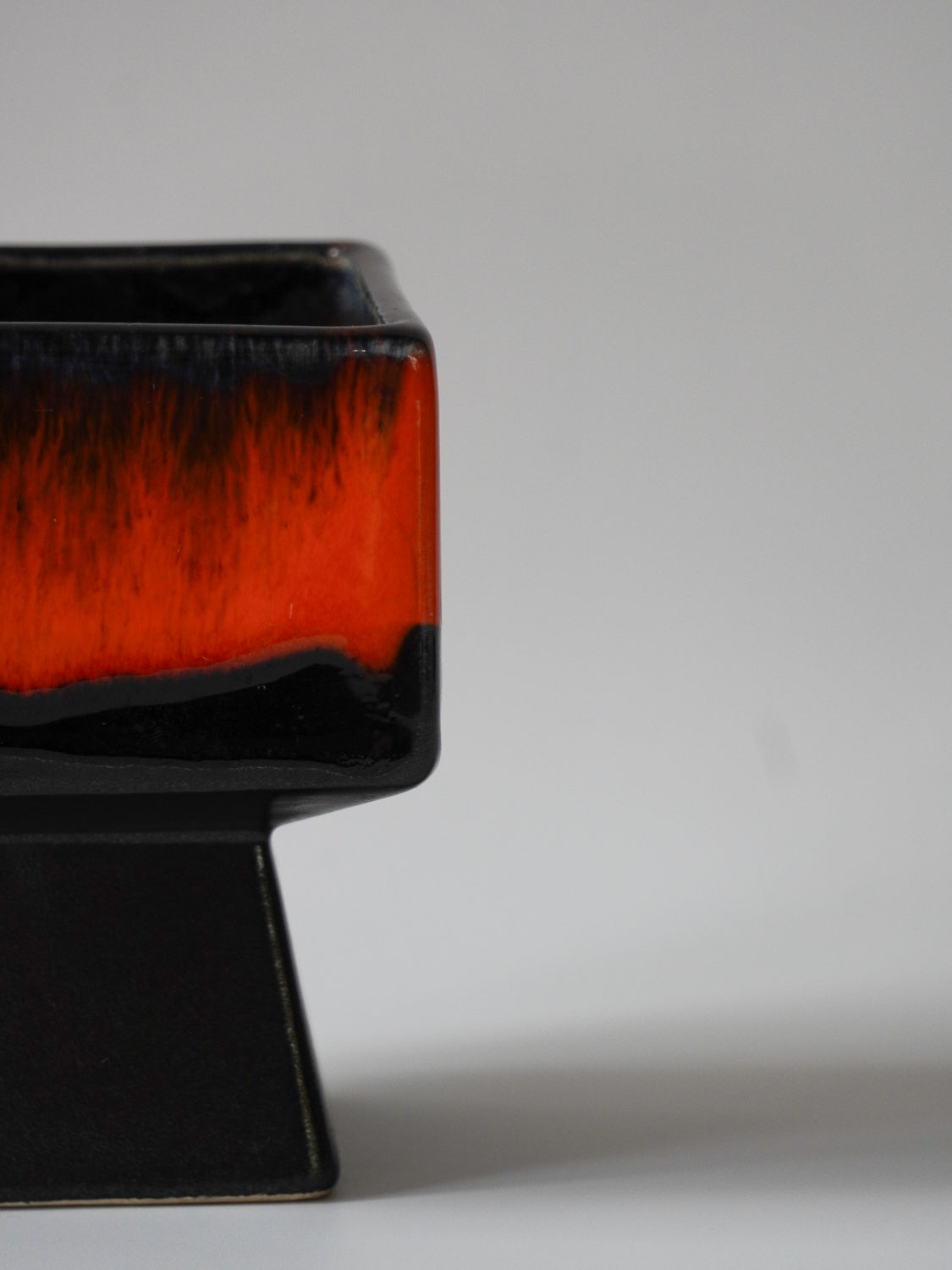 ジオメトリックな炎の輝きを放つミッドセンチュリーモダンのスクエア花器