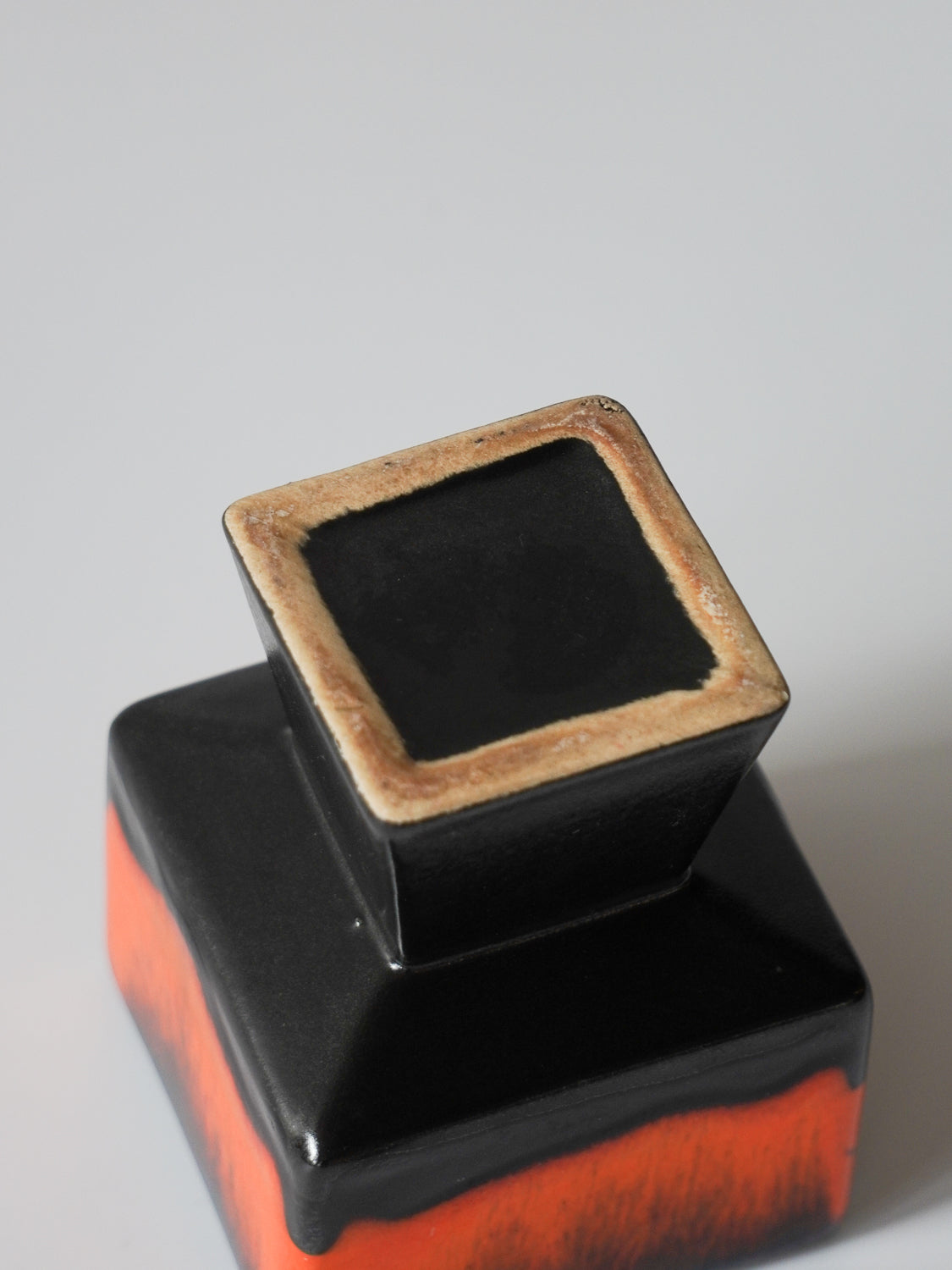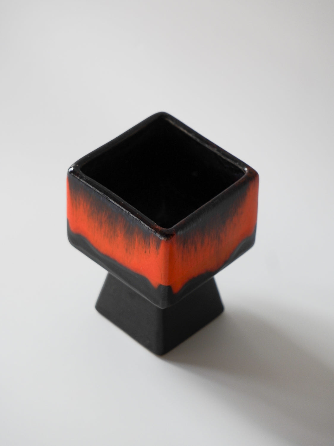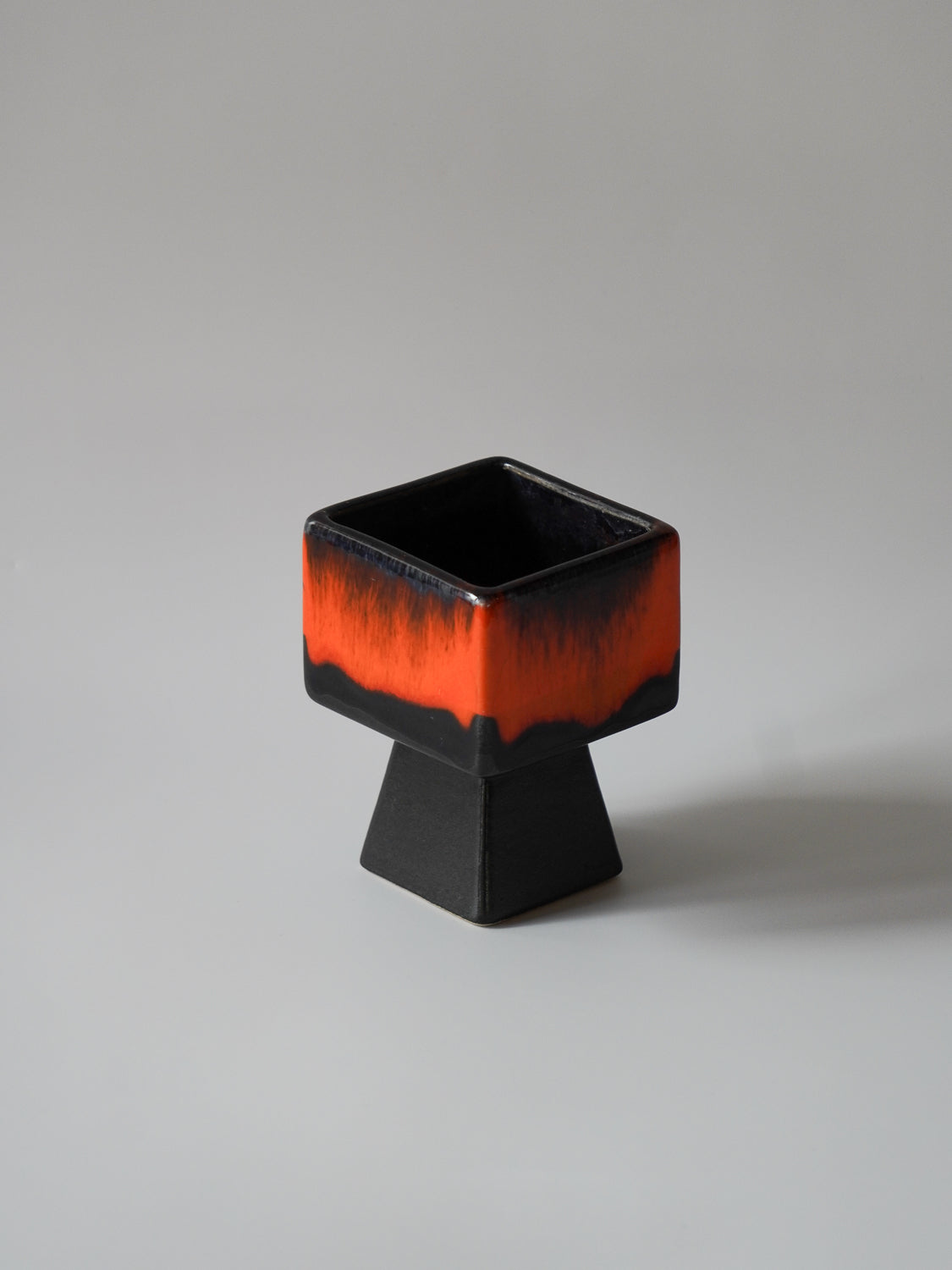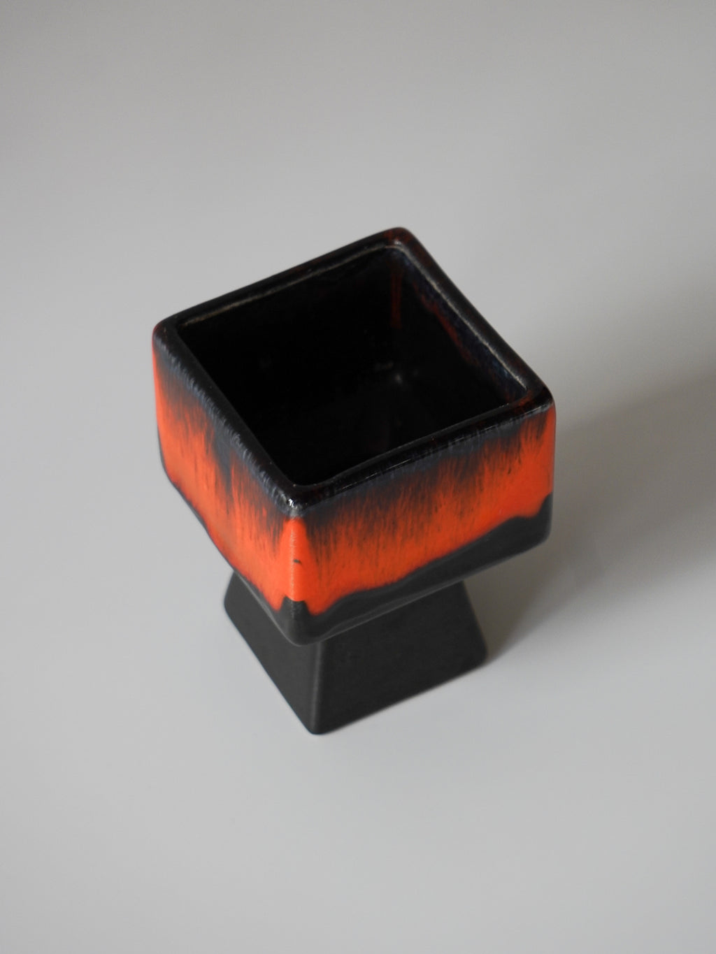 ジオメトリックな炎の輝きを放つミッドセンチュリーモダンのスクエア花器