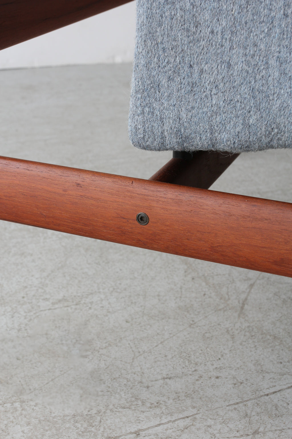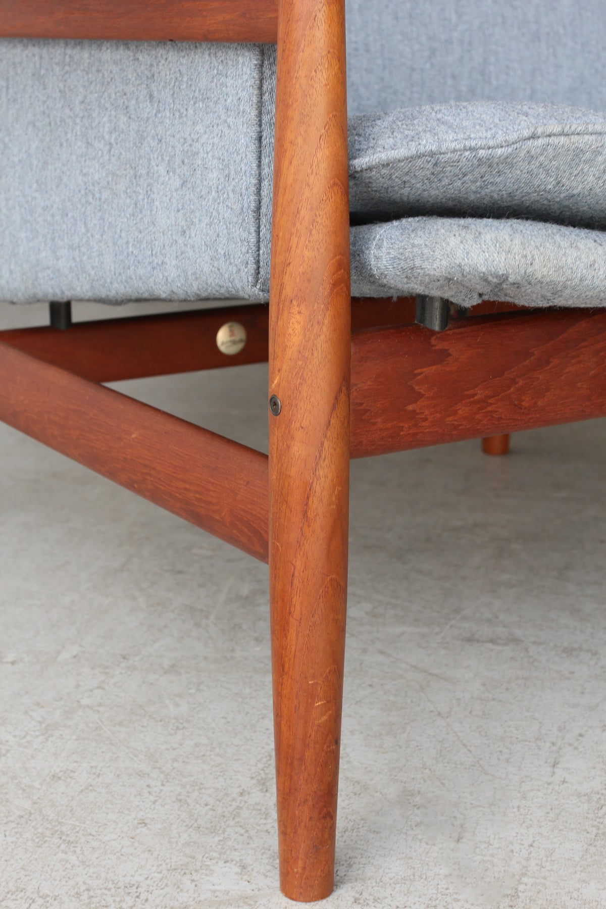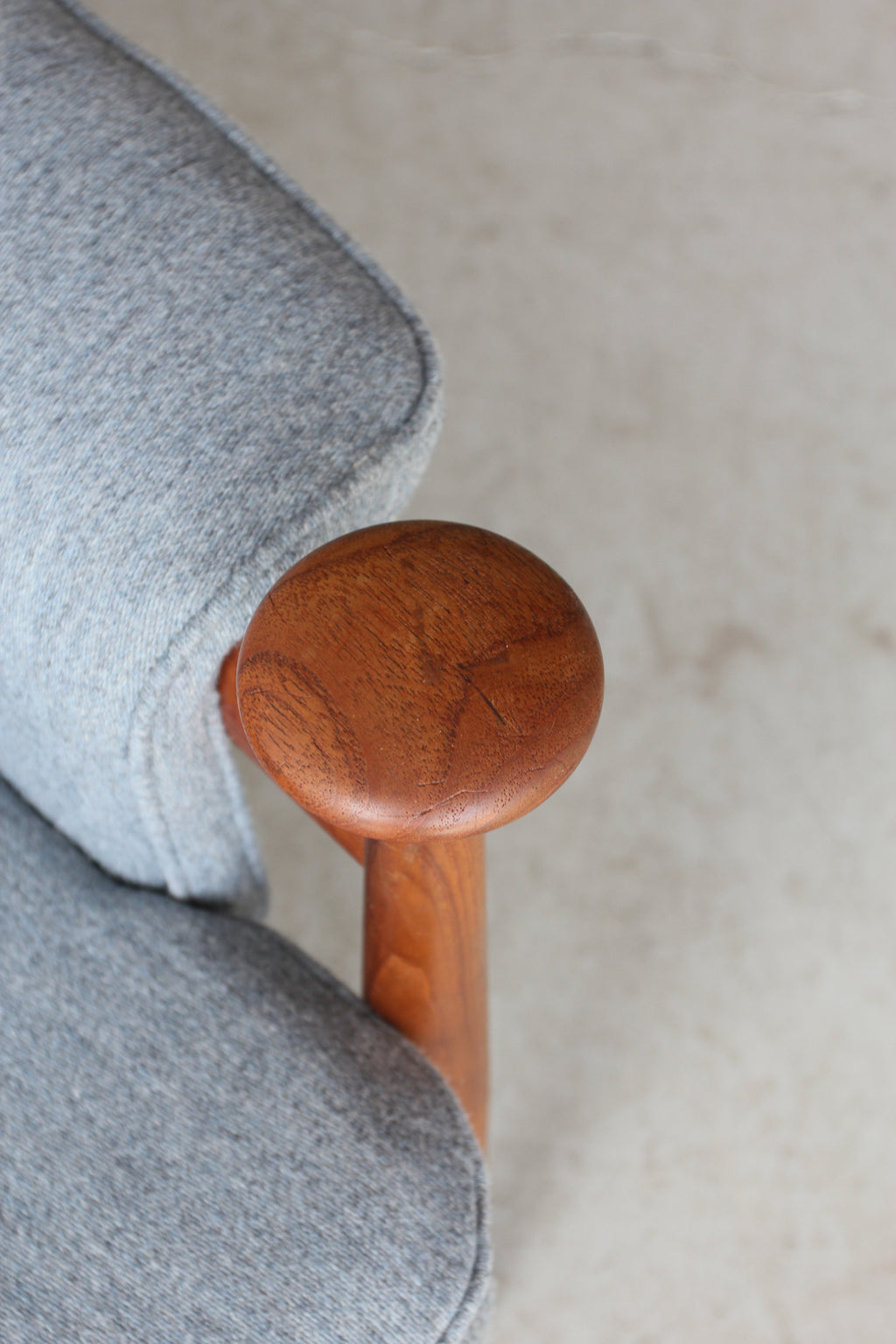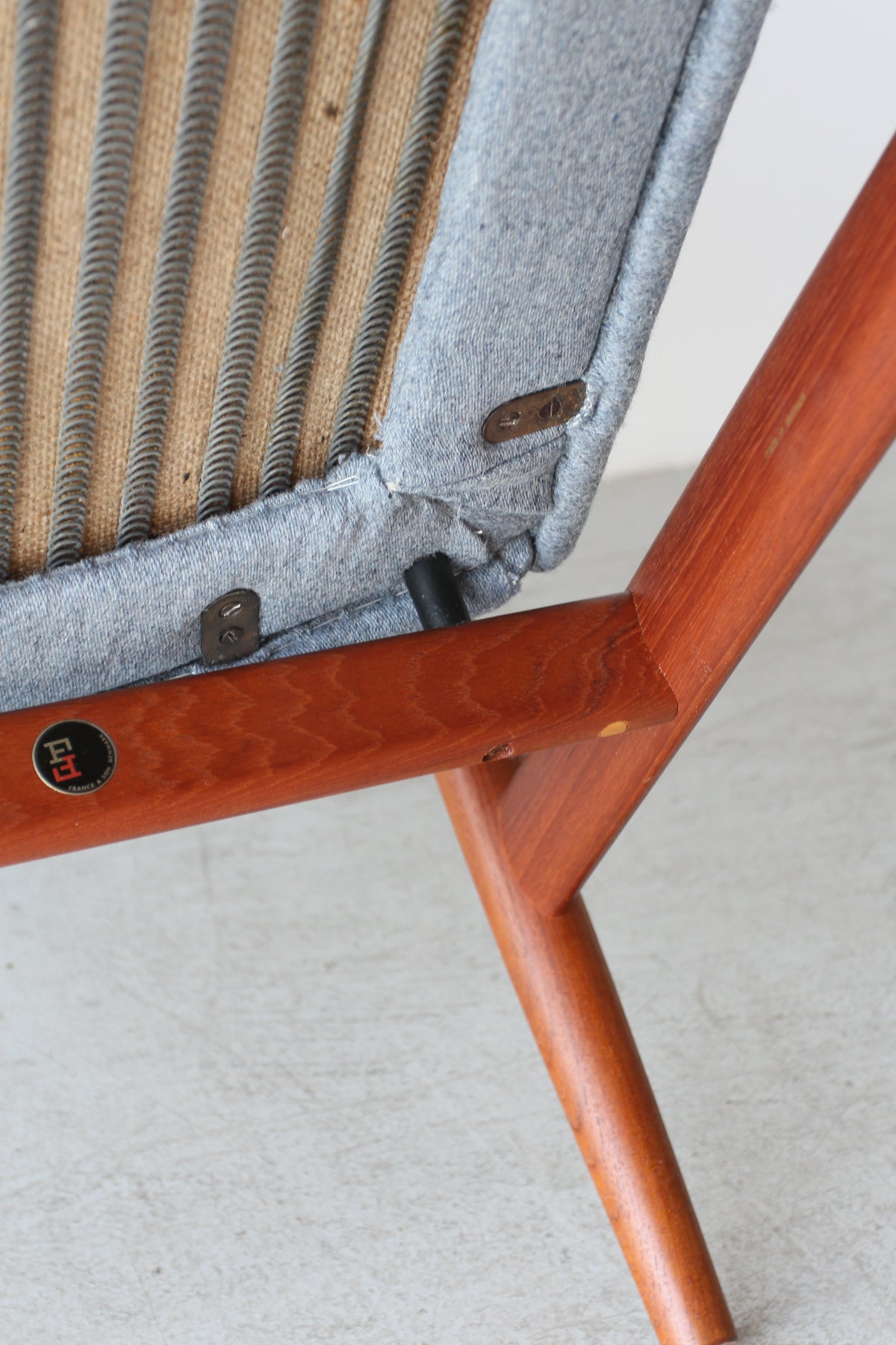 ヘッドレスト裏に横にわたっている笠木部分にはフィンガージョイントが採用されており、接合部の美しさに抜かりのない点はフィン・ユールの細部にこだわるクオリティを証明しています。