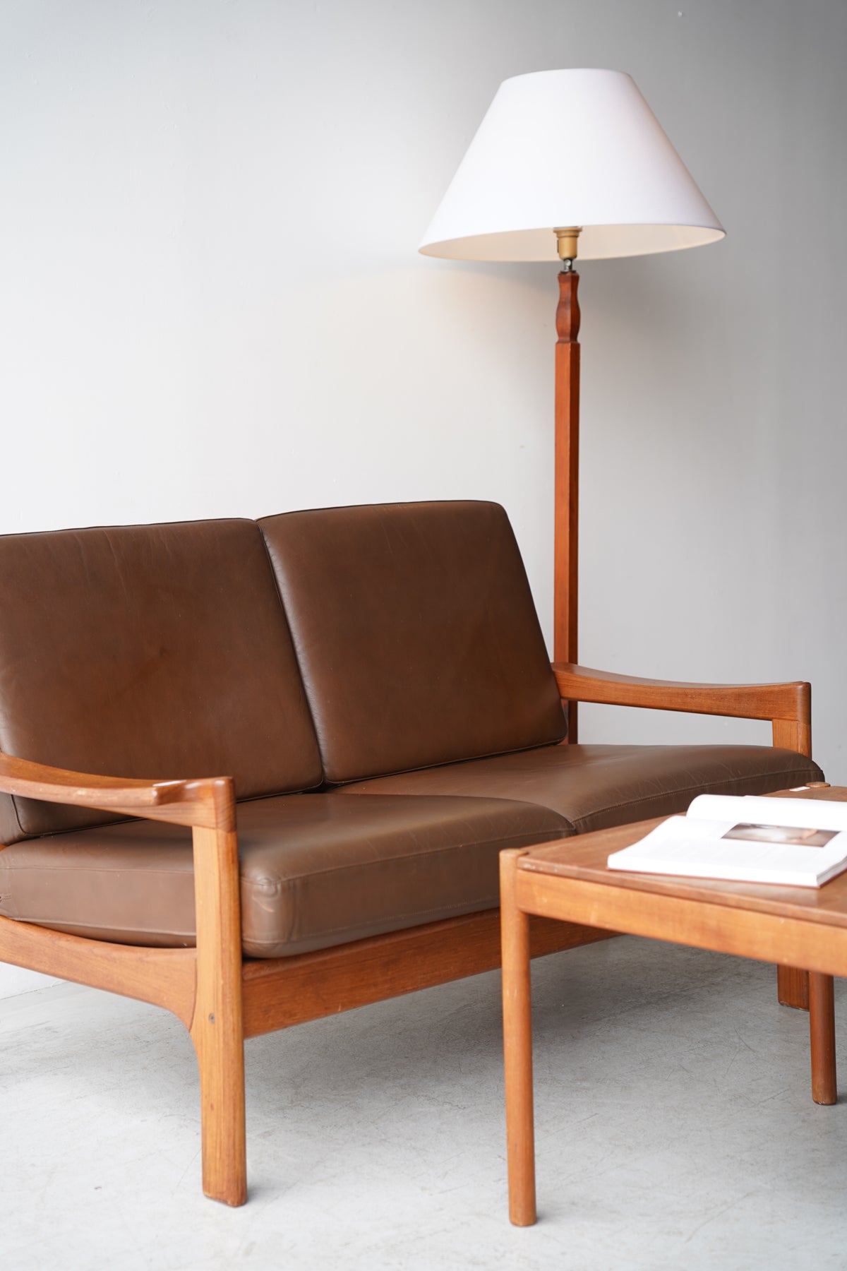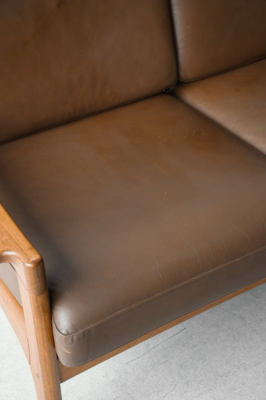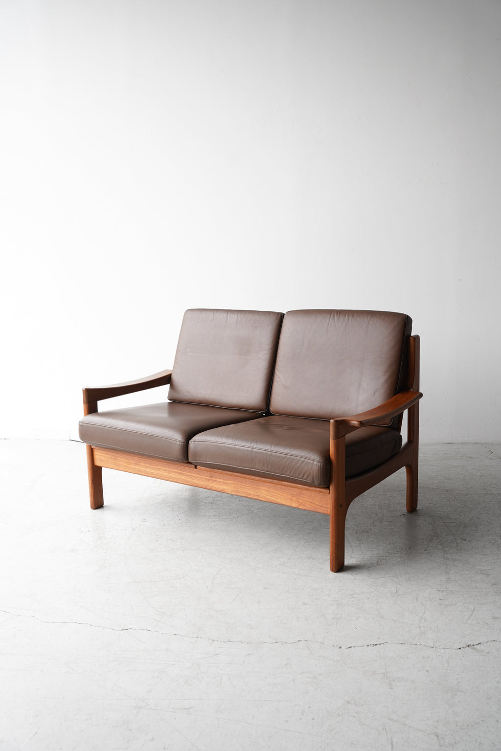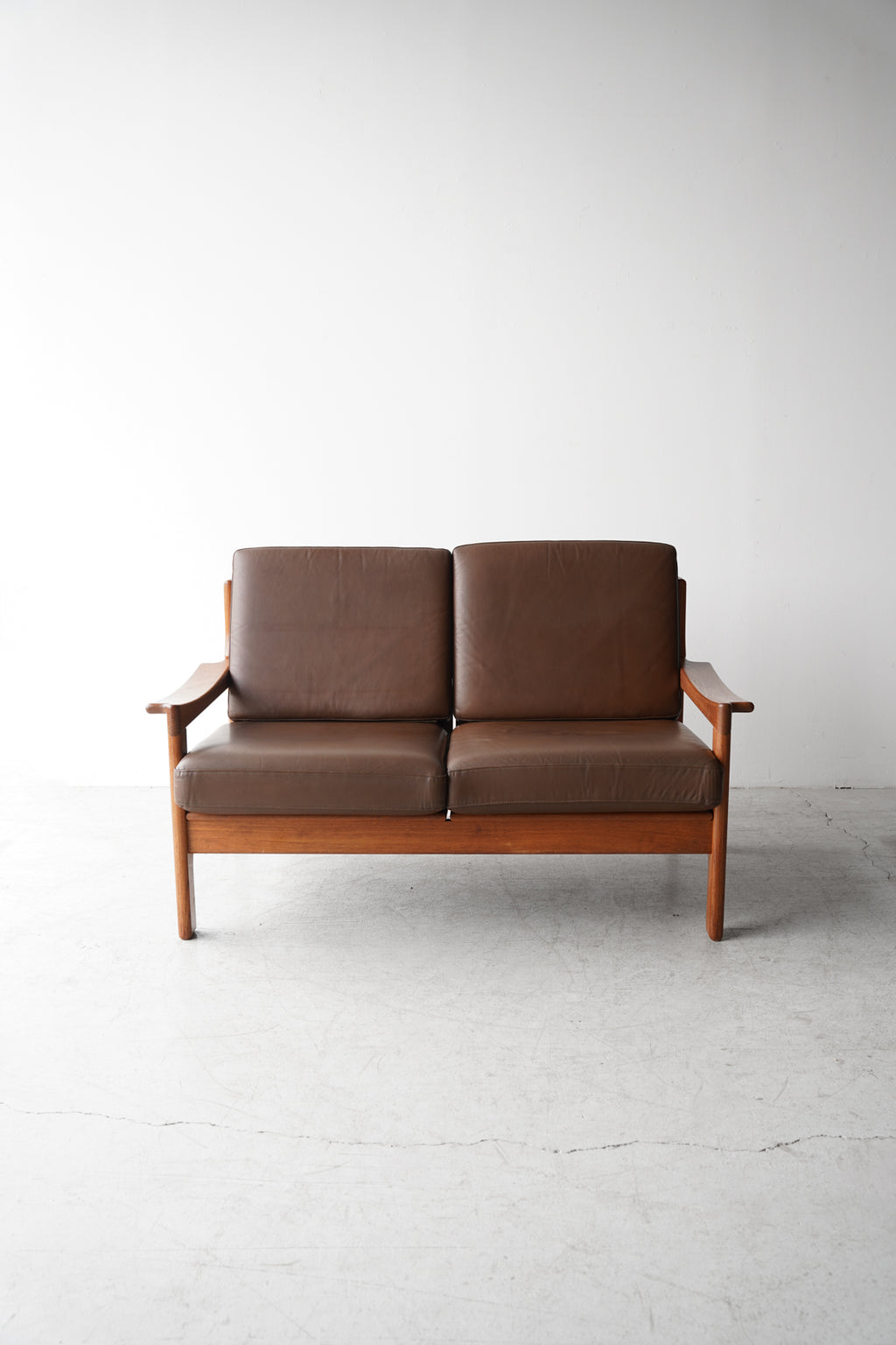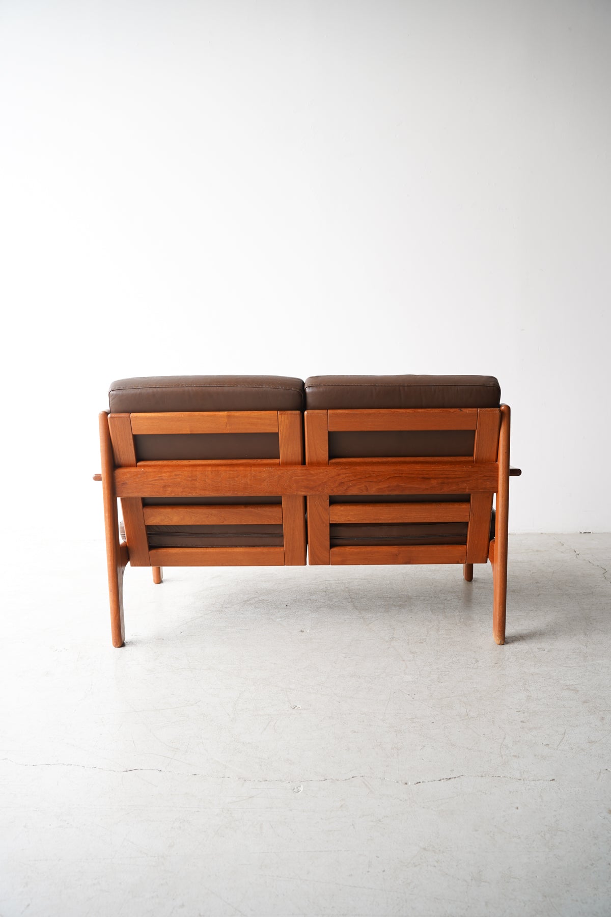 上質なレザーとフレームのデザインが特徴的な2シーターソファ
