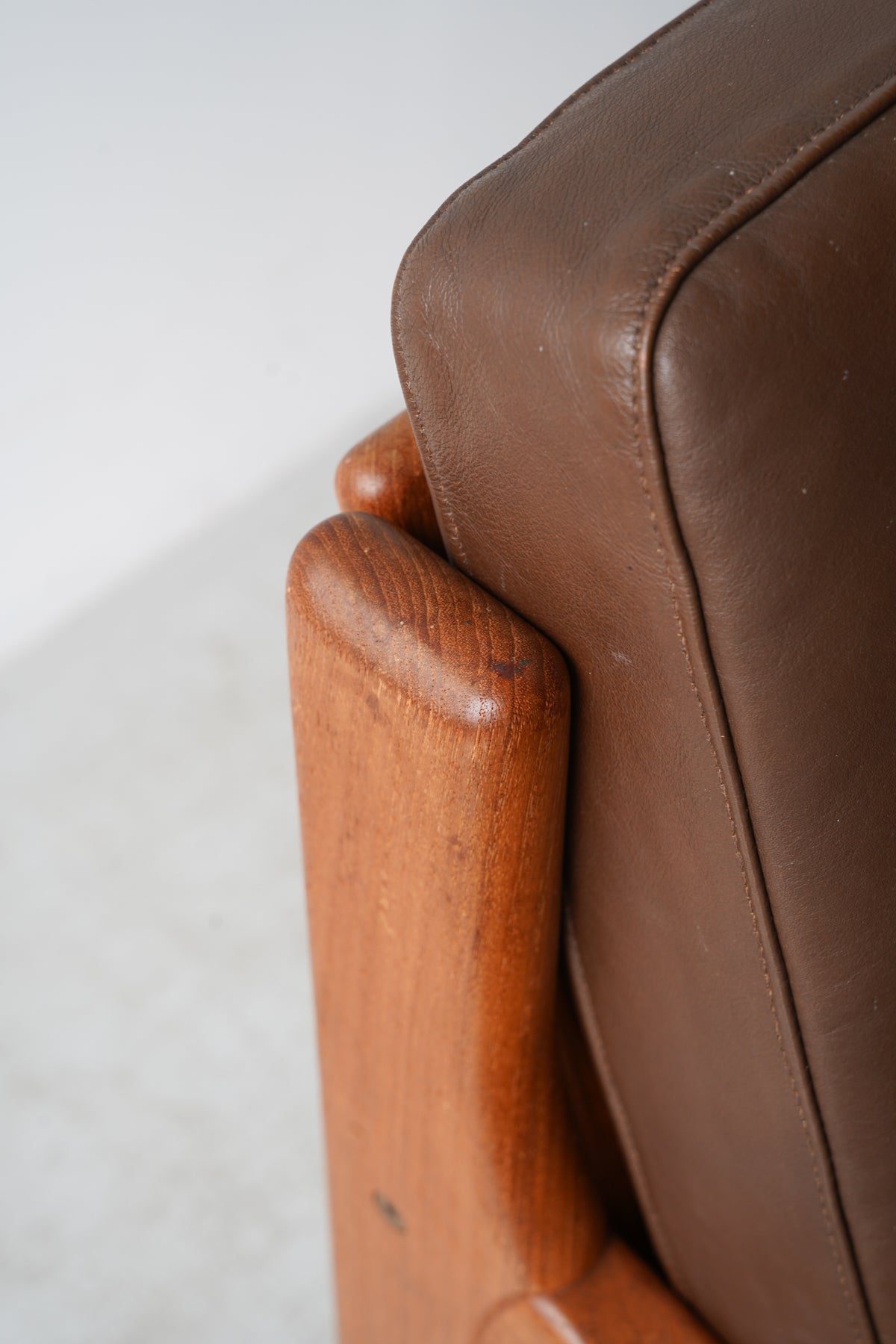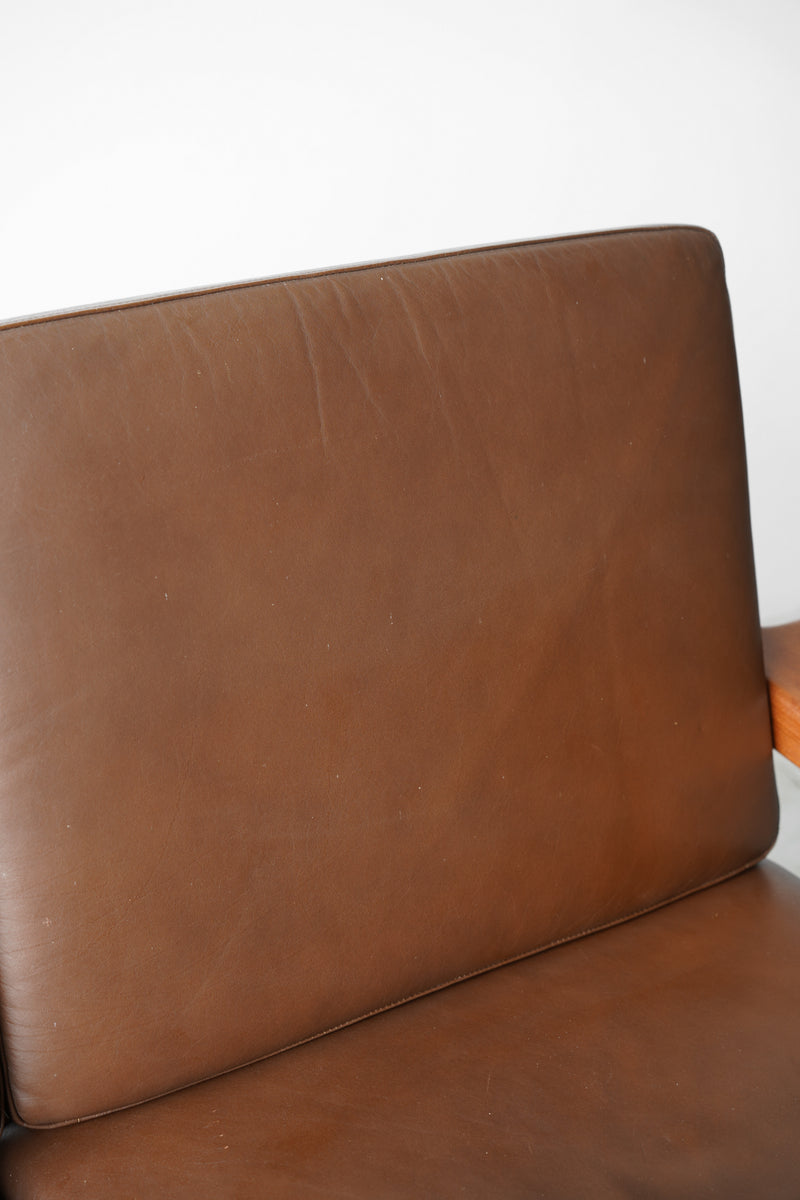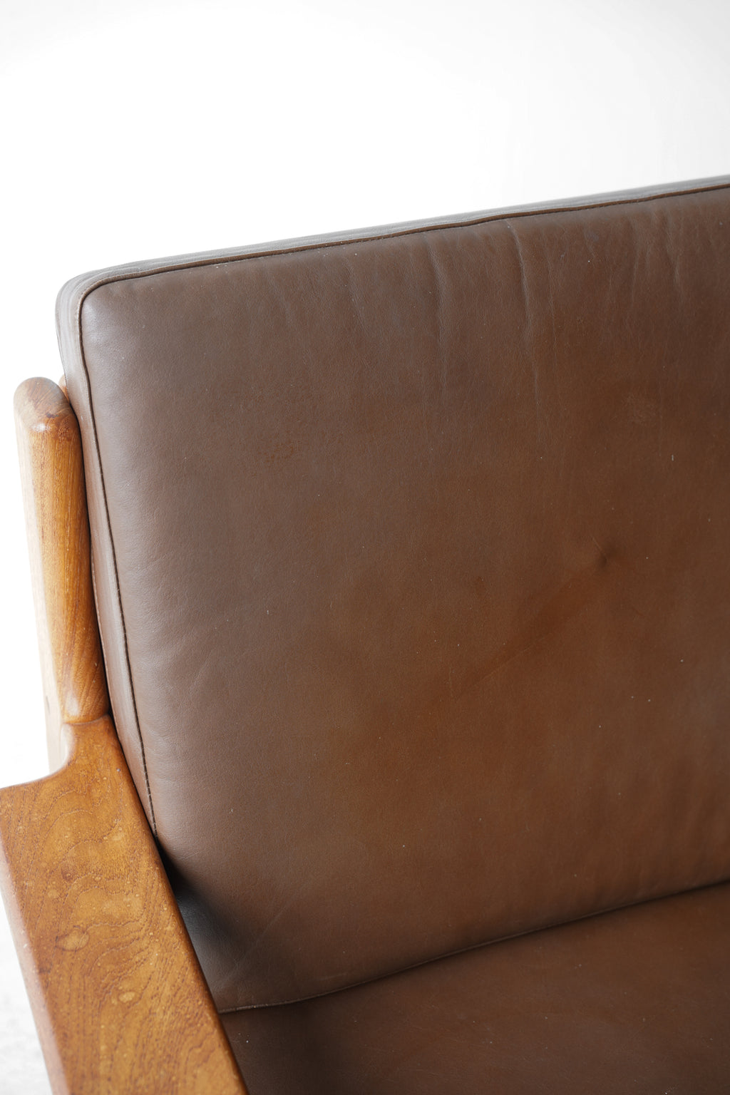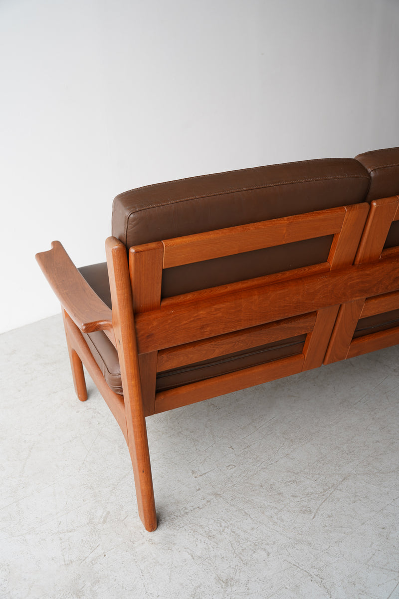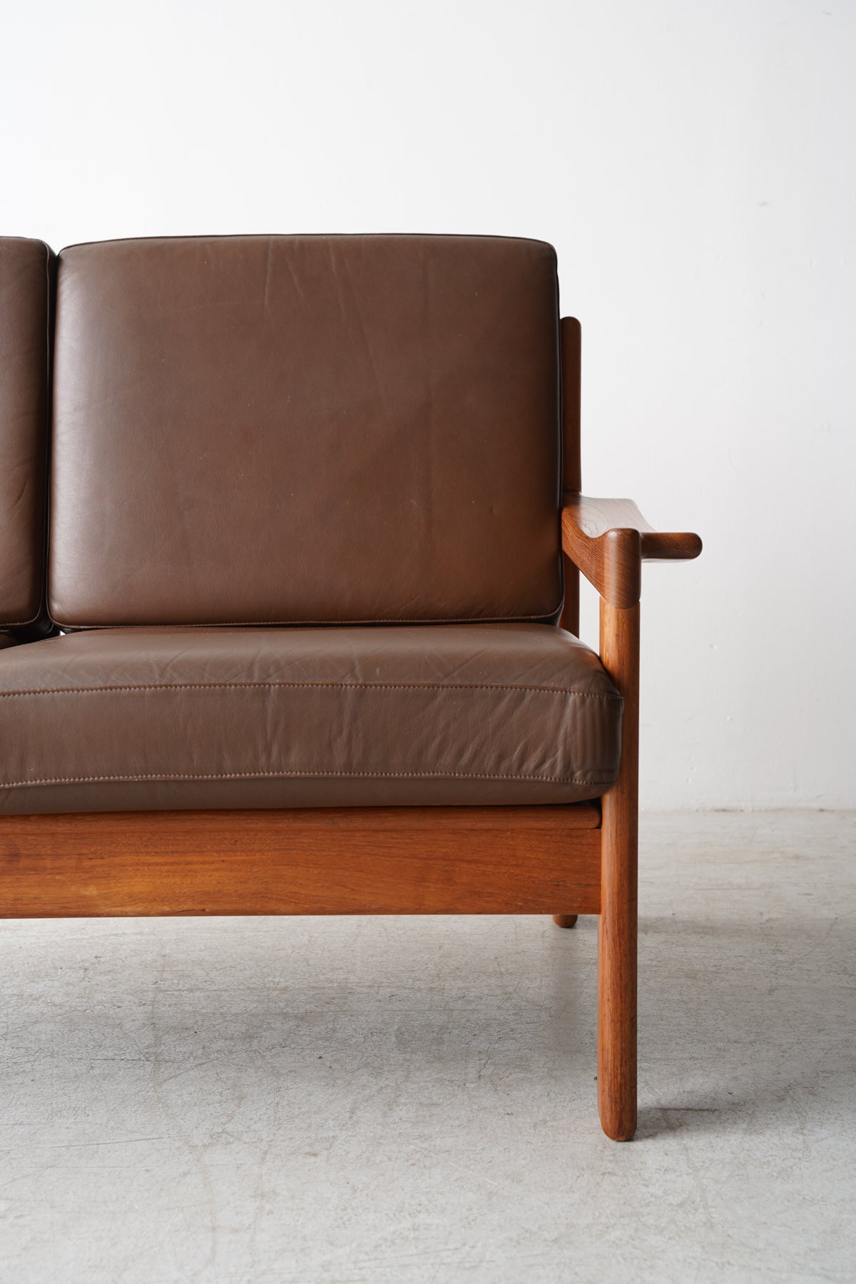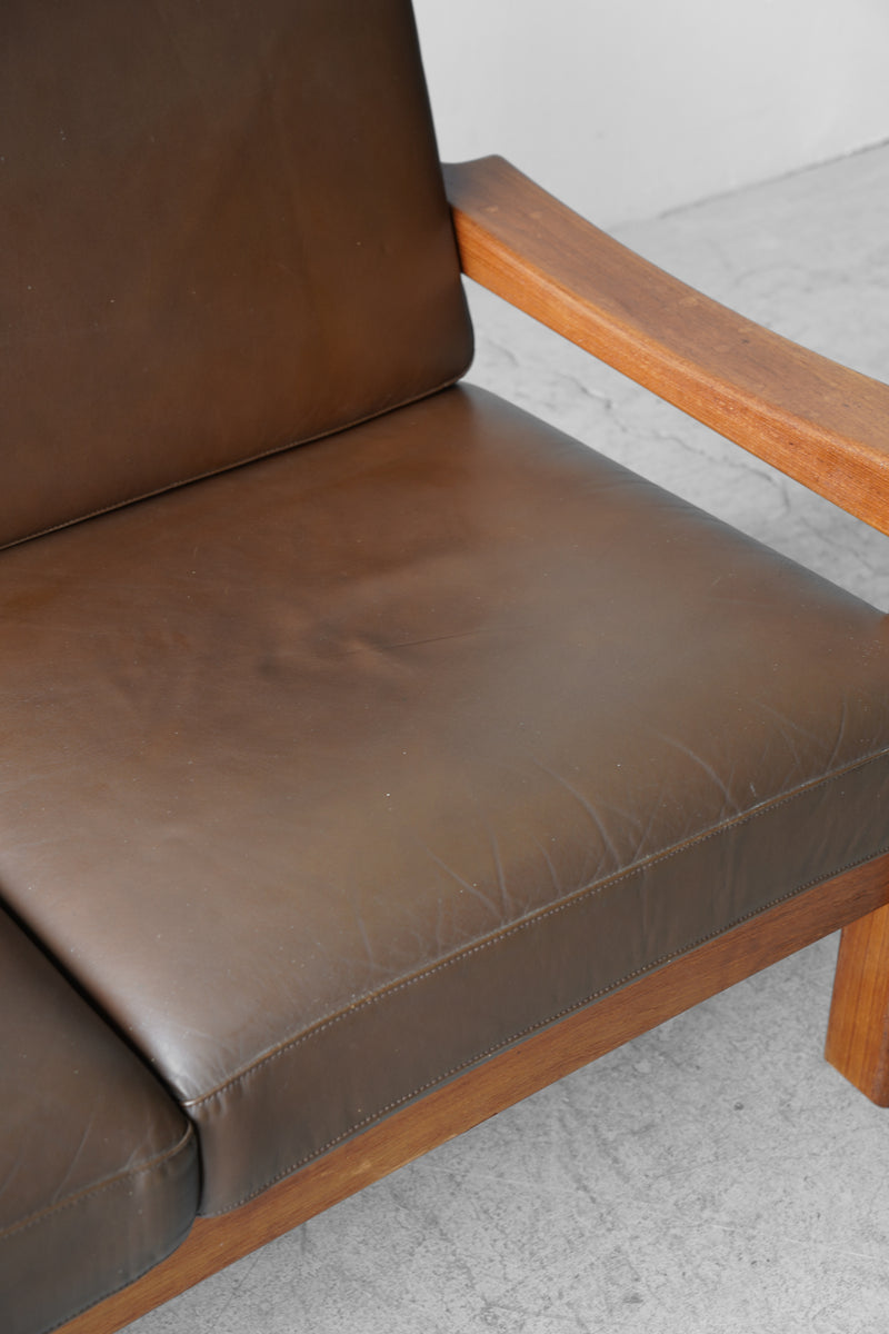 上質なレザーとフレームのデザインが特徴的な2シーターソファ