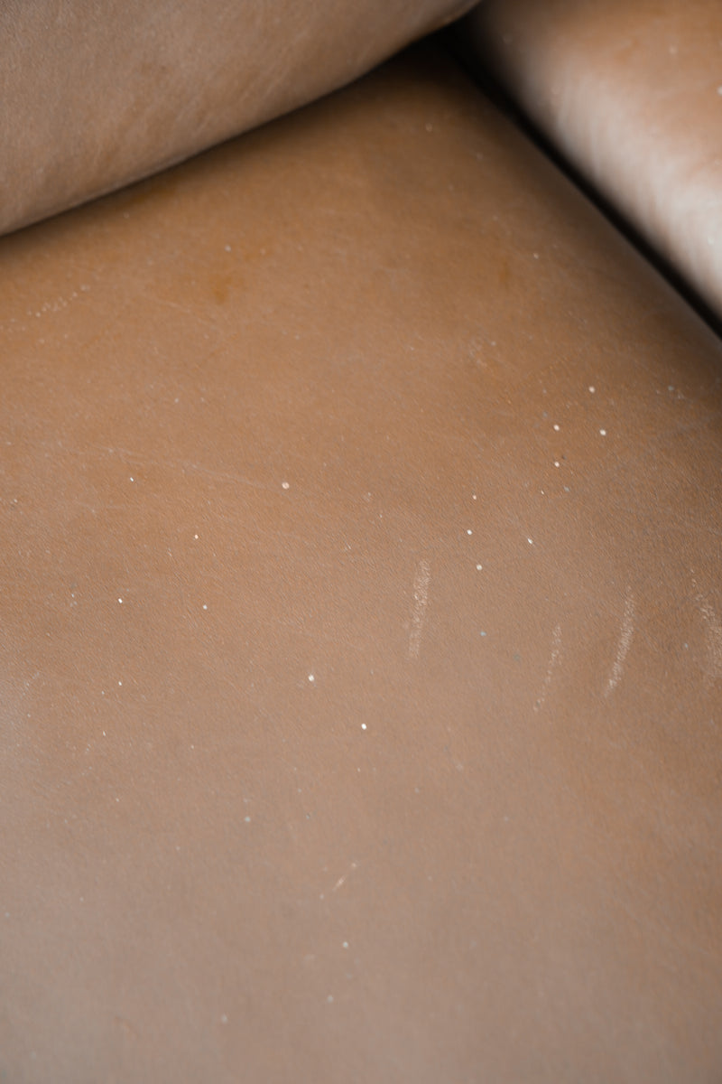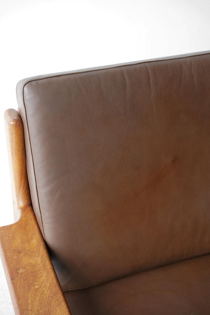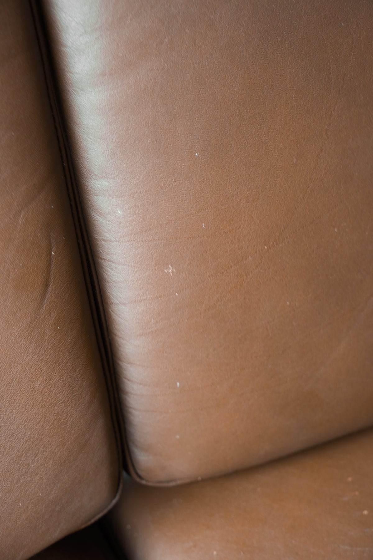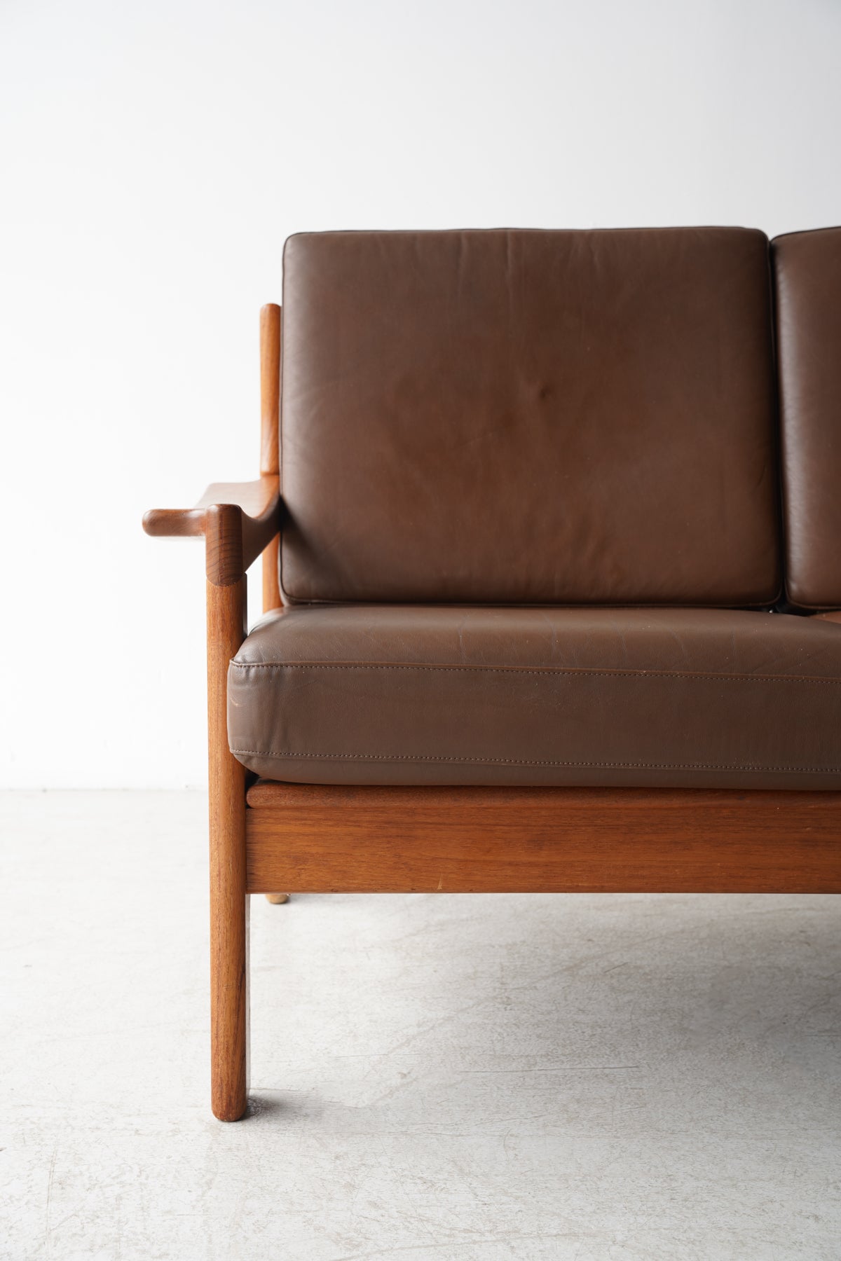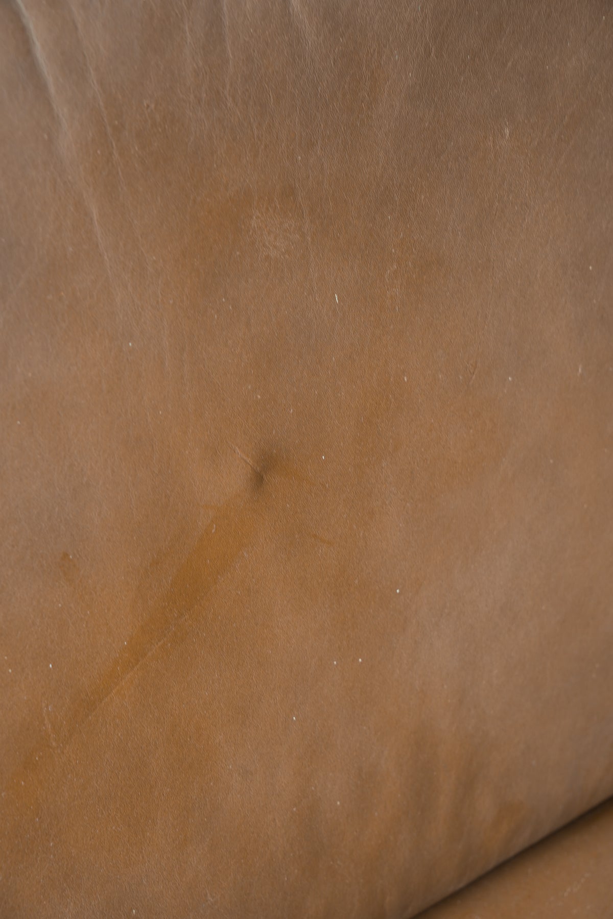 きめ細かいレザーの質感とウッドフレームを組み合わせたヴィンテージソファ。