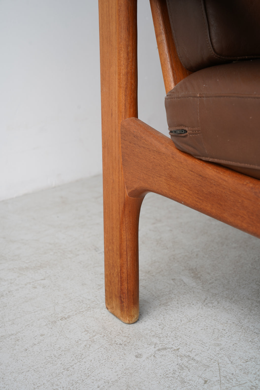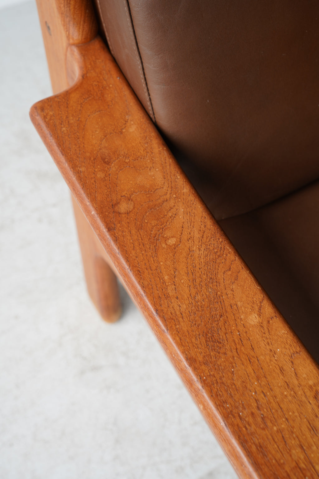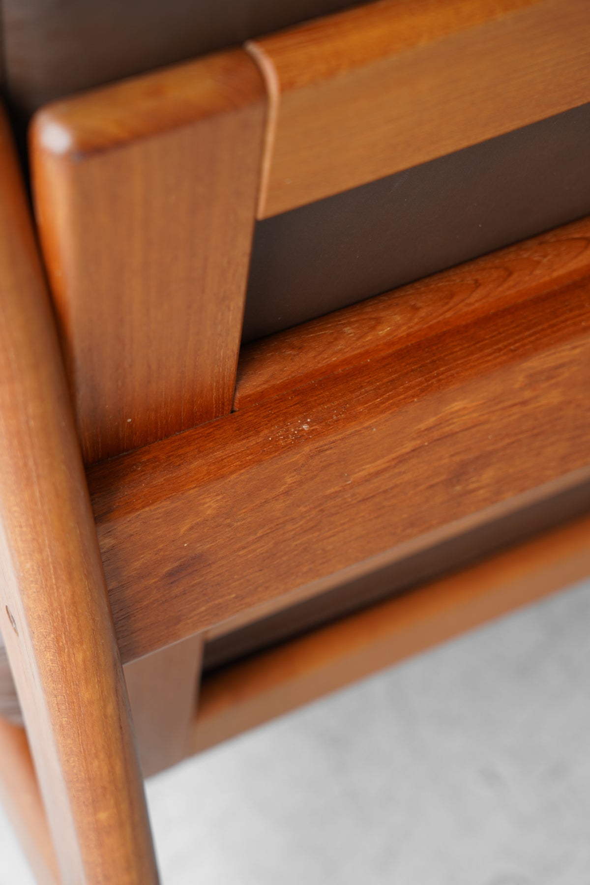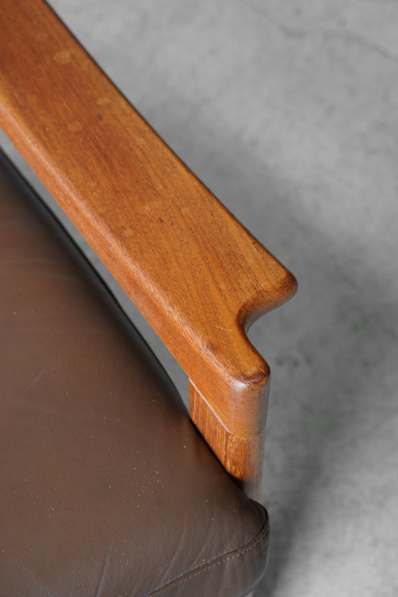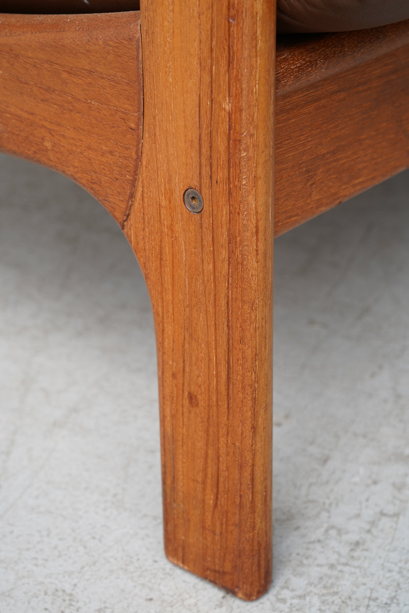 きめ細かいレザーの質感とウッドフレームを組み合わせたヴィンテージソファ。