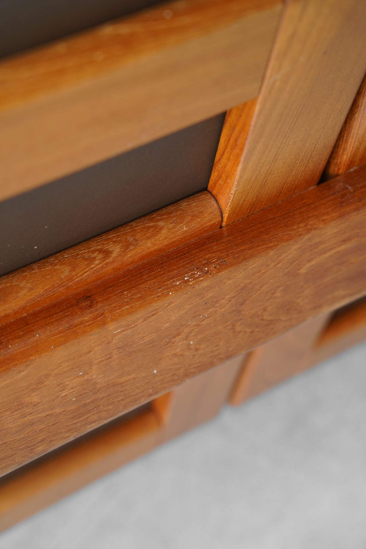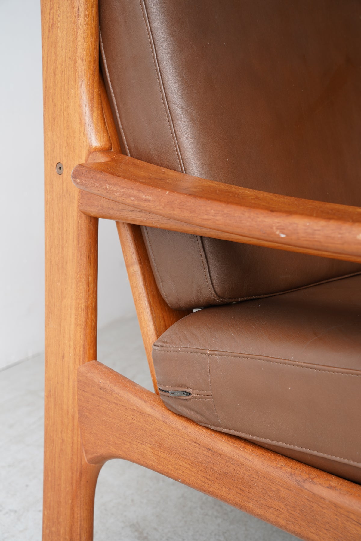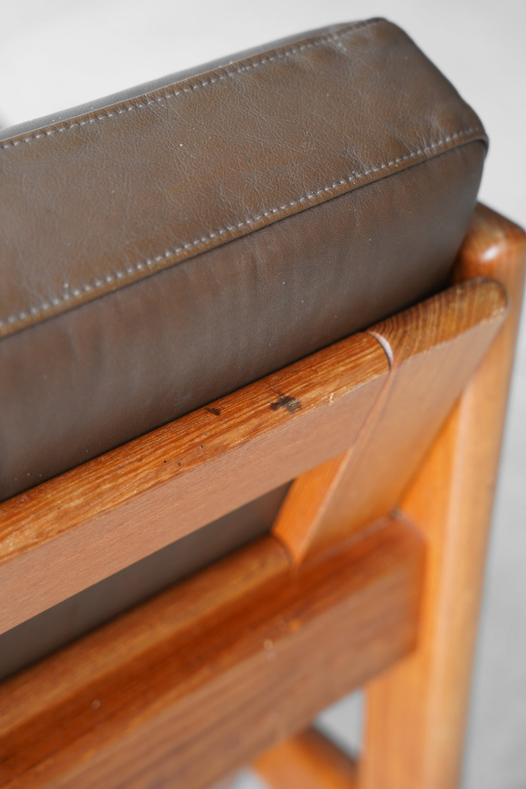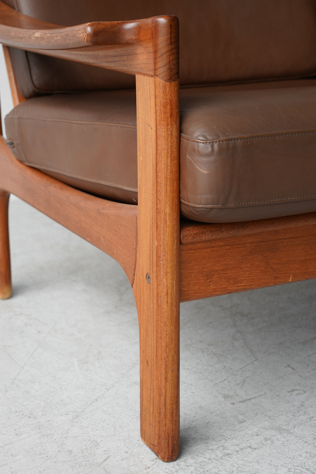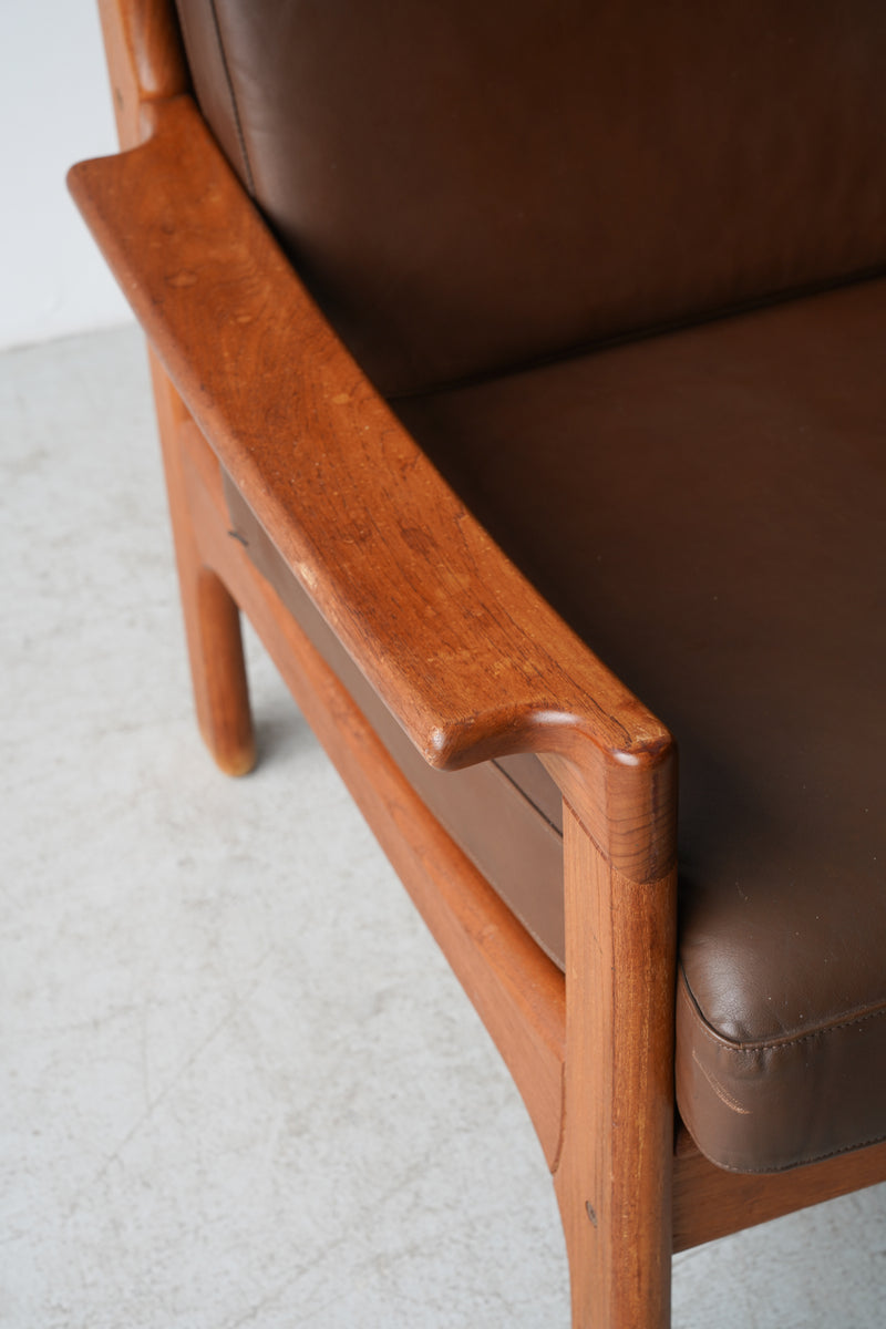 きめ細かいレザーの質感とウッドフレームを組み合わせたヴィンテージソファ。
