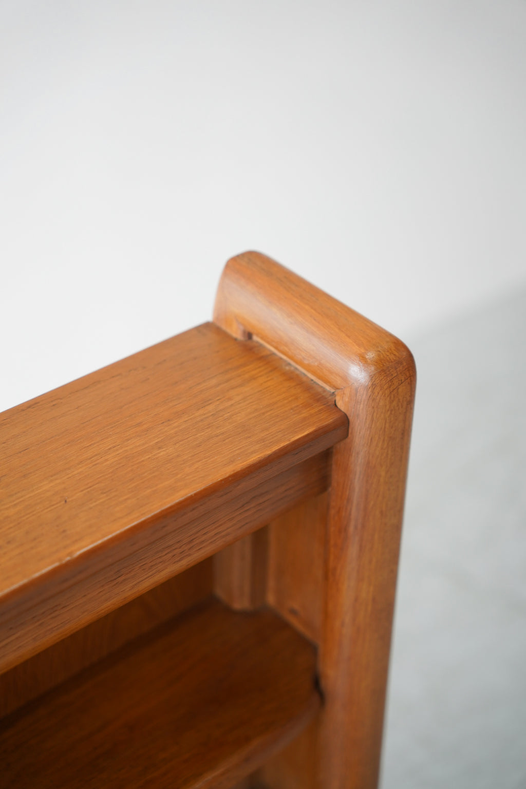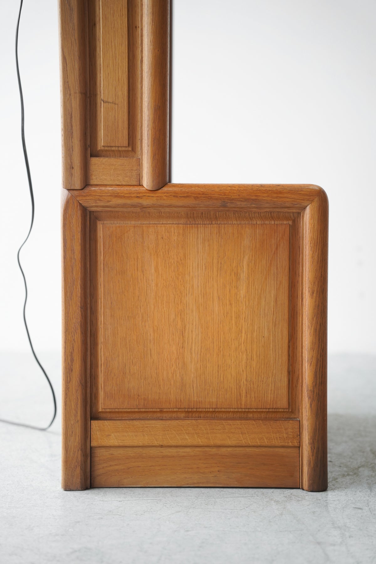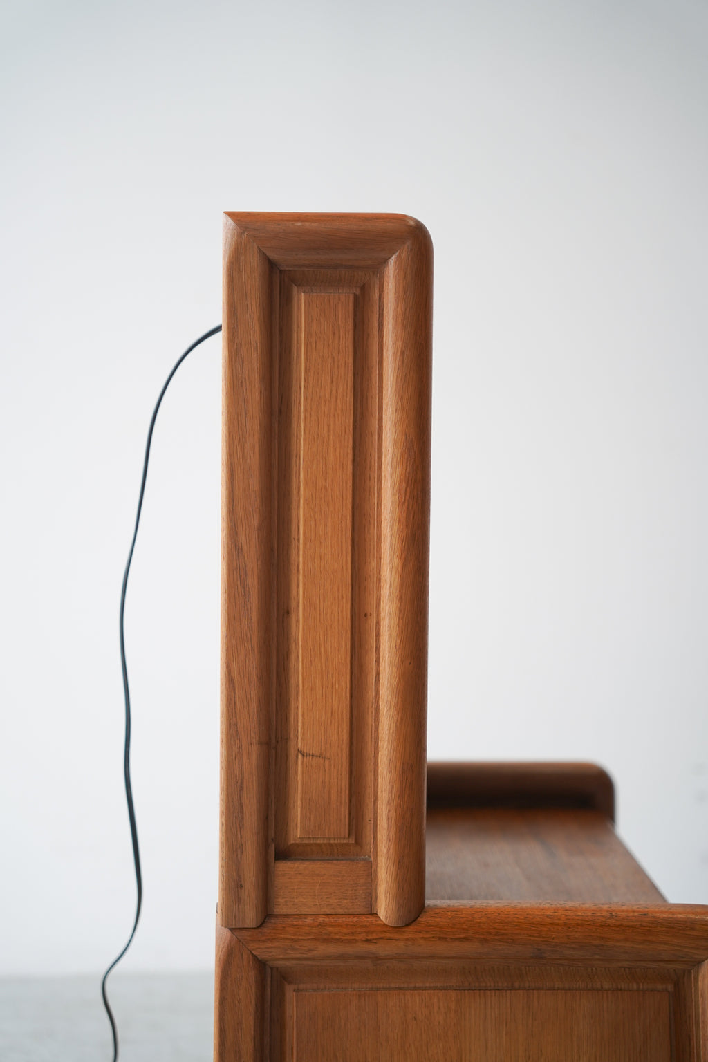 素材には上質なオーク材が贅沢に使用されており、角が丸く削り出された分厚いフレームが、堅牢でありながらも温かみのある印象を与えます。