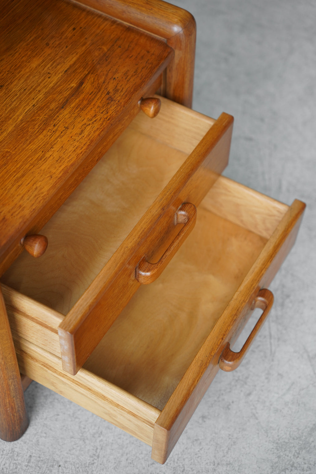 こちらは、1960年代から1970年代頃に製造されたとみられる、オーク材でつくられたヴィンテージのナイトスタンドです。