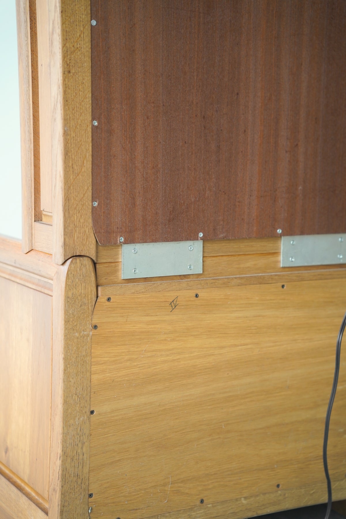 このキャビネットの最大の魅力は、その彫刻的なデザインと、光を内包するユニークな構造です。