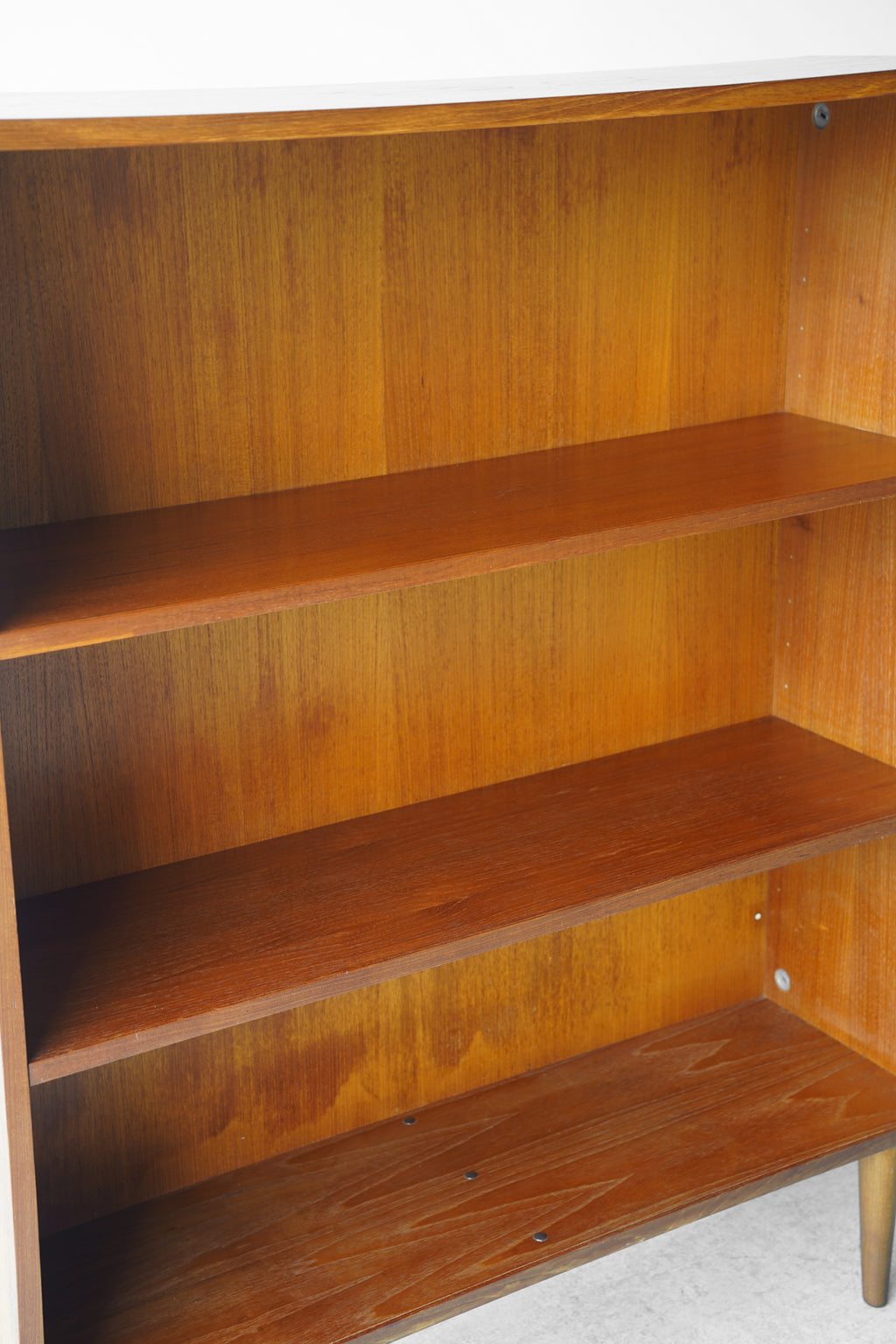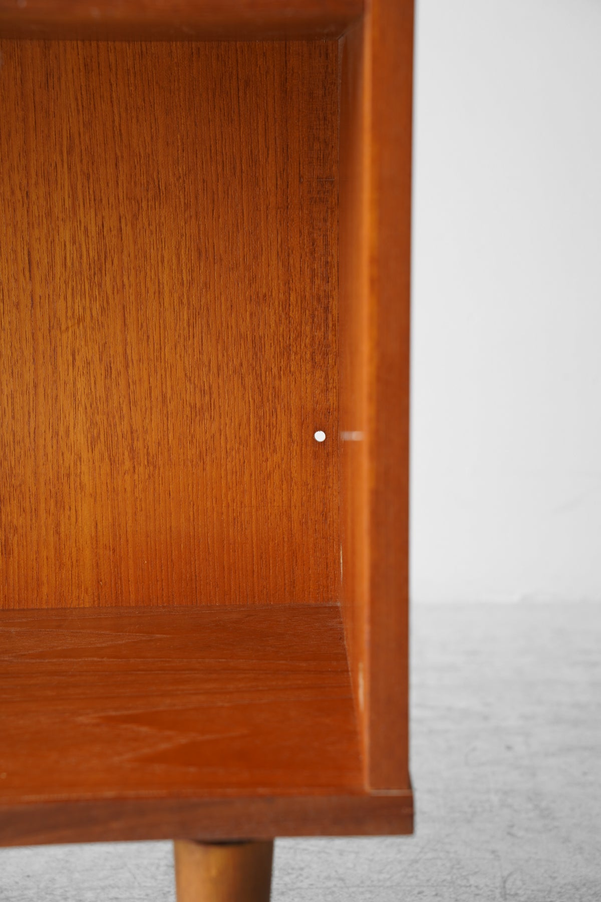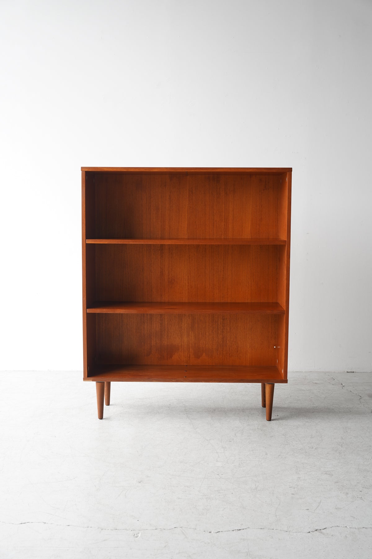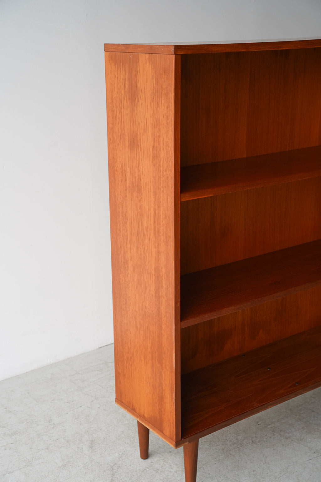 こちらは、おそらく1950年代から1970年代にかけてデンマークで製造されたとみられる、ヴィンテージのチーク材シェルフです。
