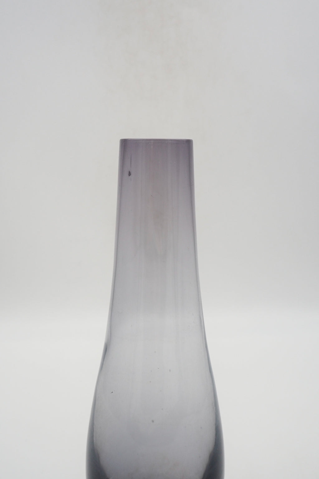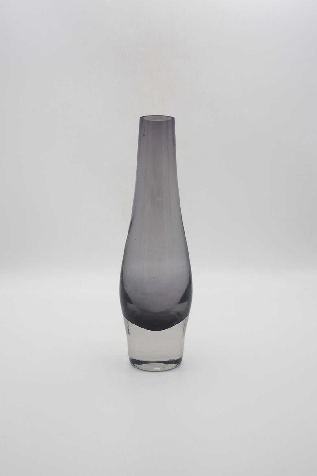 無駄の無いミニマルなフォルムに、淡く煙るようなグレーカラーが美しく映えるガラスフラワーベース。