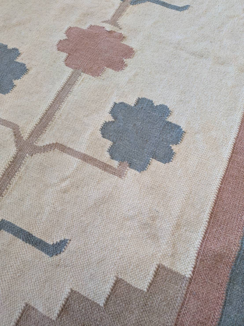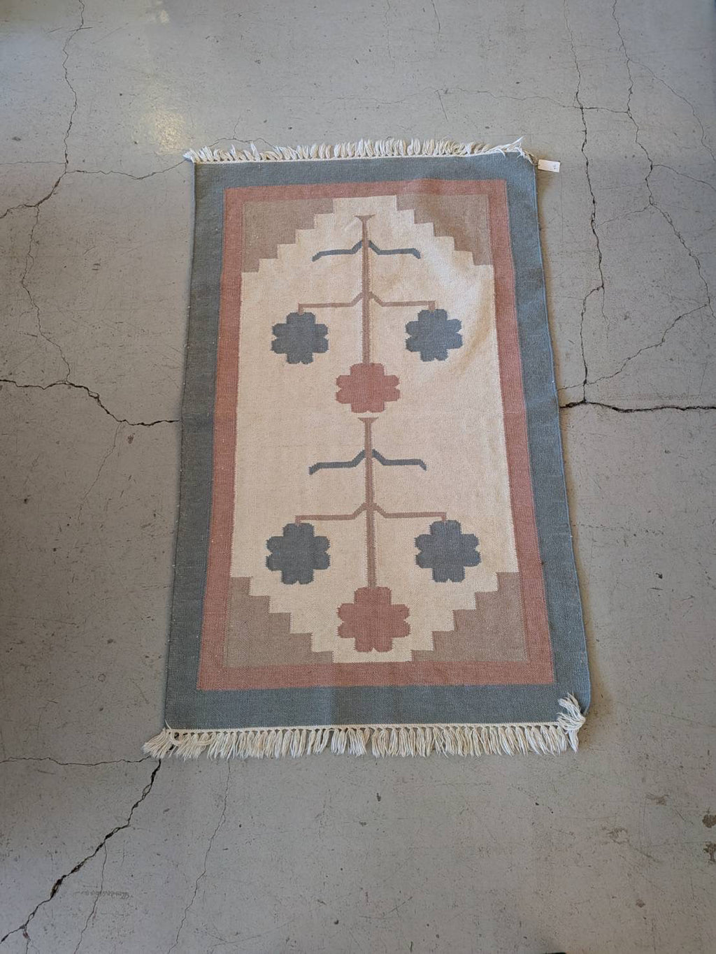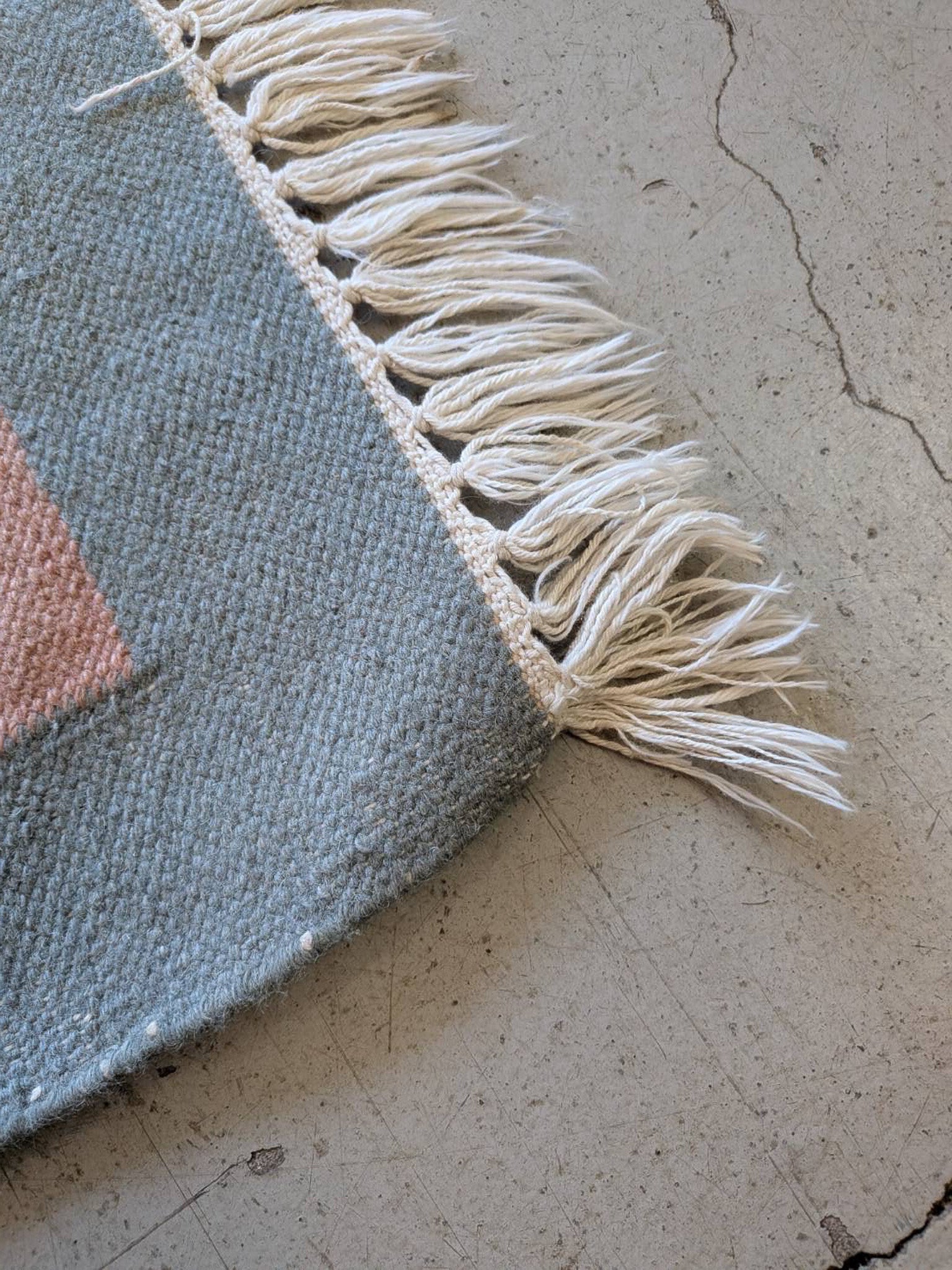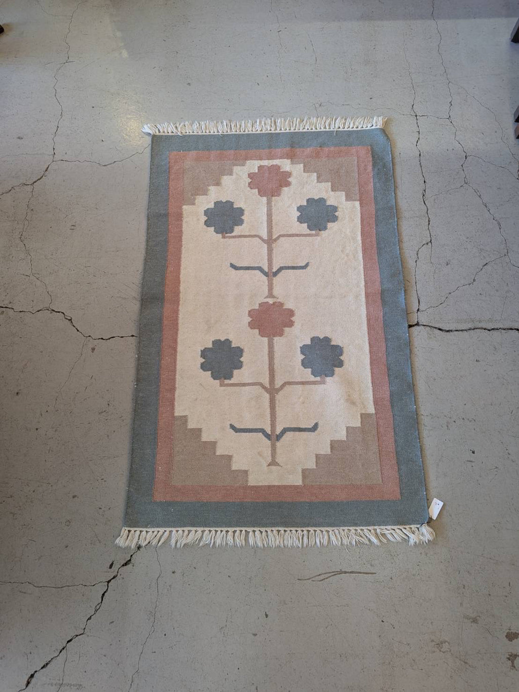 【ヴィンテージラグ】淡いトーンに幾何学のフラワーモチーフが柔和な雰囲気のラグ