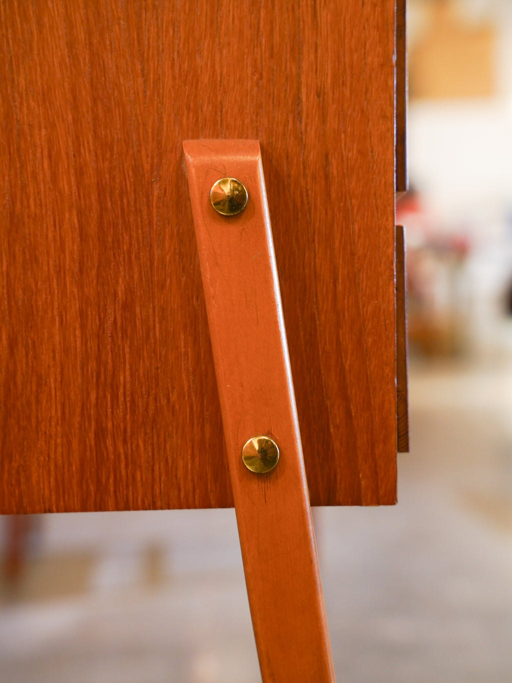 サイドに露出した脚のラインと真鍮のダボが、力強くも洗練されたアクセントとなっています。