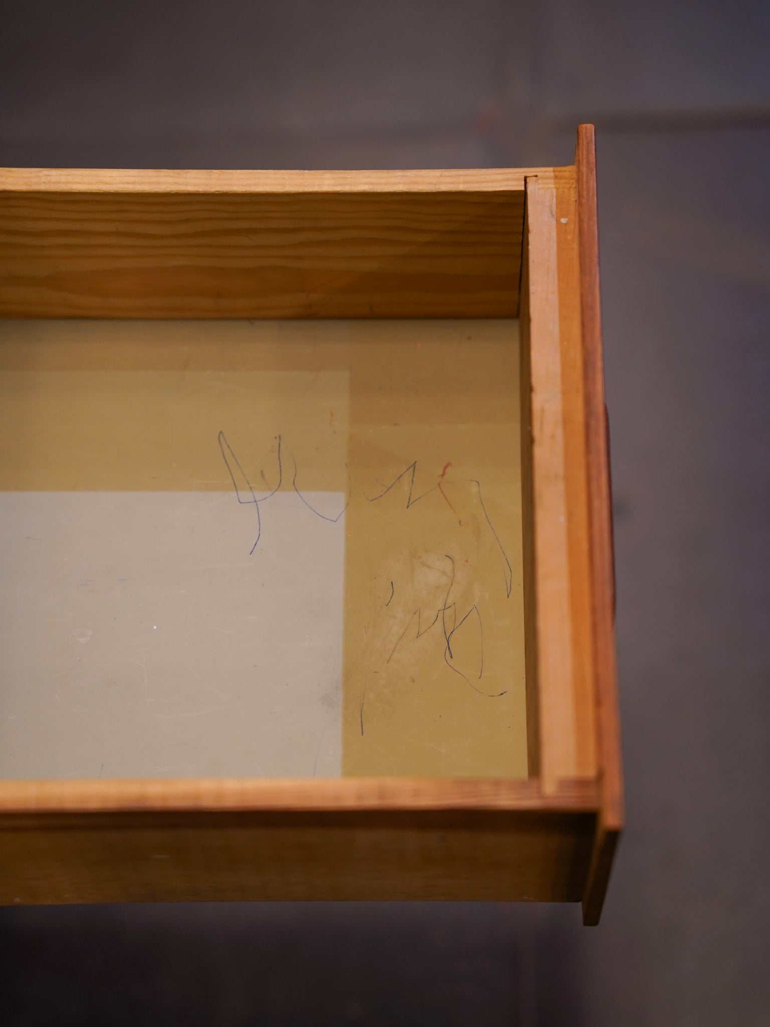 引き出しの取っ手は、指に馴染むよう計算された美しい削り出し。