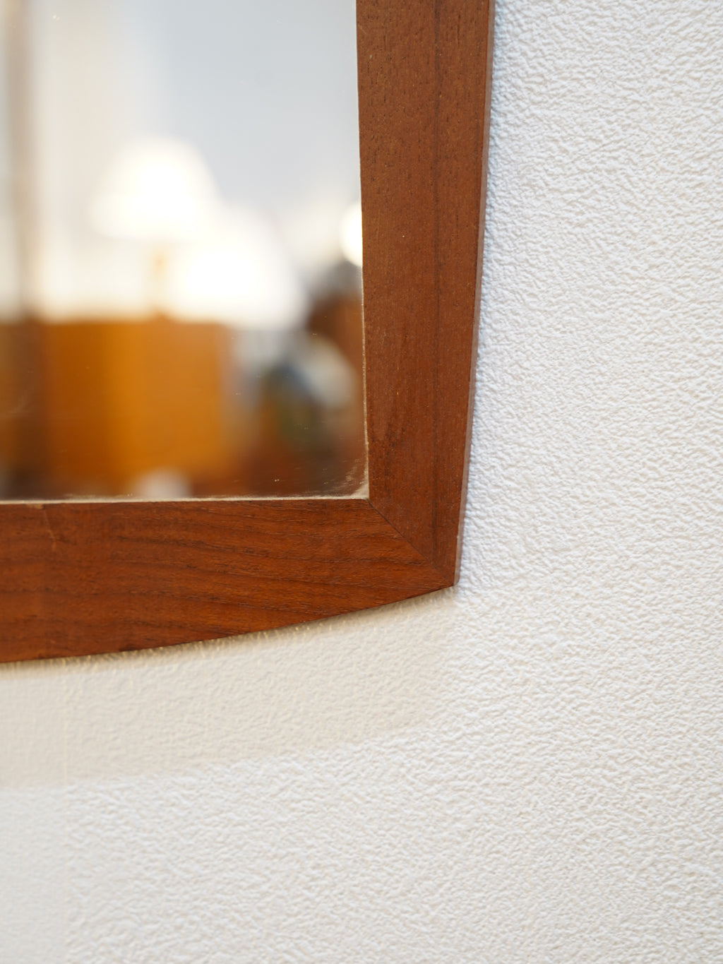緩やかに膨らみを持たせた上下のラインが、直線的なミラーに優雅な表情を添えるヴィンテージ・ウォールミラーです。