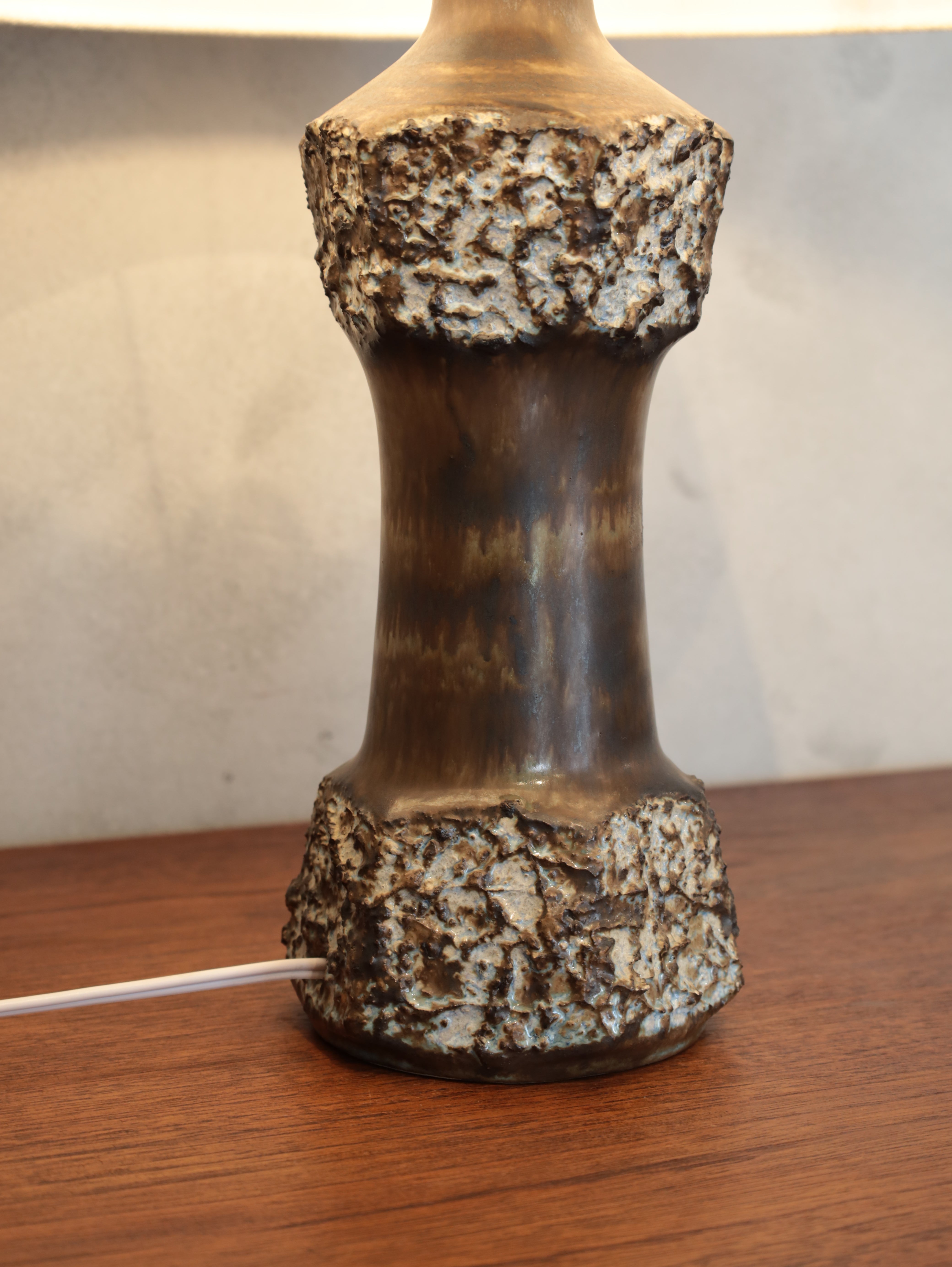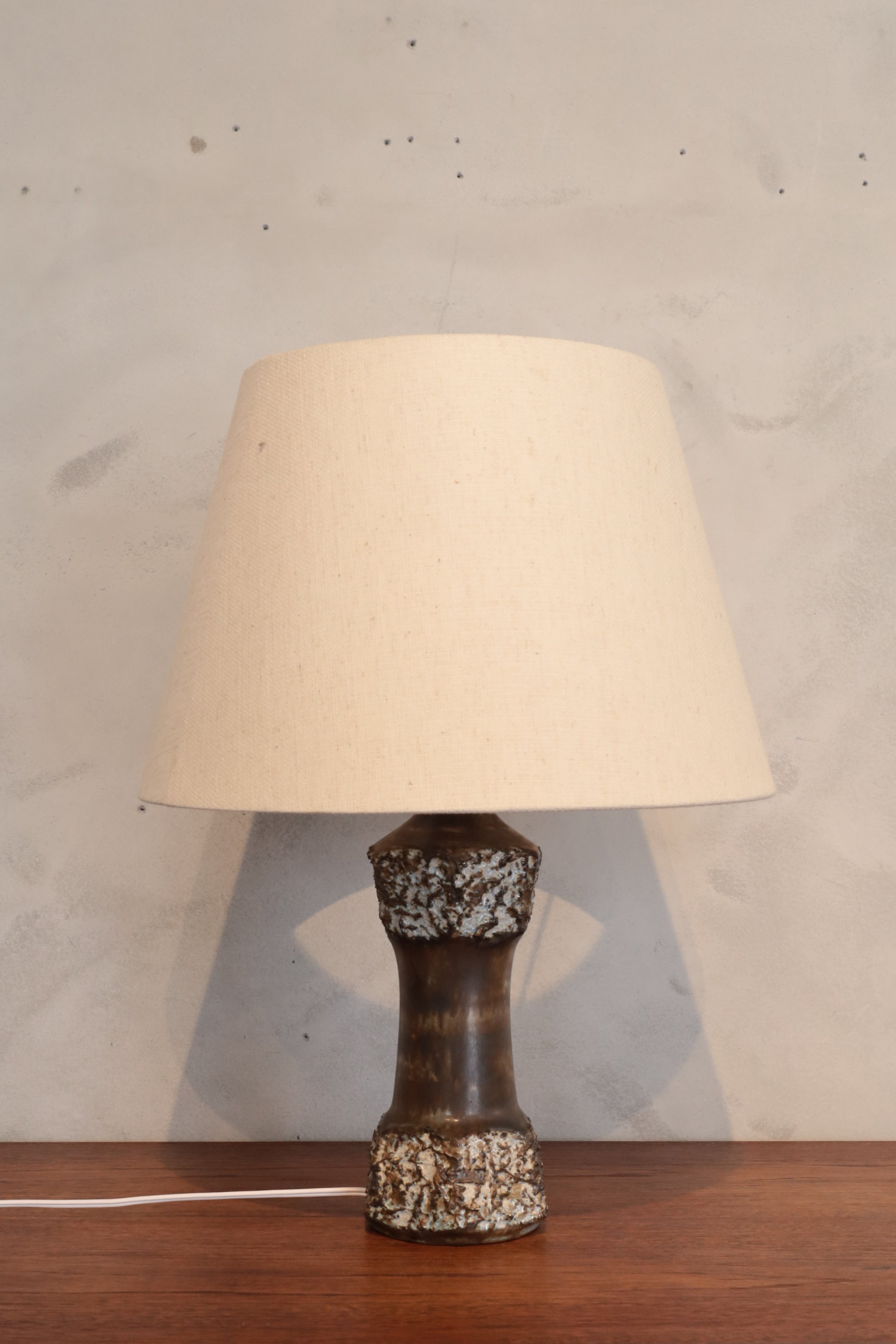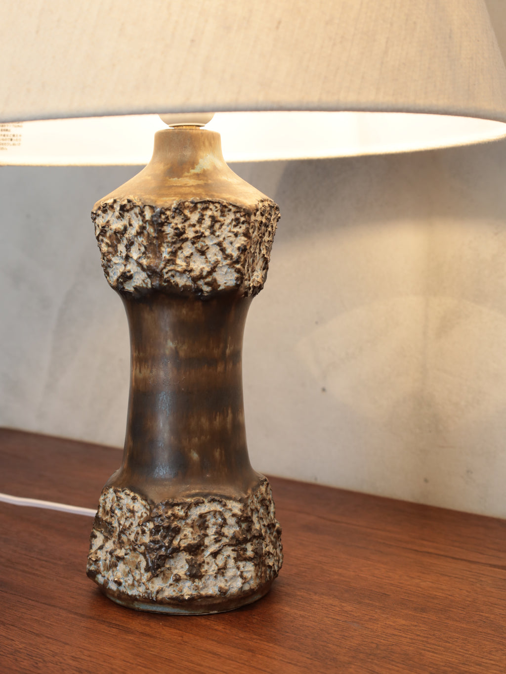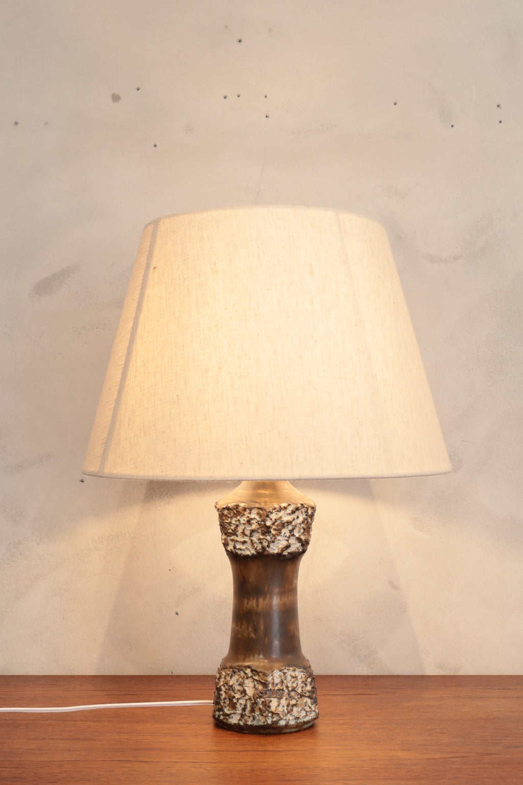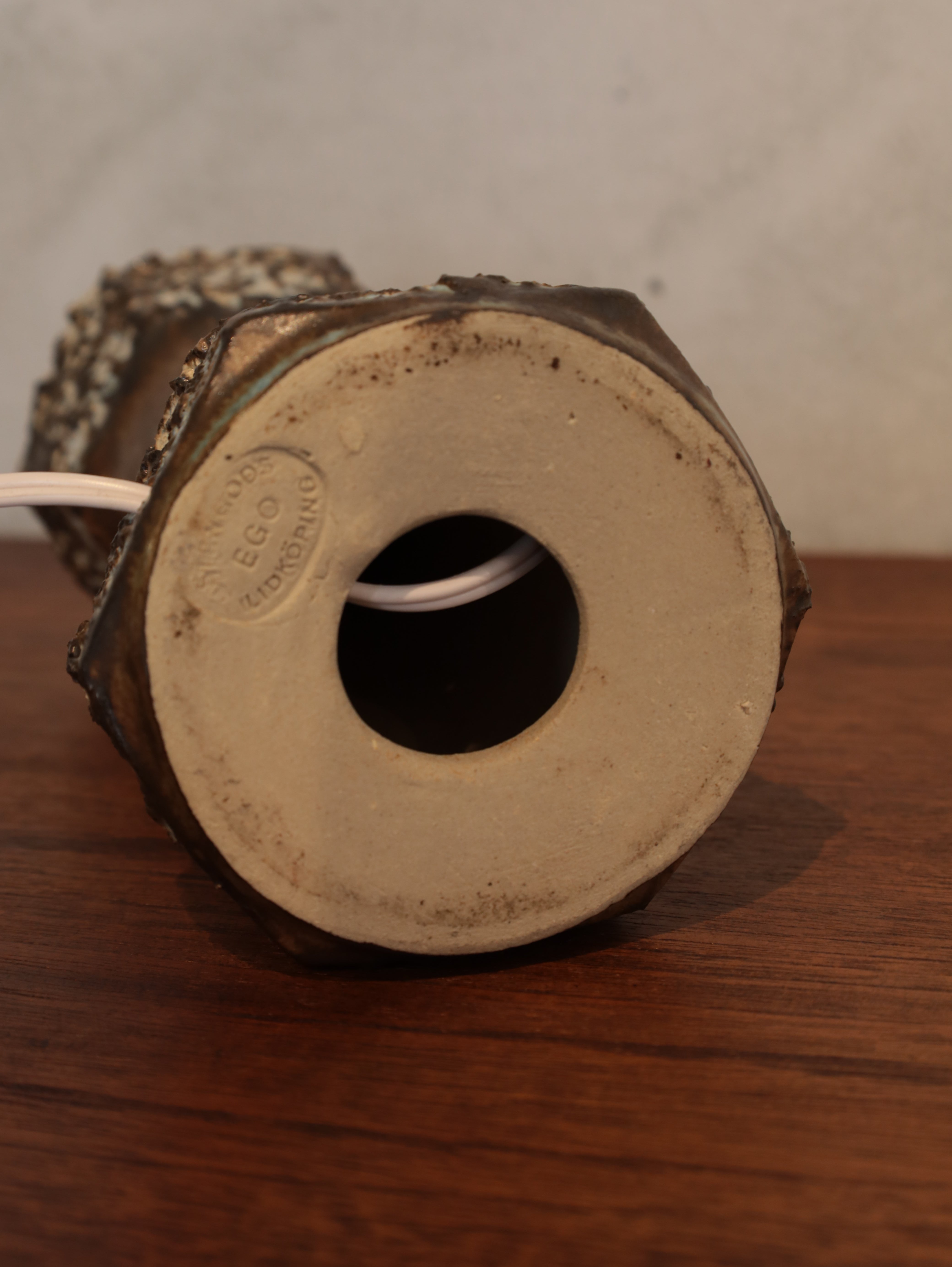 1960年代から70年代にかけて、北欧の厳しい自然を彷彿とさせる岩肌や地層のようなダイナミックなテクスチャを数多く生み出しました。マットな茶色の地肌に白や青の釉薬を重ねて陰影を強調するスタイルは、西ドイツのFat Lavaとも共通する時代精神を持っていますが、一点一点が職人の手によって丁寧に作られていたため、大量生産品にはない独自の表情と静謐な美しさが宿っています。底面には品質の証として「EGO LIDKÖPING」の文字やサインが刻印されており、現代でも北欧ヴィンテージ愛好家の間で高く評価されているメーカーです。