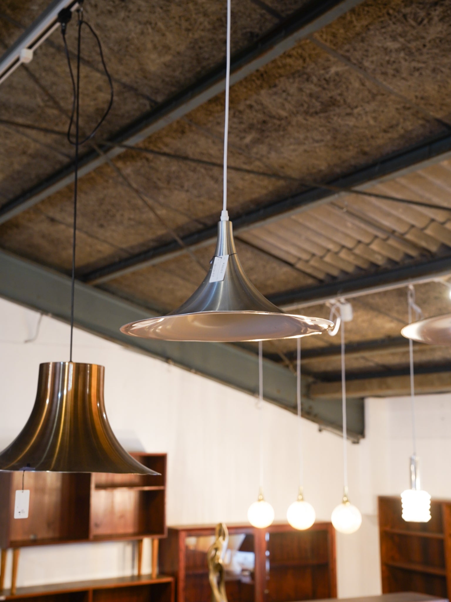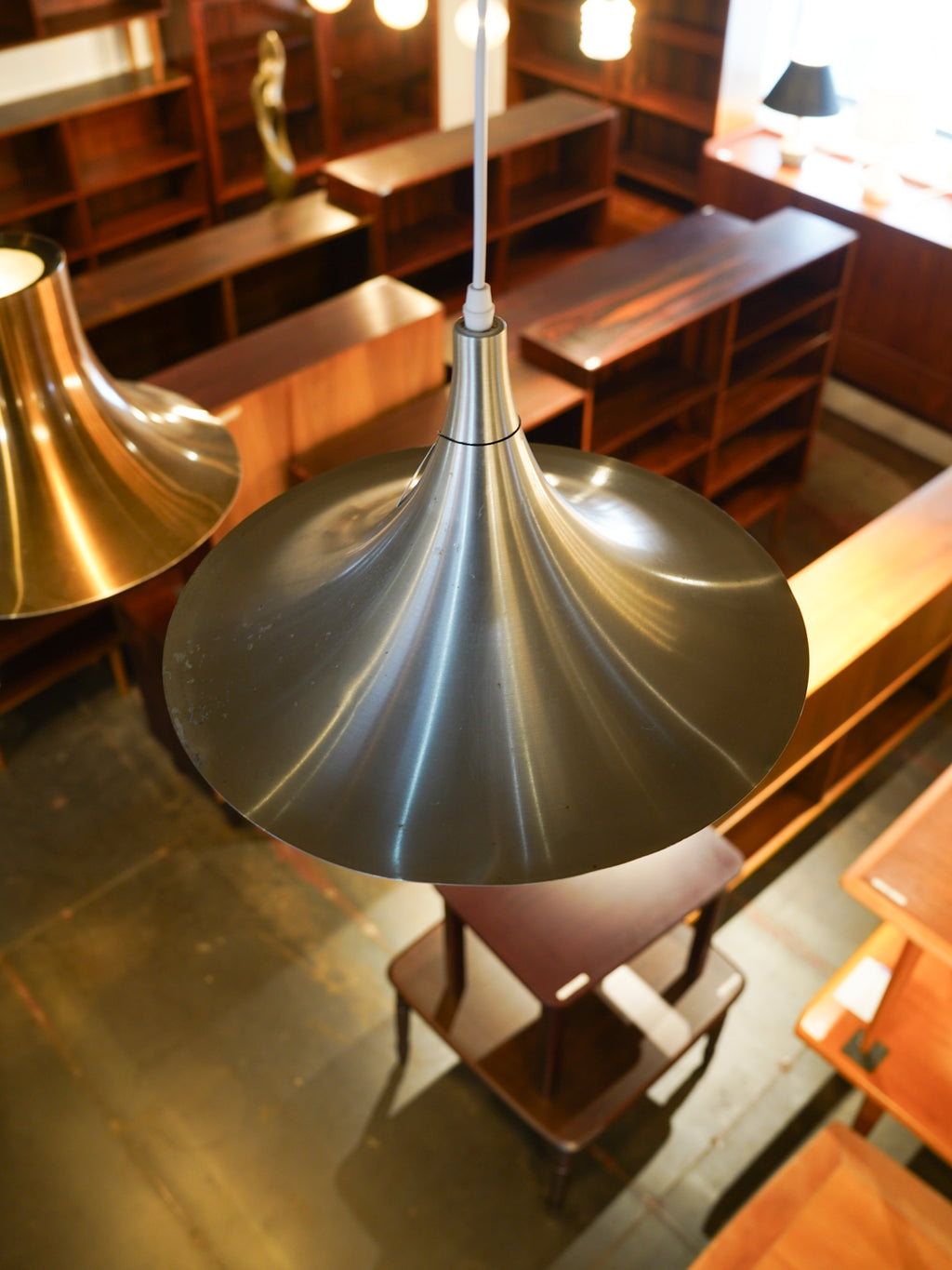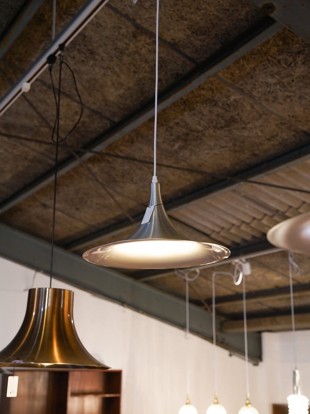 緩やかに広がるシェードラインが印象的な、ミニマルなペンダントランプ