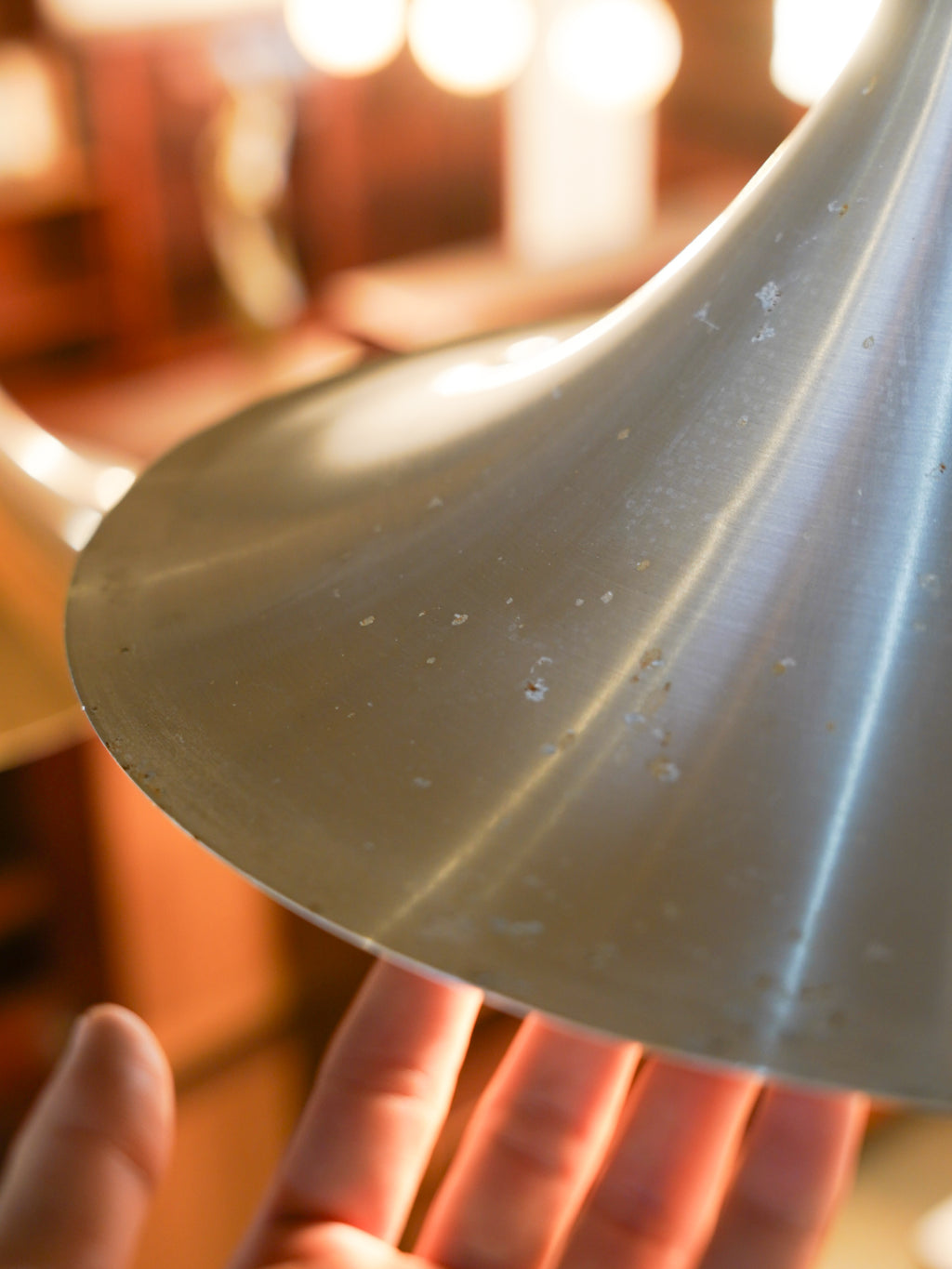 シェードならではのシャープさと、光が灯った際の温かな雰囲気のコントラストも魅力のひとつ。空間にすっと溶け込みながらも、程よい存在感を放ちます。