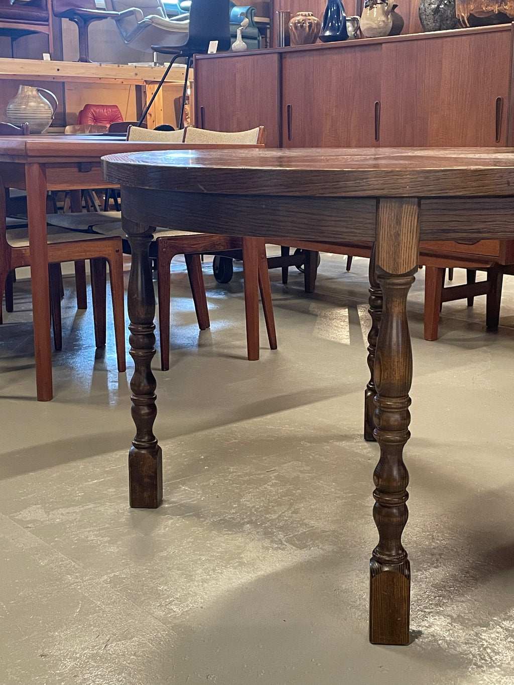 放射状の美しい木目とクラシカルな挽物脚が目を惹く、オーク材のヴィンテージ・ラウンドテーブル