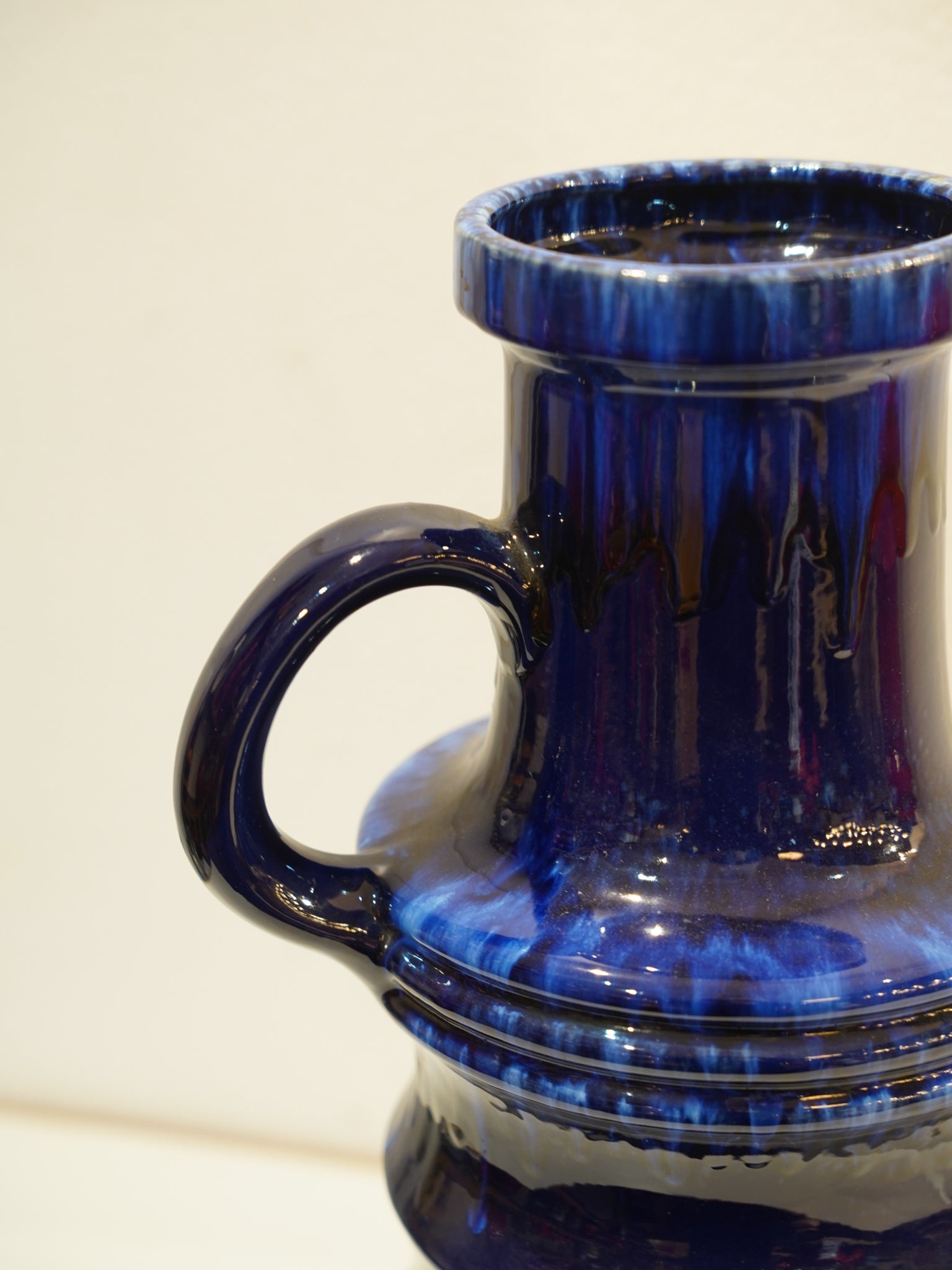 圧巻のスケールを活かし、リビングの主役となるフロアベースとして、背の高い枝物や季節の花をダイナミックに生けるのに最適です。また、そのままオブジェとしてアパレルショップやホテルのロビーなどの広い空間に置いても、その場を格調高く引き締めてくれます。西ドイツ陶器の真髄を体現する、極めて希少なアートピースをぜひお手元でお楽しみください。
