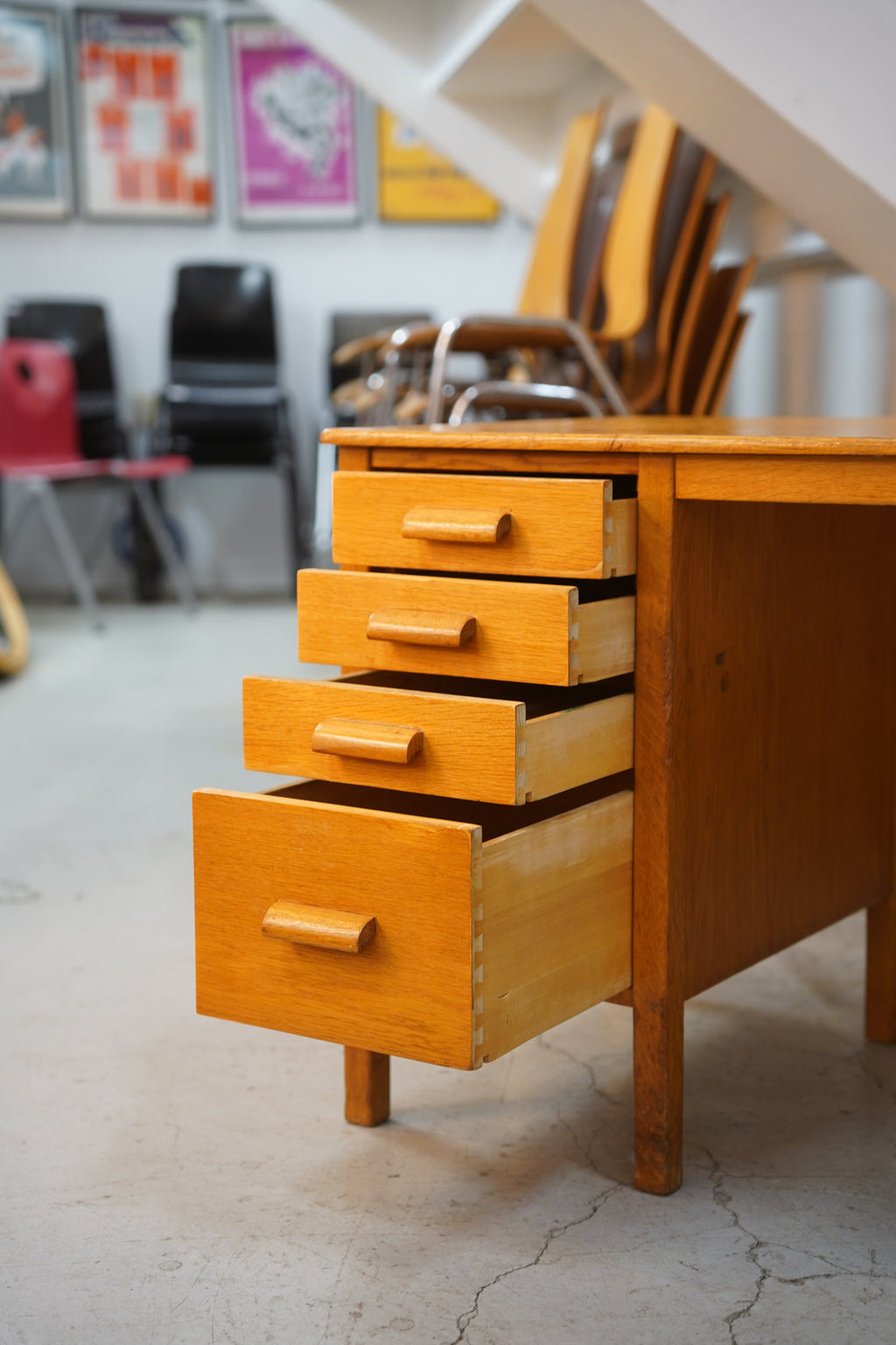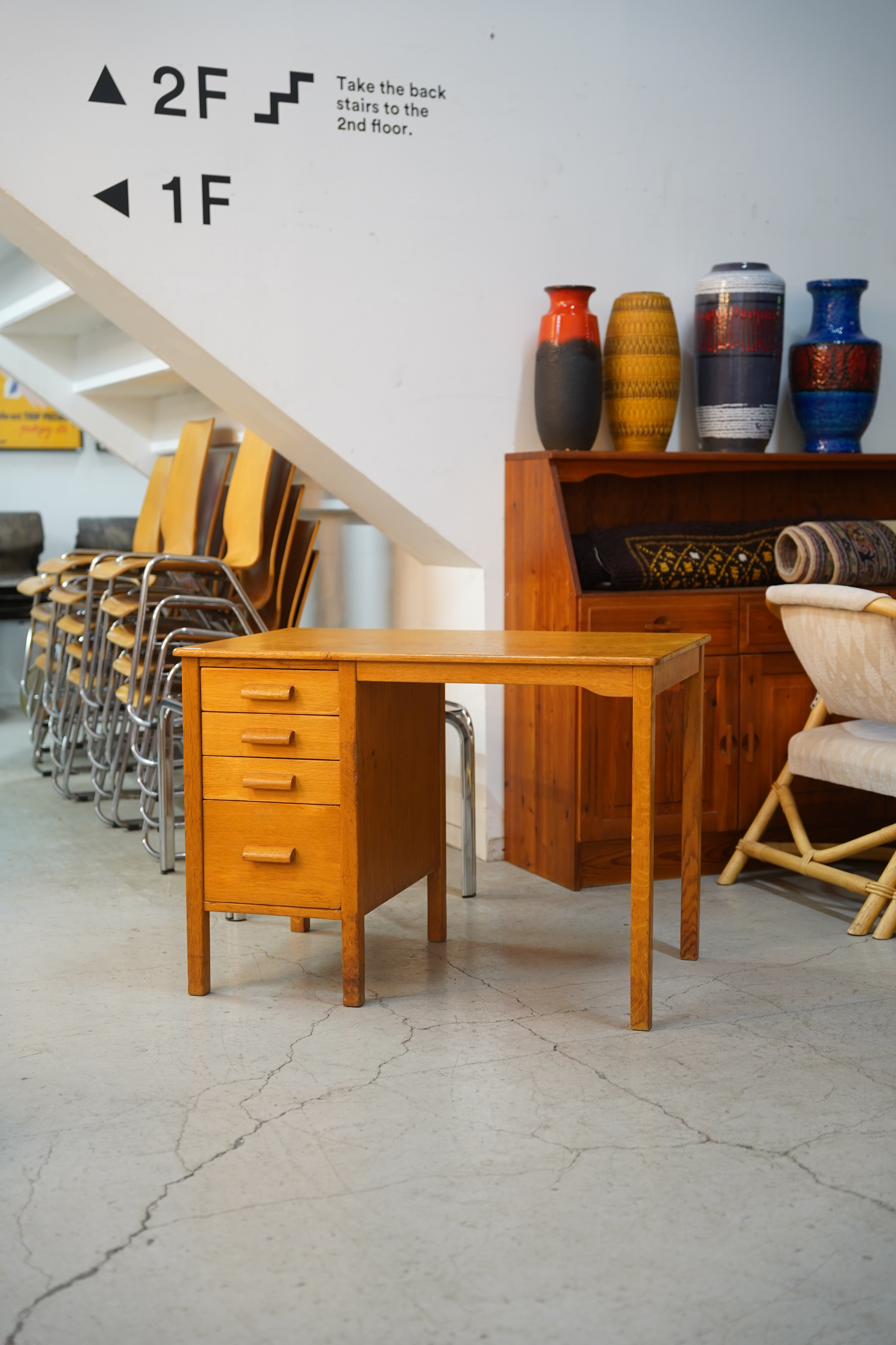 1960年代頃に製作されたと推測される、オークウッドの明るい風合いが魅力のデスクをご紹介します。