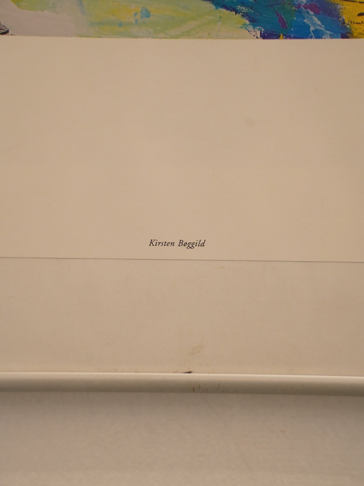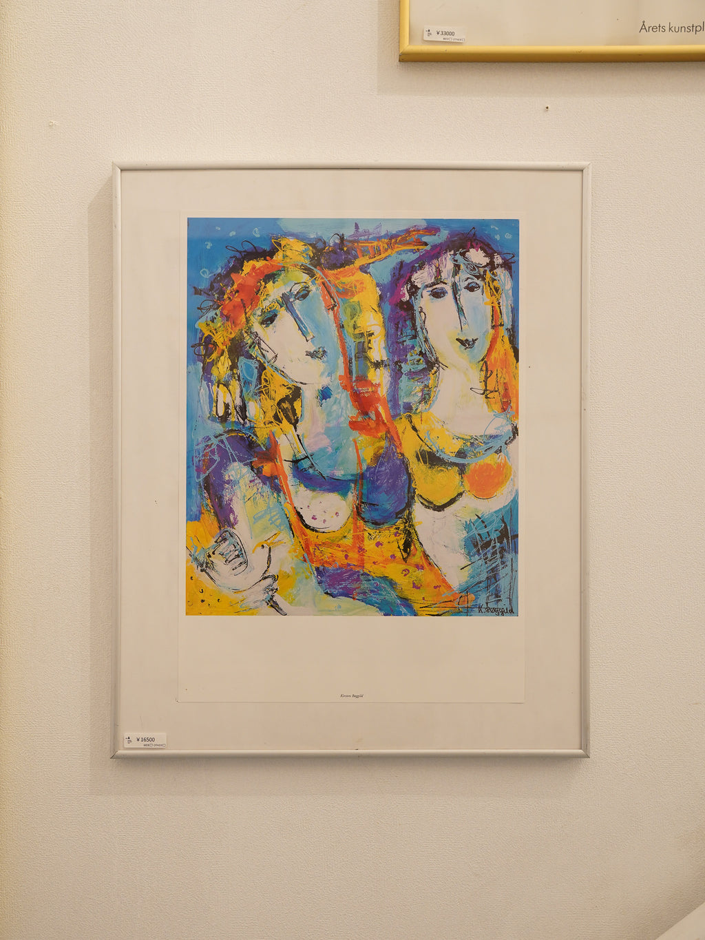 具体的な作家名は小さく不鮮明ですが、その作風は、北欧を中心に活動した実験的な抽象表現グループ「コブラ (Cobra)」のアーティスト、特にカレル・アペル(Karel Appel)やアスガー・ヨルン(Asger Jorn)のような、原始的で奔放な表現を思わせます。