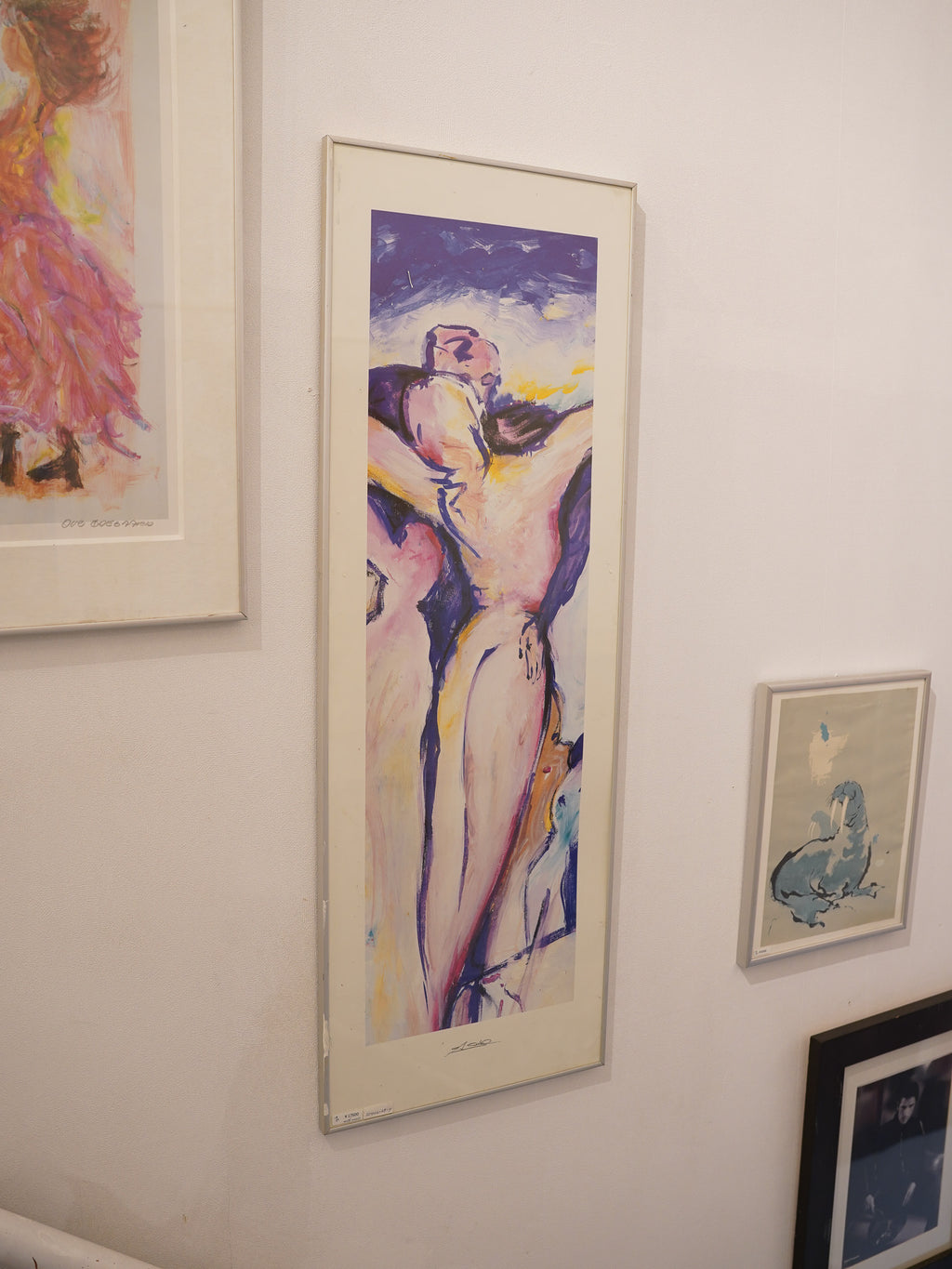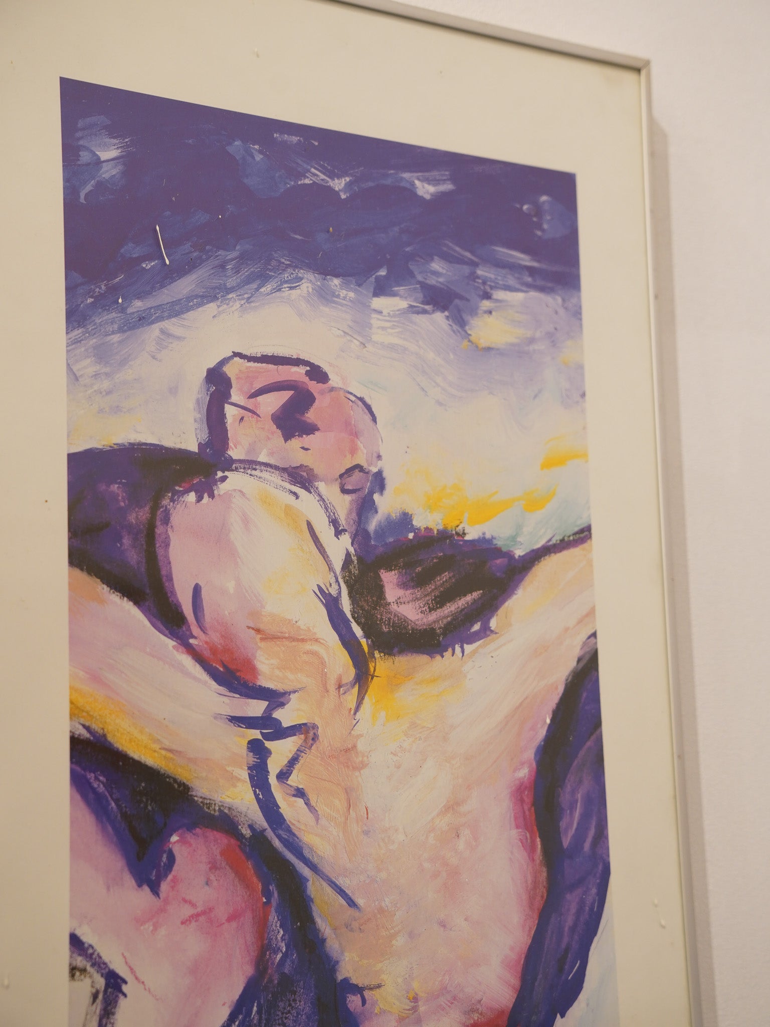 縦長のユニークなフォーマットに描かれた、人体をモチーフとした抽象画ポスター。