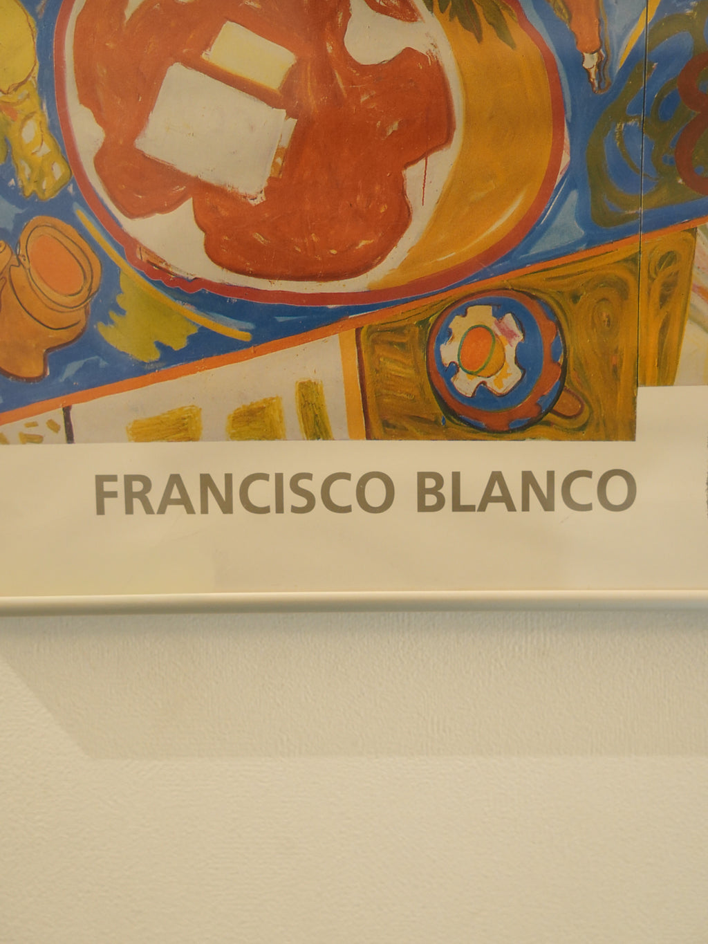 鮮やかな色使いと、抽象的なモチーフが目を引くヴィンテージポスターです。