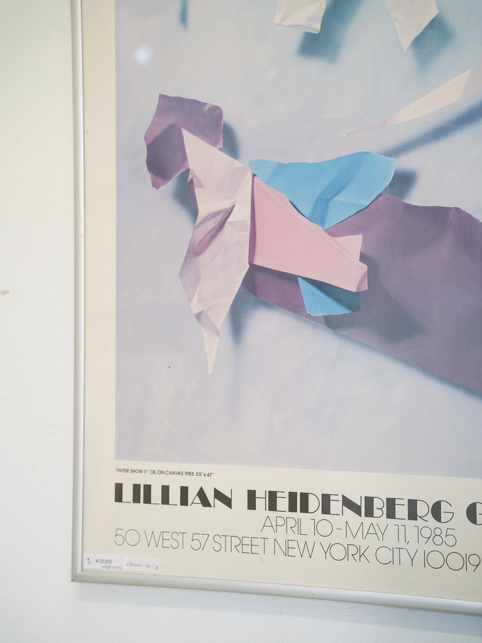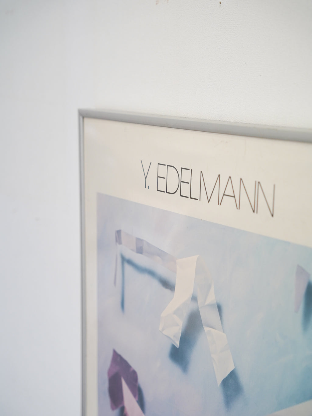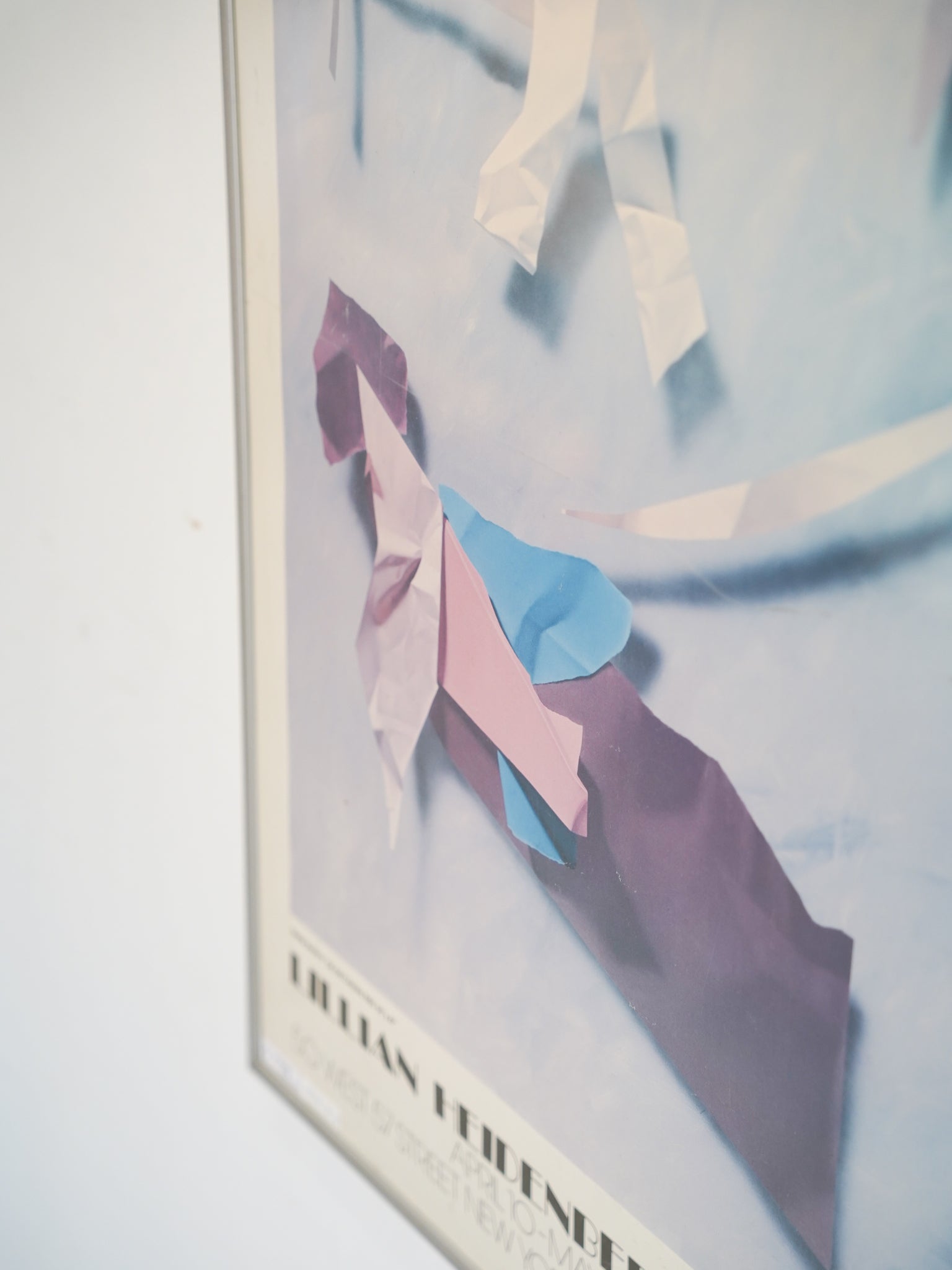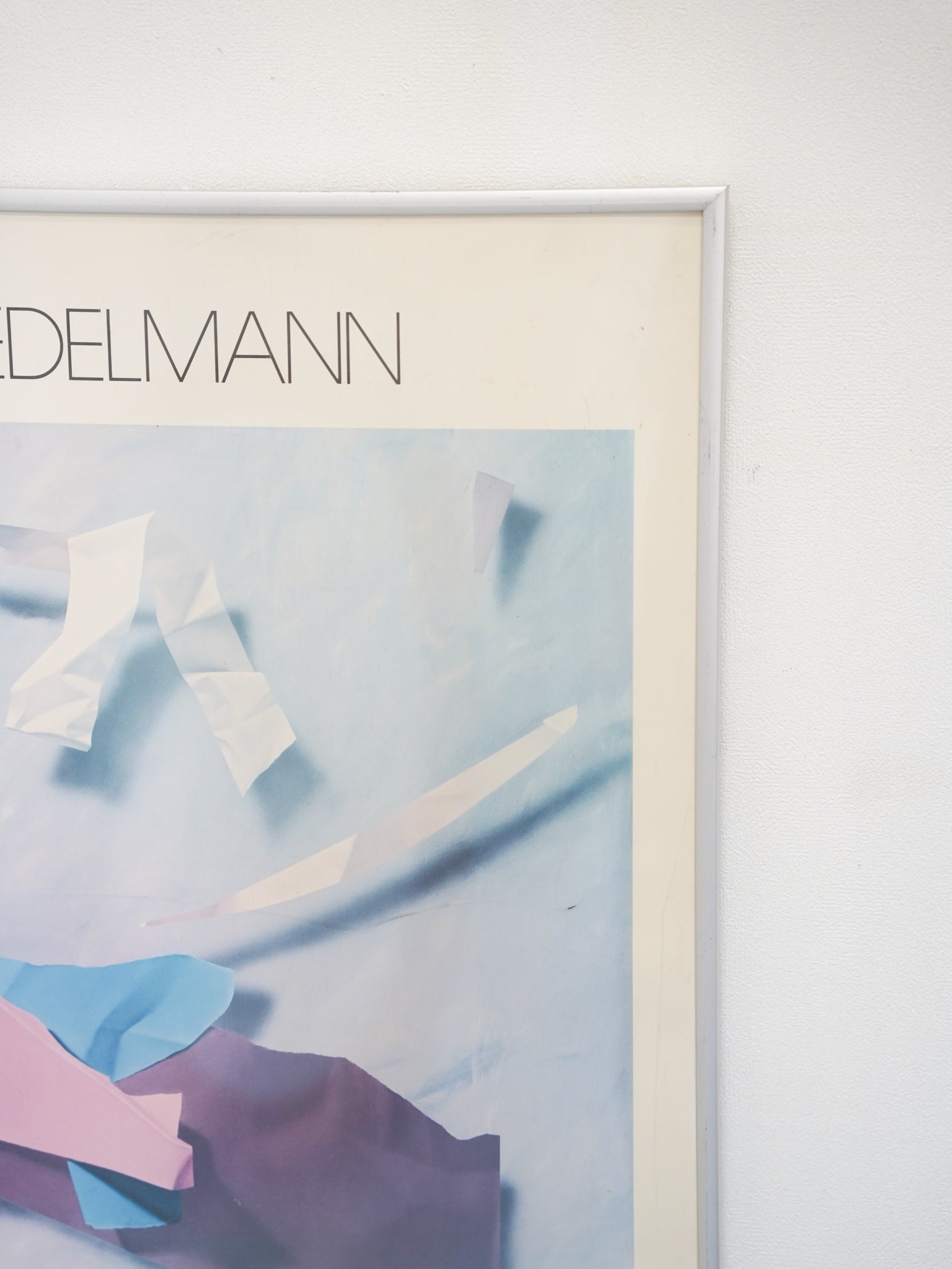 淡いピンクやブルーを基調とした、80年代の空気感を纏うグラフィックは、空間に静かな知性と遊び心を添えてくれます。シルバーの細身のフレームが作品の端正な美しさを引き立てる、希少なヴィンテージ・アートピースです。
