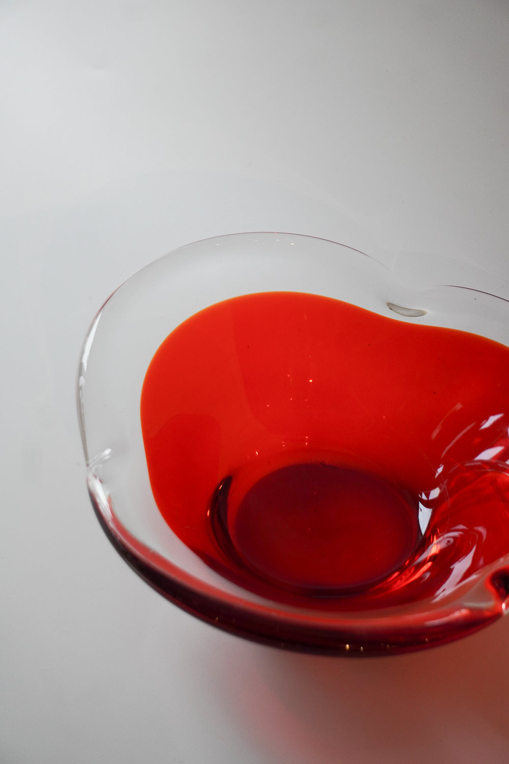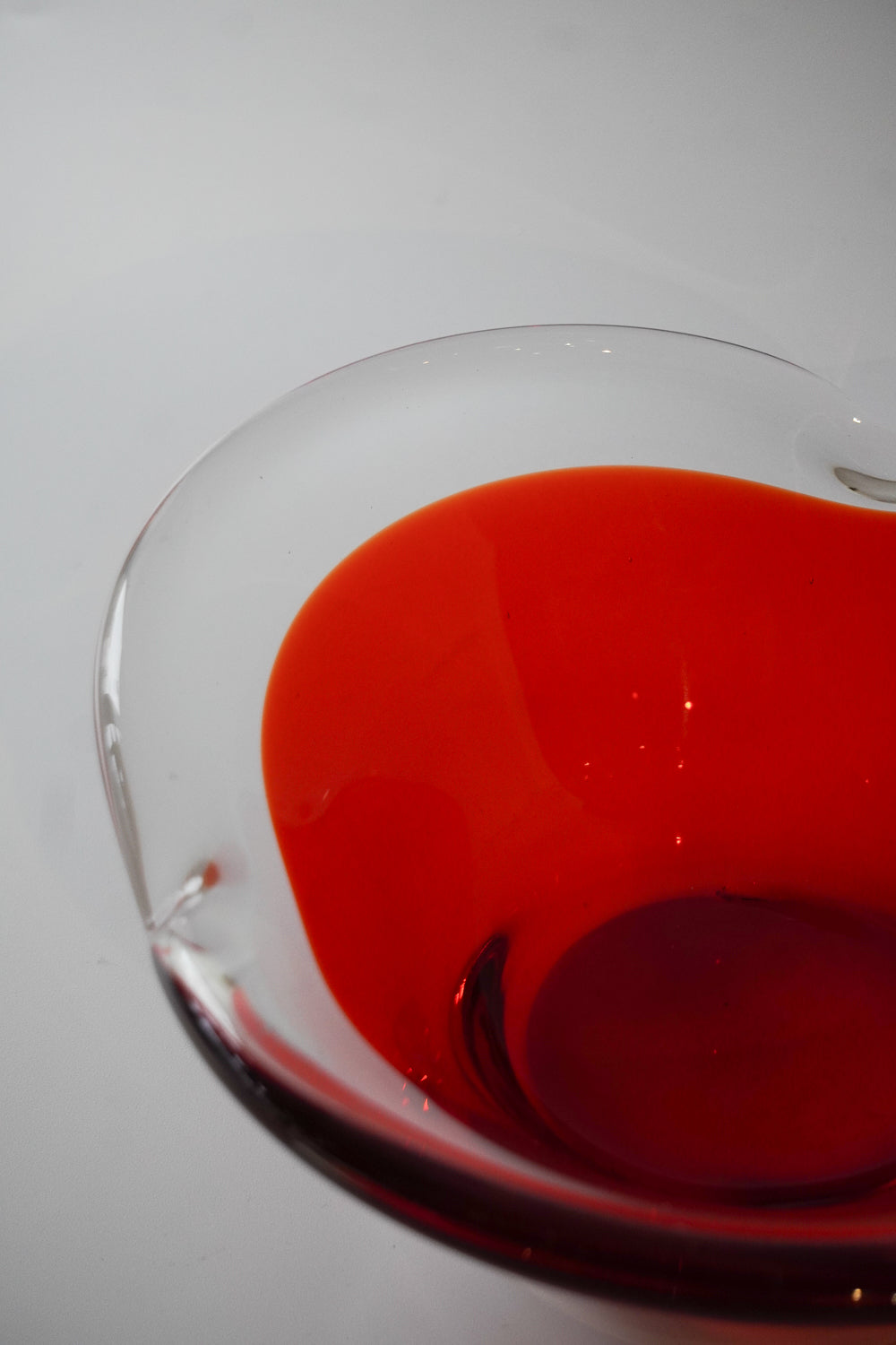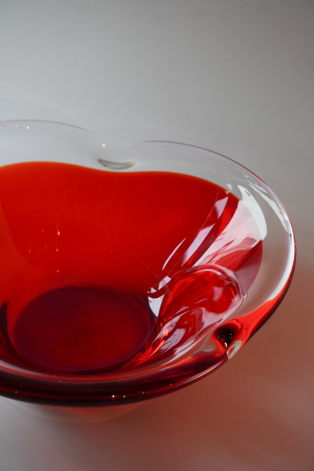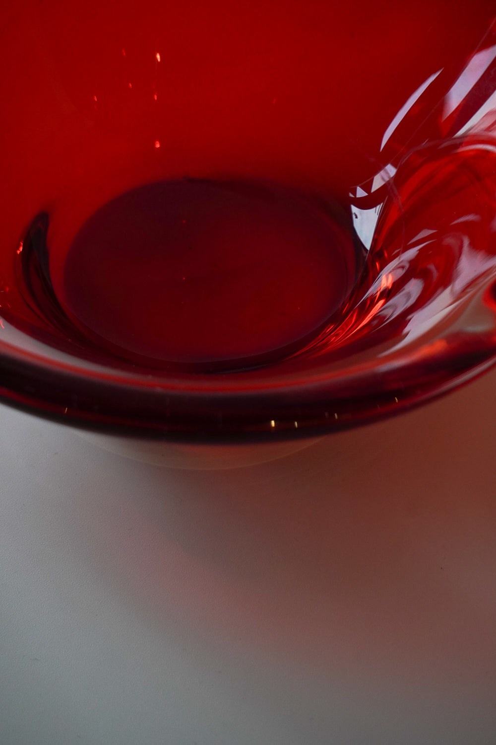 艶やかなレッドと滑らかな曲線が印象的なガラスボウル