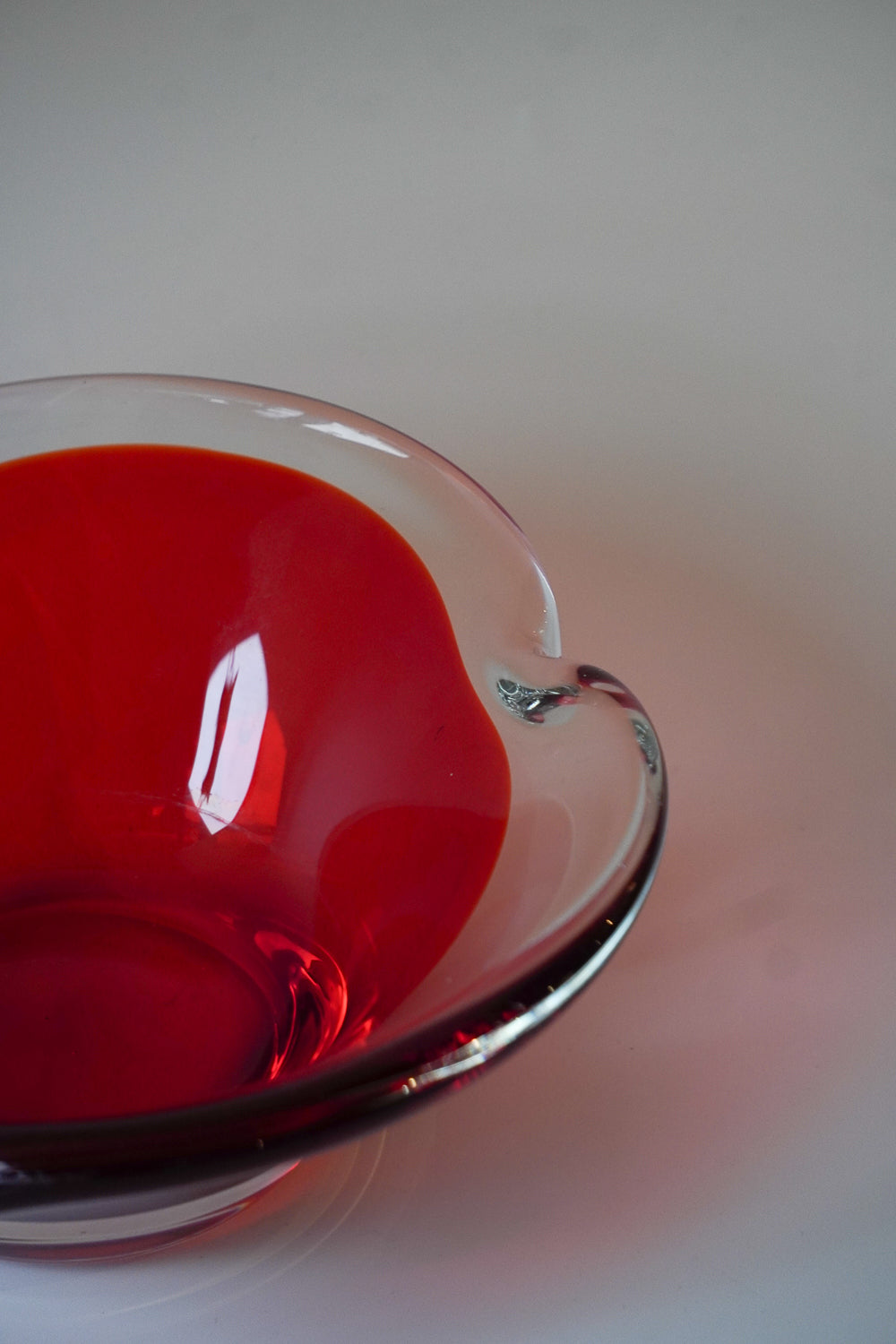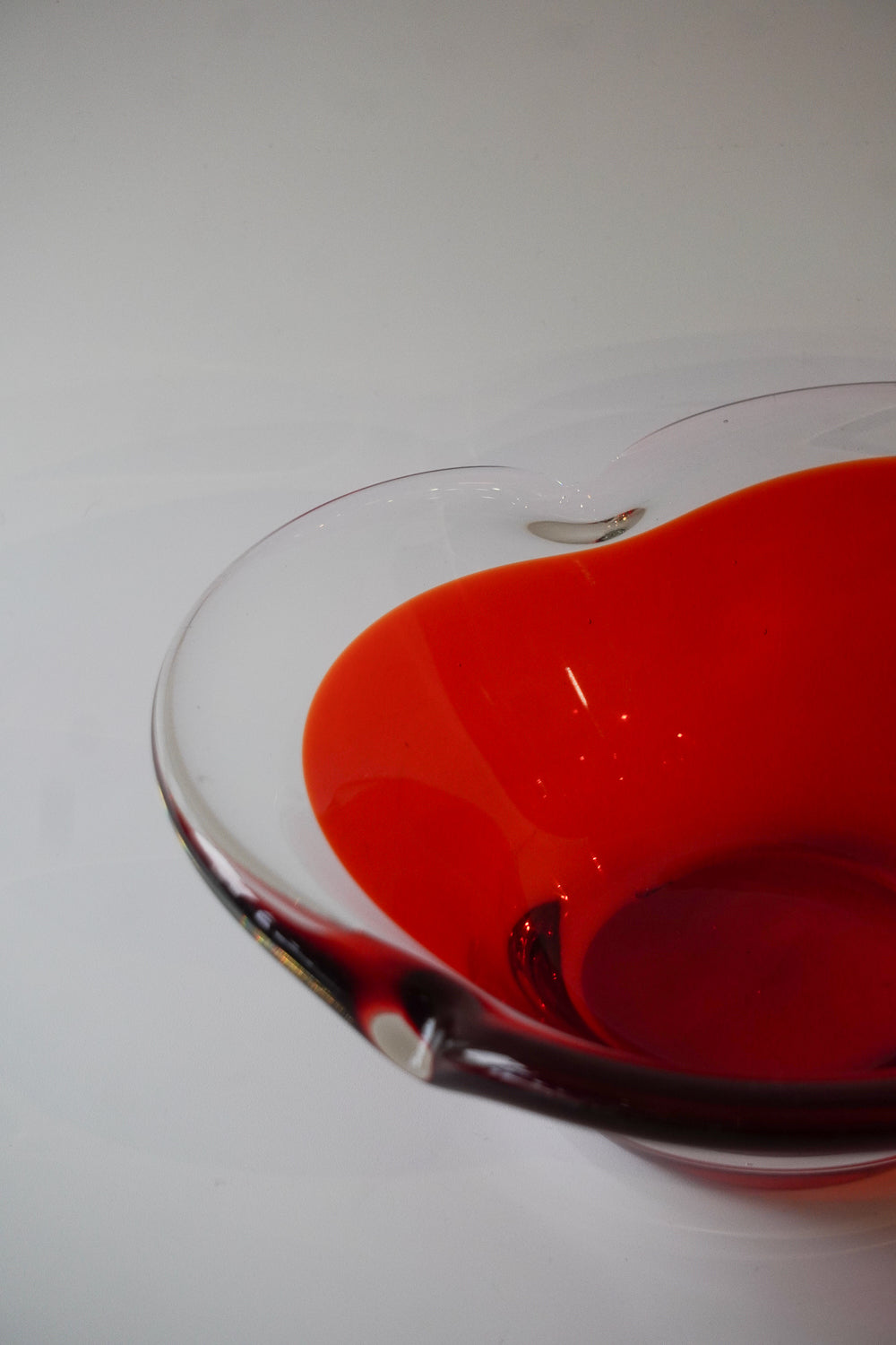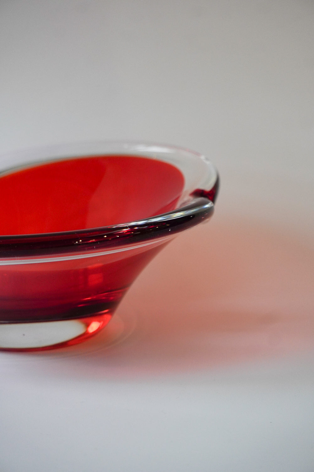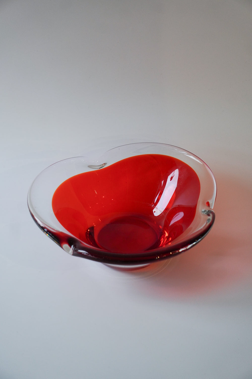 艶やかなレッドと滑らかな曲線が印象的なガラスボウル