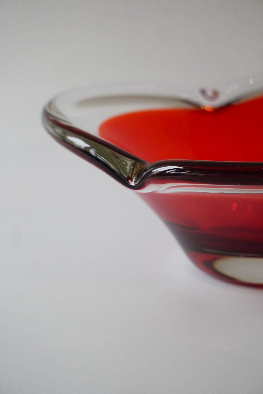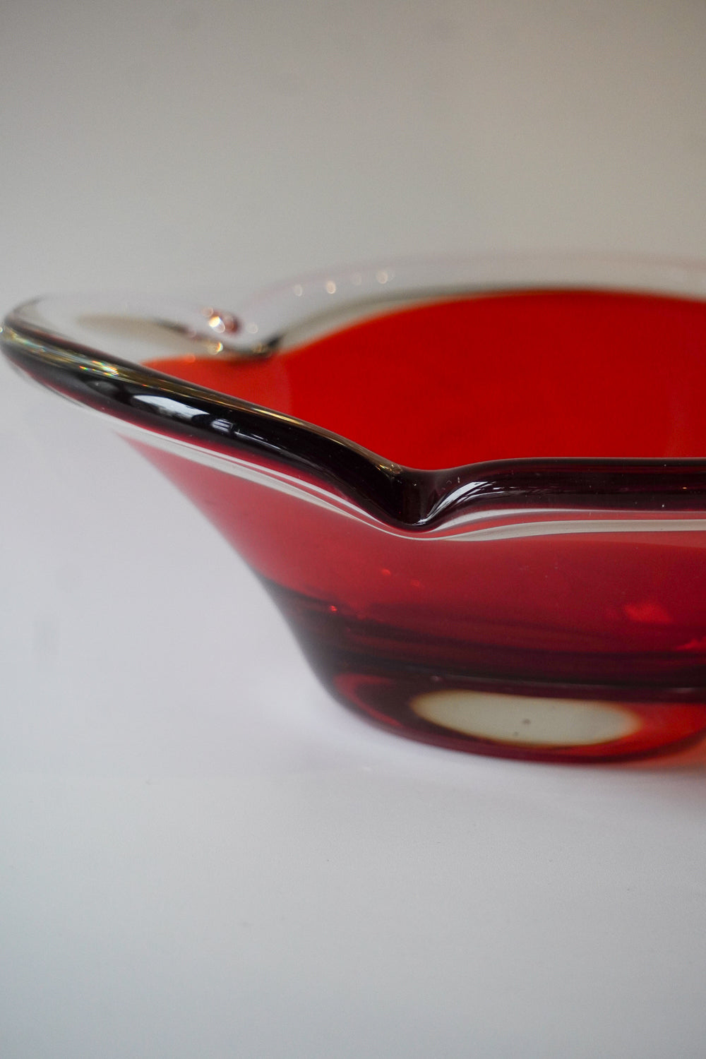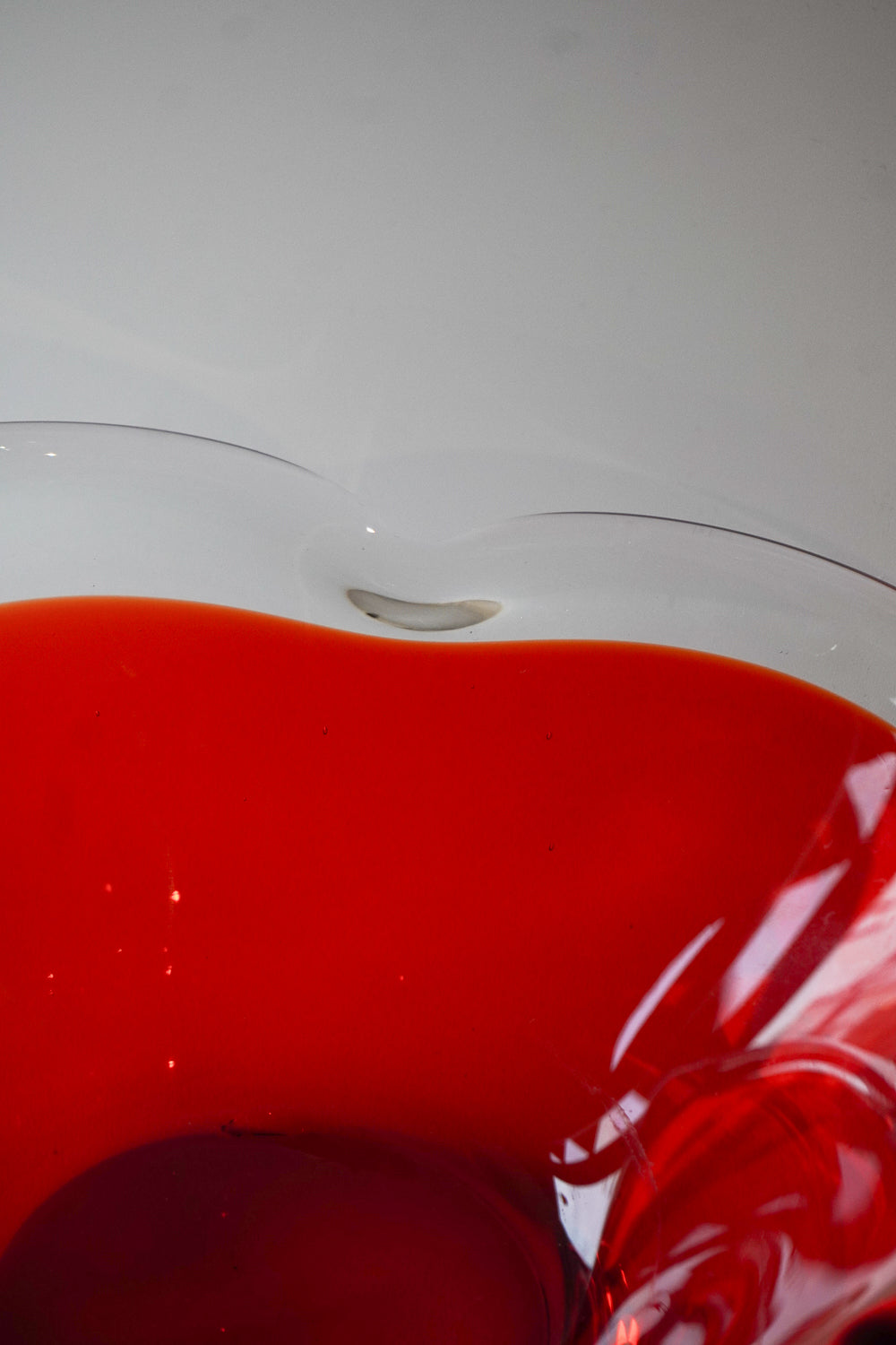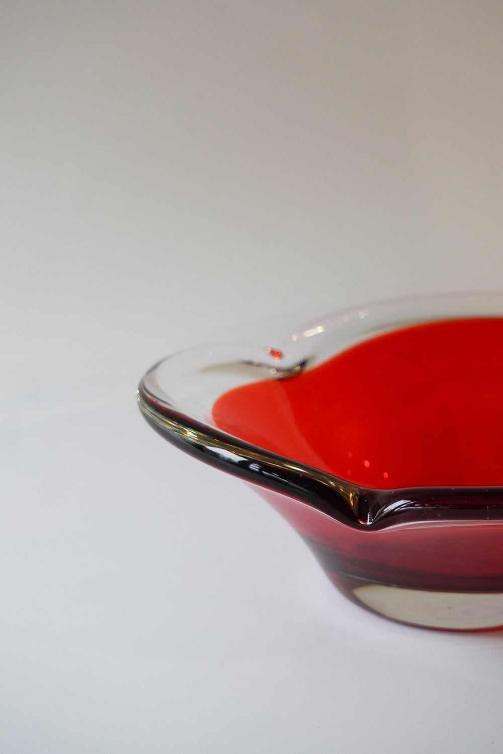 艶やかなレッドと滑らかな曲線が印象的なガラスボウル