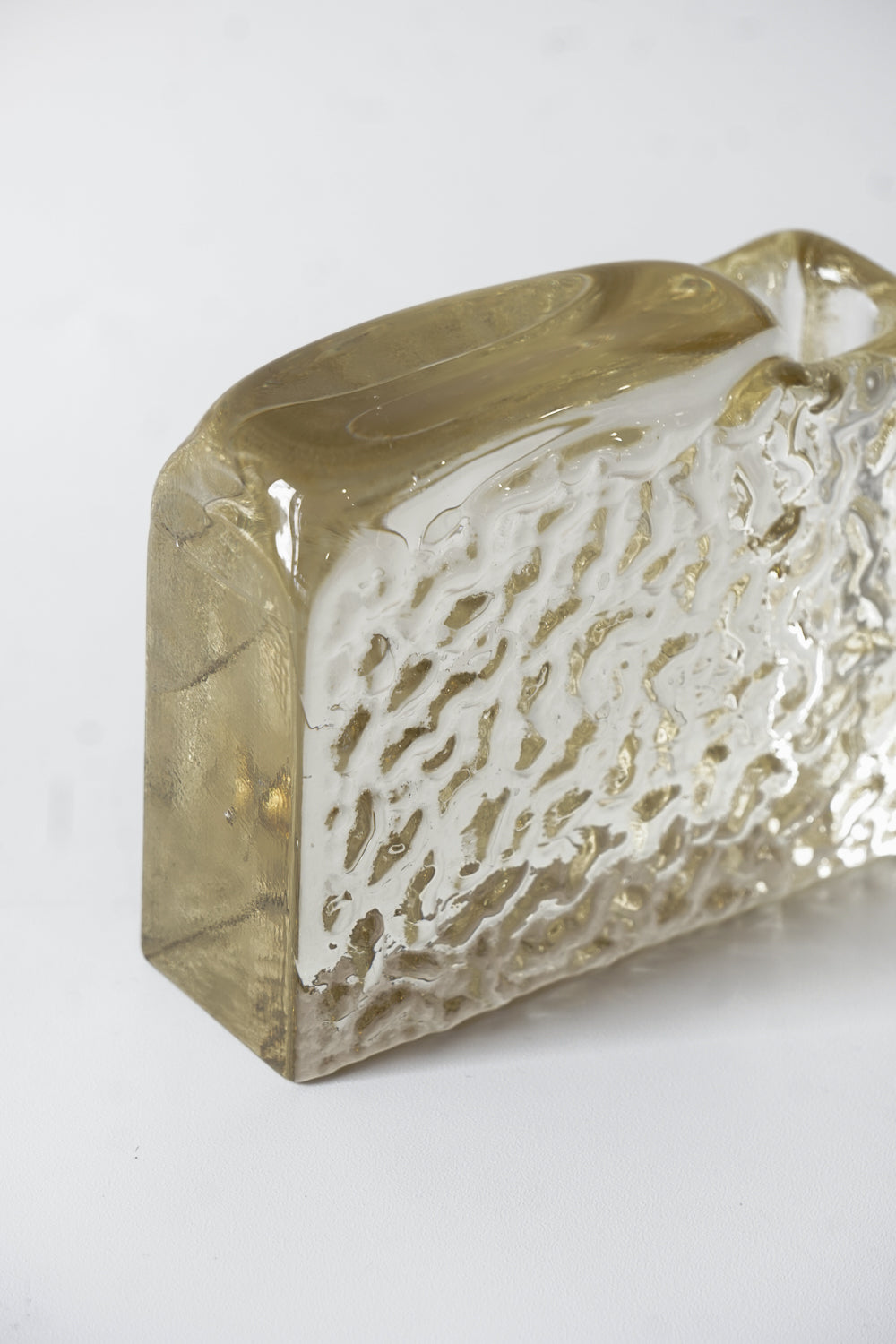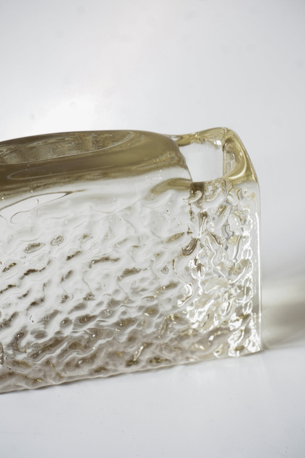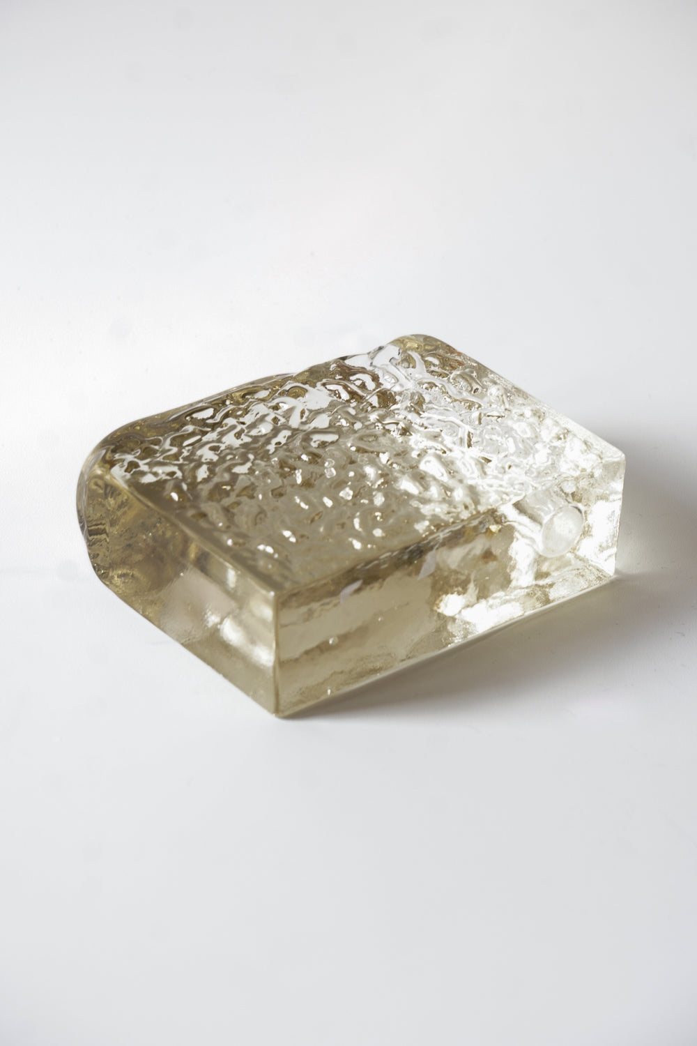 重厚なクリアガラスが持つ揺らぎと、ハンドクラフトを思わせる有機的なフォルムは、現代的な空間にも、クラシックなインテリアにもしっくりと馴染みます。