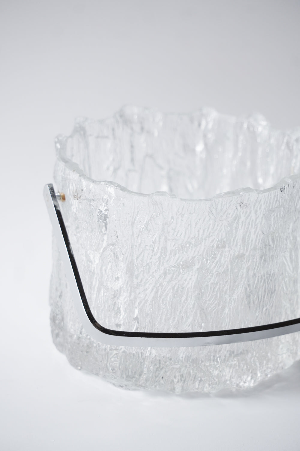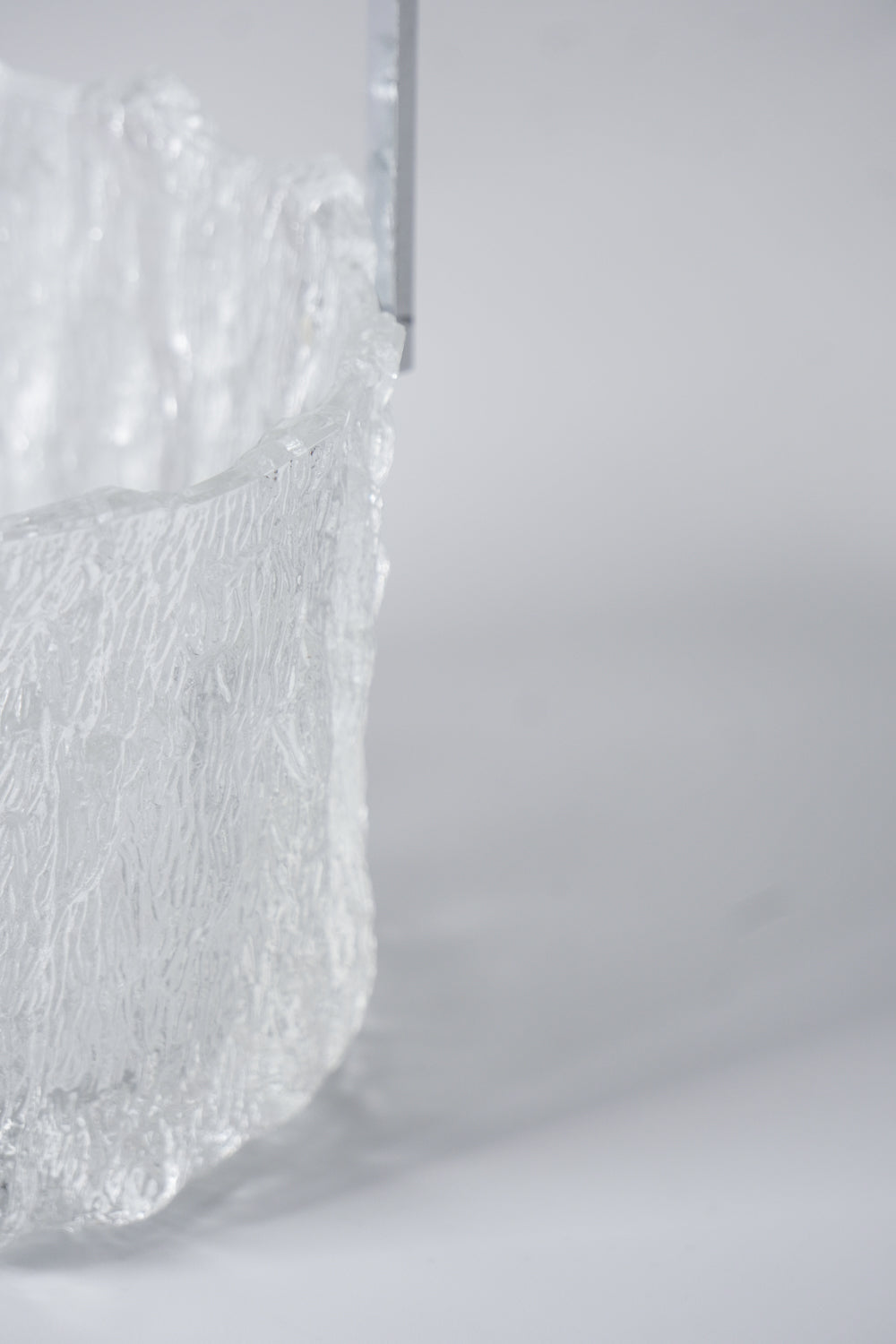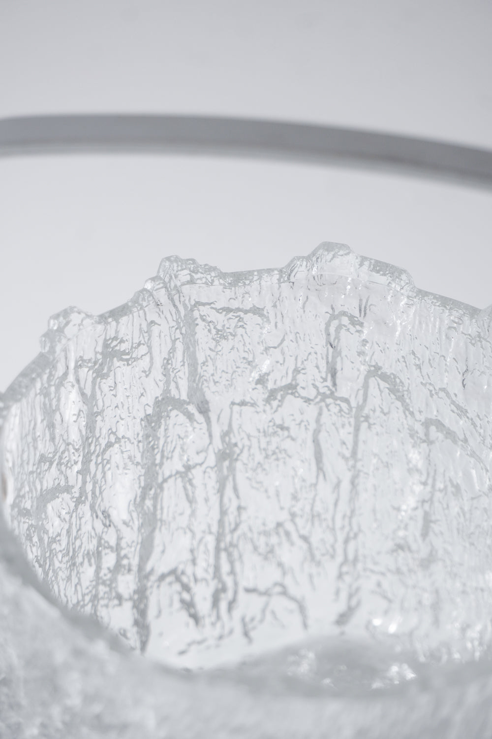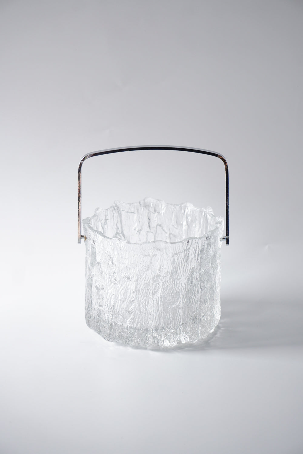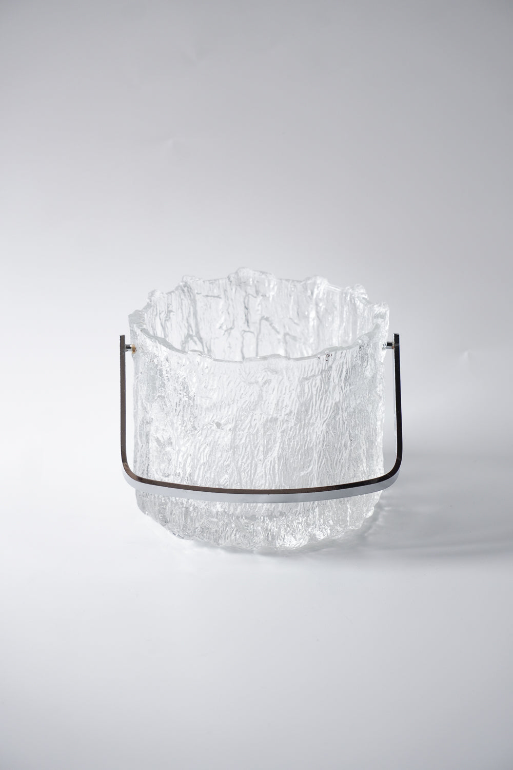 凍った氷の塊から削り出したような、ダイナミックで唯一無二のテクスチャーが魅力的なガラス製アイスバケットです。