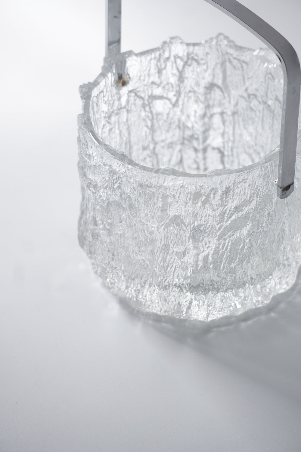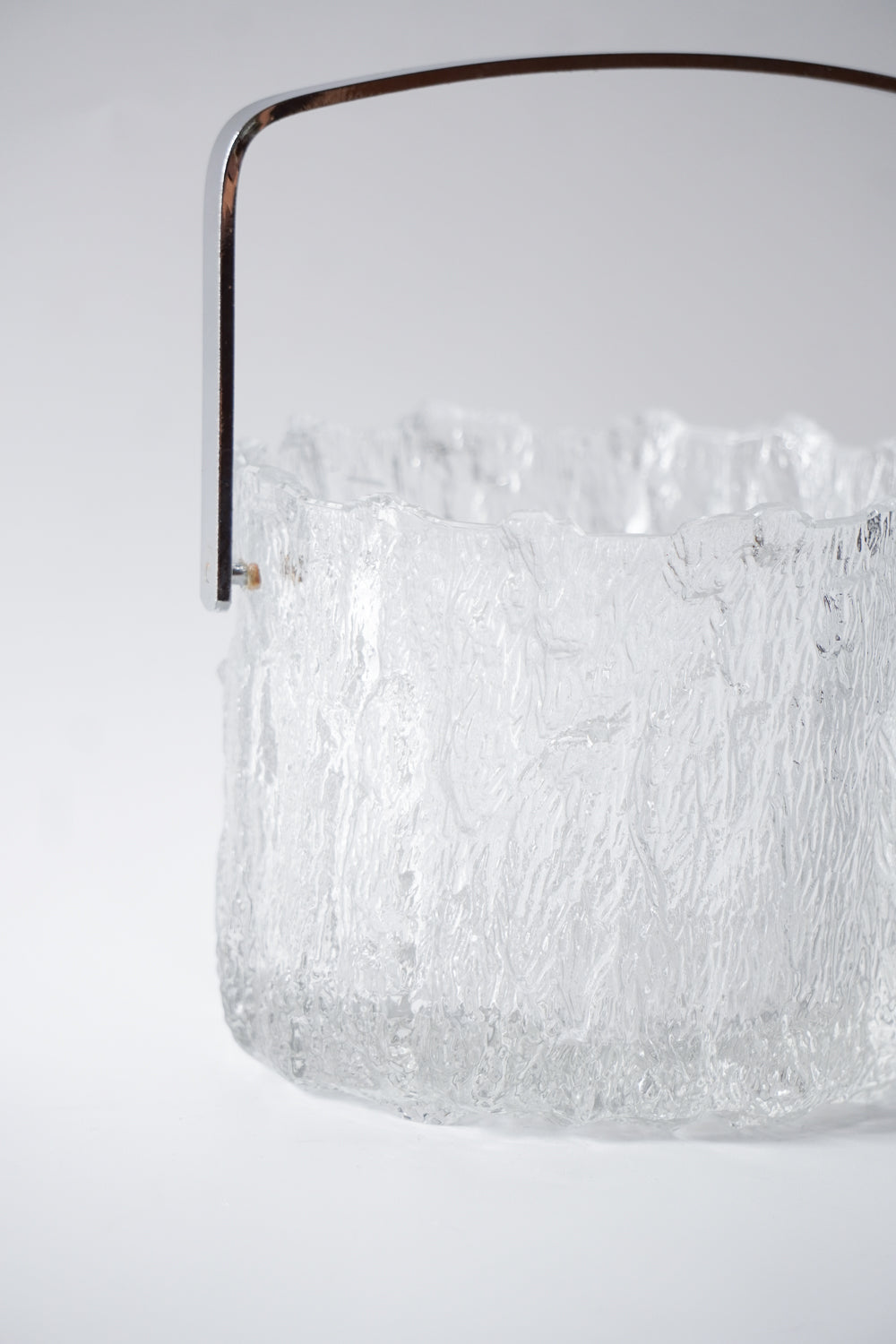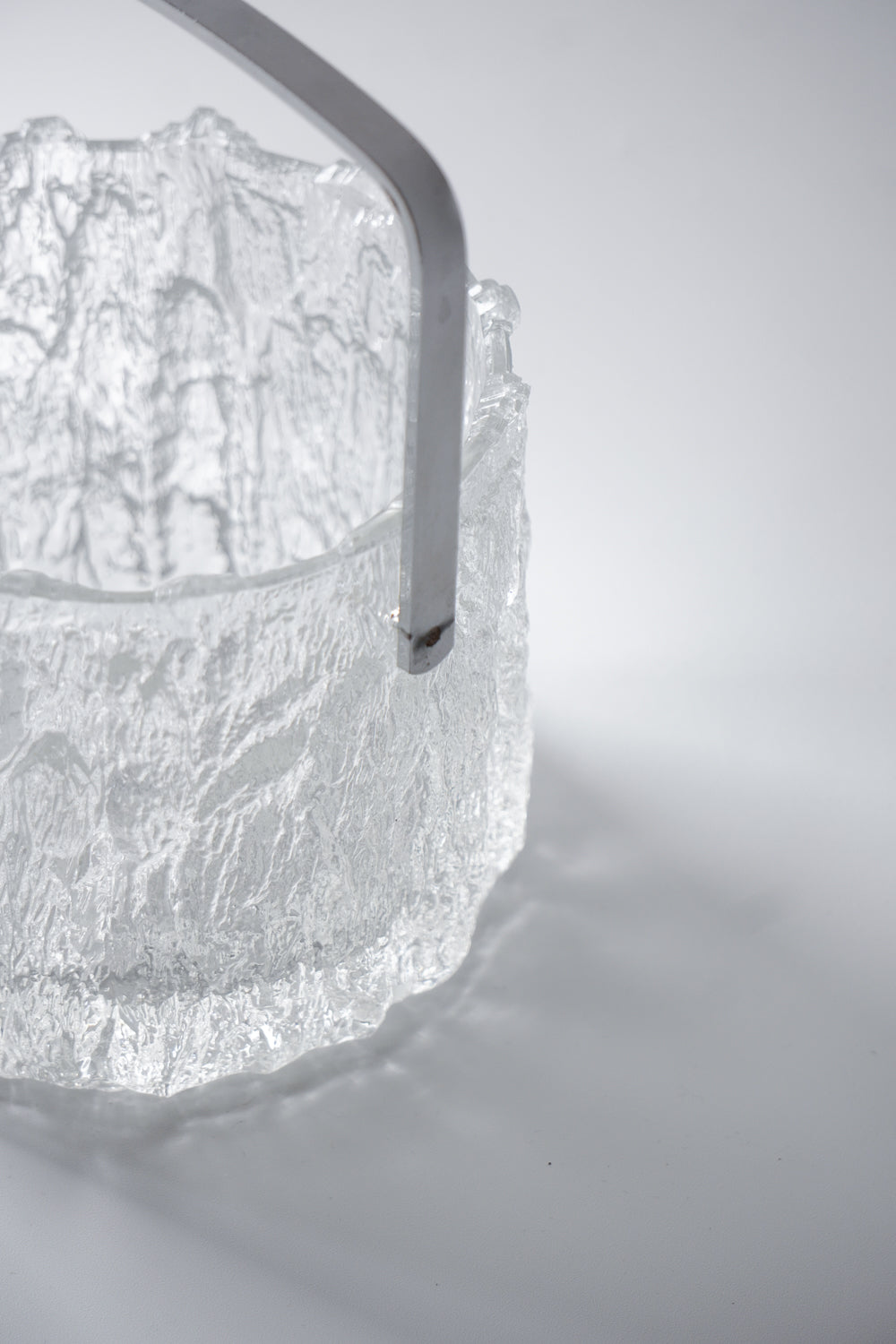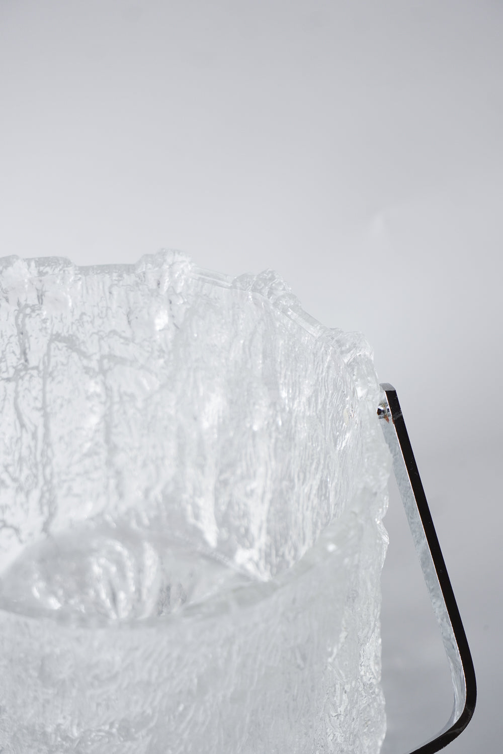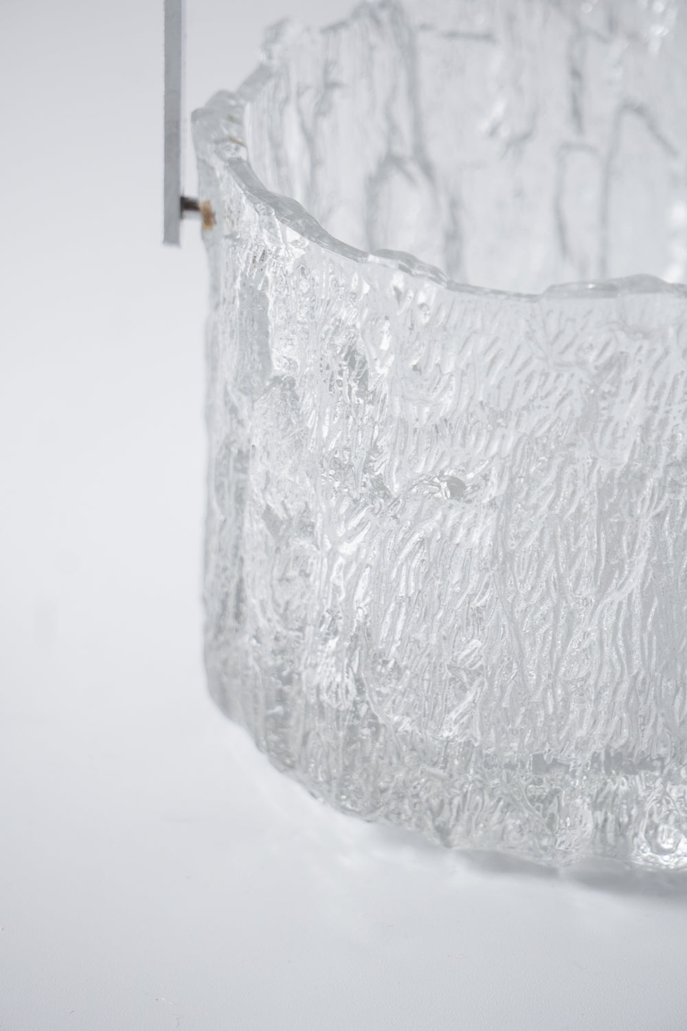 凍った氷の塊から削り出したような、ダイナミックで唯一無二のテクスチャーが魅力的なガラス製アイスバケットです。
