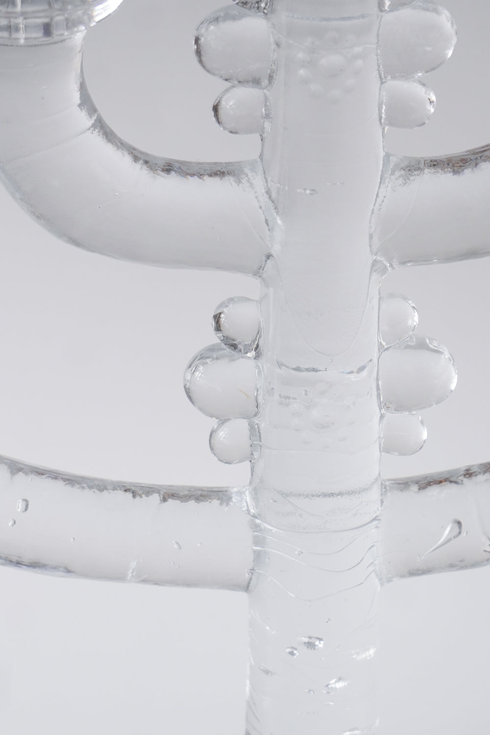 中央の柱には、複数のガラスの突起がリズミカルに配置されており、彫刻的な美しさを加えています
