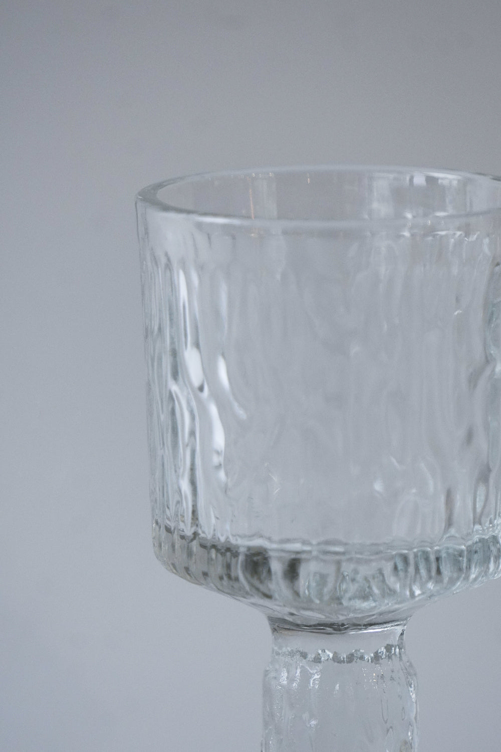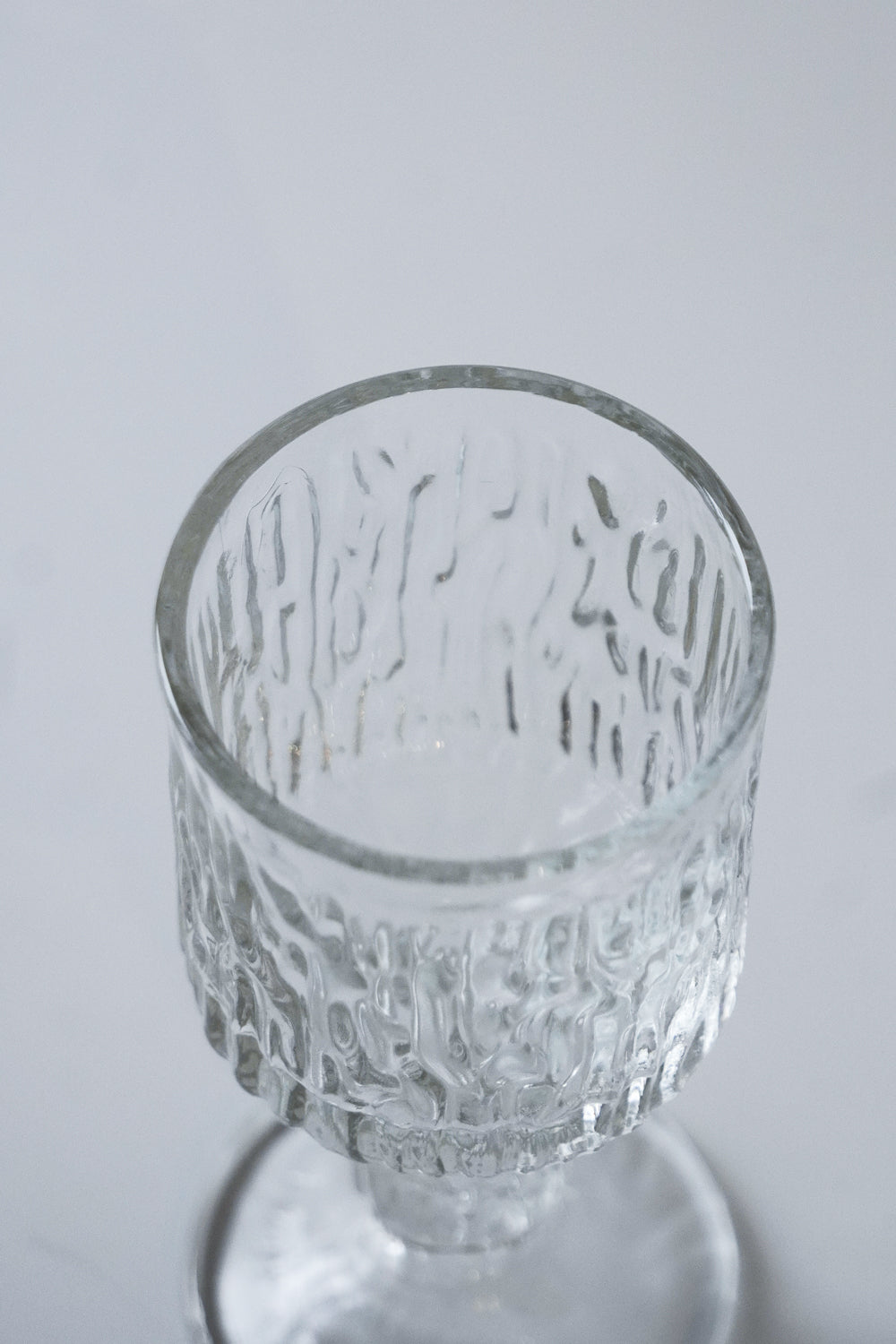 ガラスの表面全体が、ごつごつとした氷のようなユニークなテクスチャで覆われています。この凹凸が光を乱反射させ、飲み物をより涼しげに、美しく見せます。