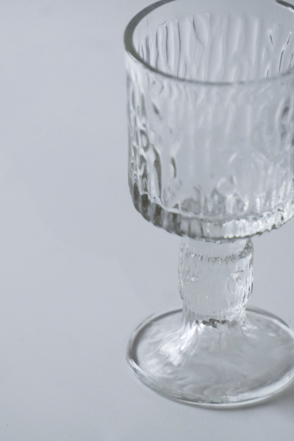 背の高いグラスで、脚付きで食前酒(アペリティフ)、リキュール、あるいは冷製スープなどを少量、エレガントに提供するのに適しています。脚があることで、手に持った時の温度変化を防ぎ、飲み物の冷たさを保ちやすくなります。