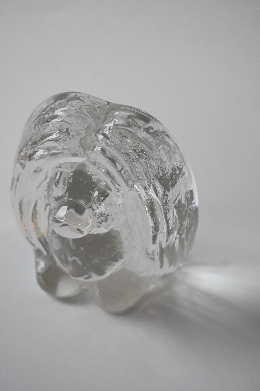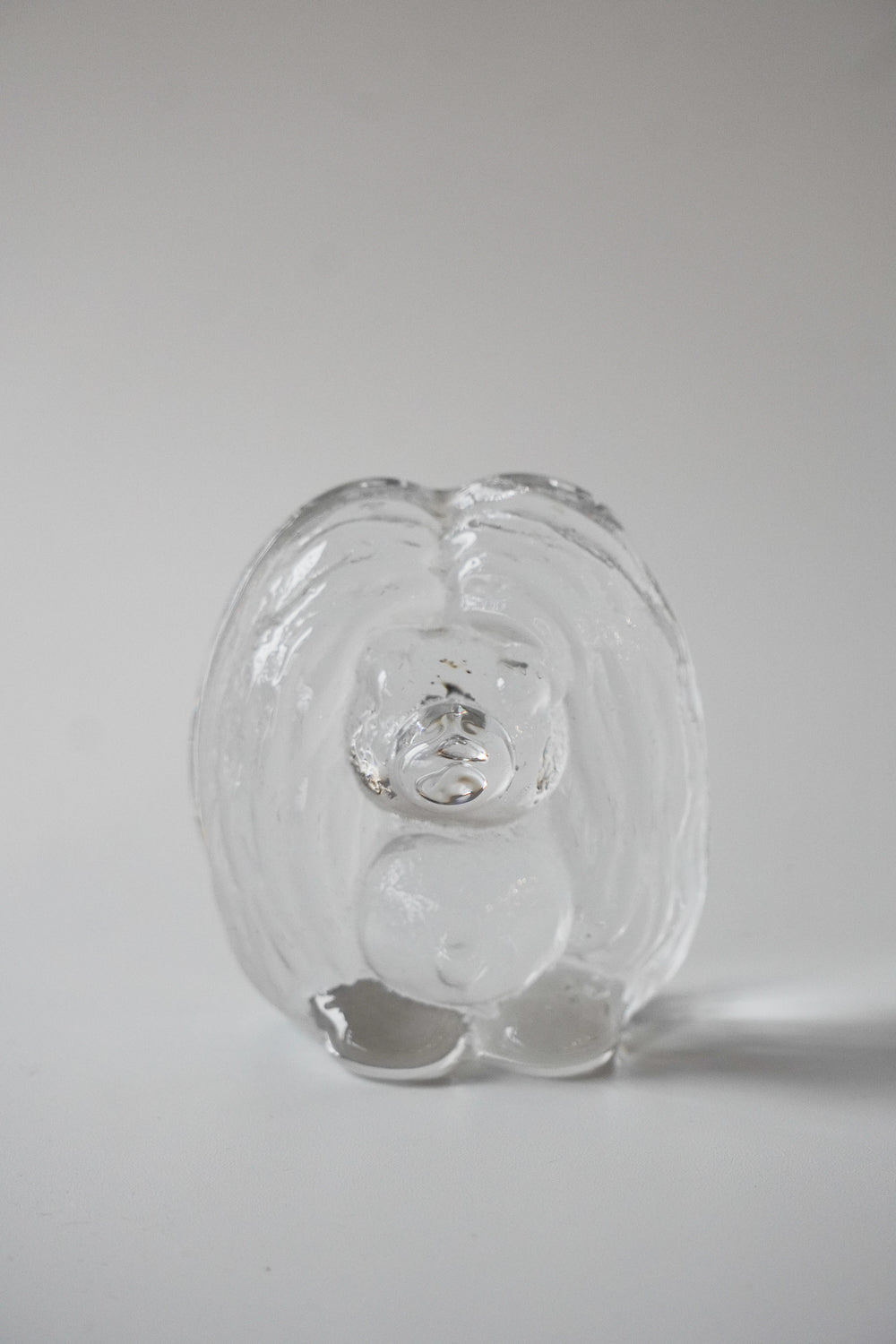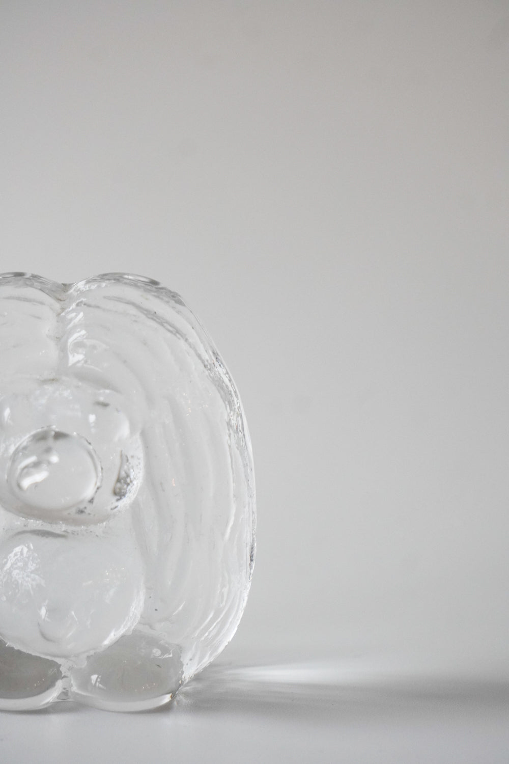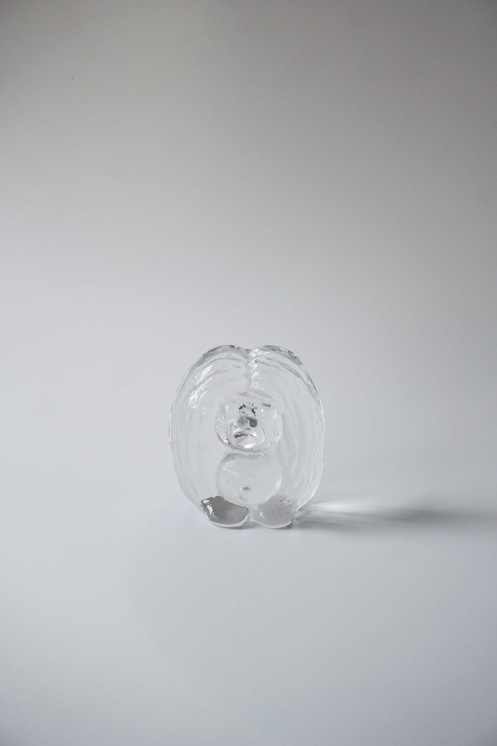 ユーモラスで愛らしいトロールにも見えます。全体的に丸みを帯びた形状と、厚みのあるガラスの質感がスカンジナビアのモダンアートを思わせる、ミッドセンチュリーモダン(MCM)のデザインの流れを汲んでいます。
