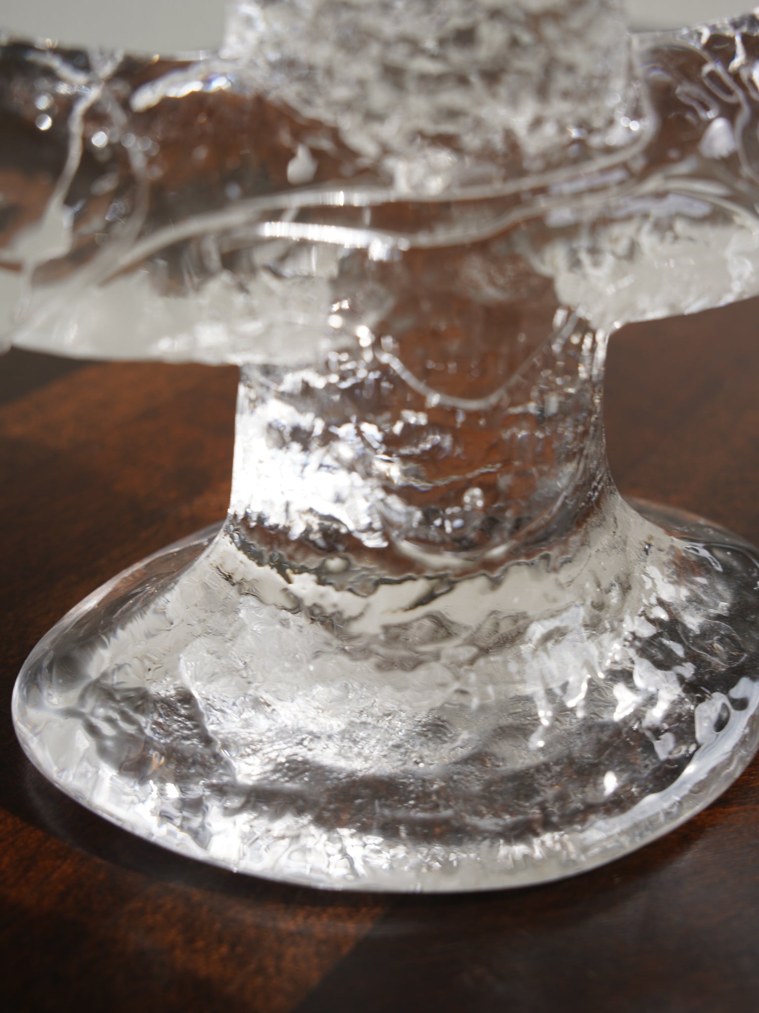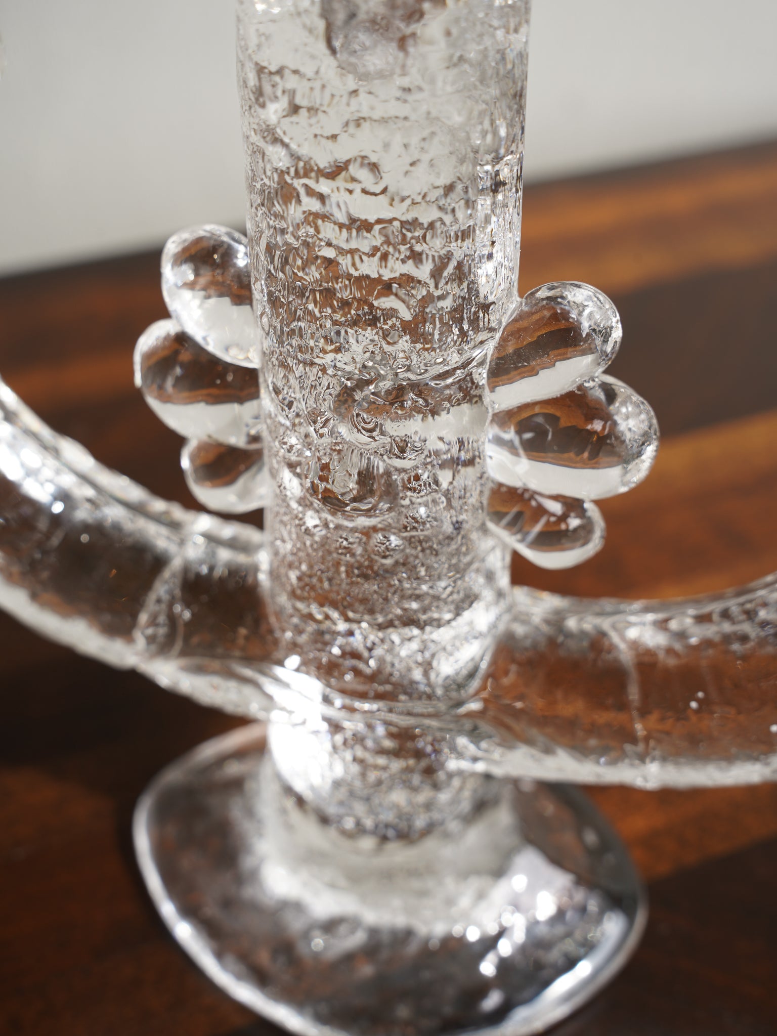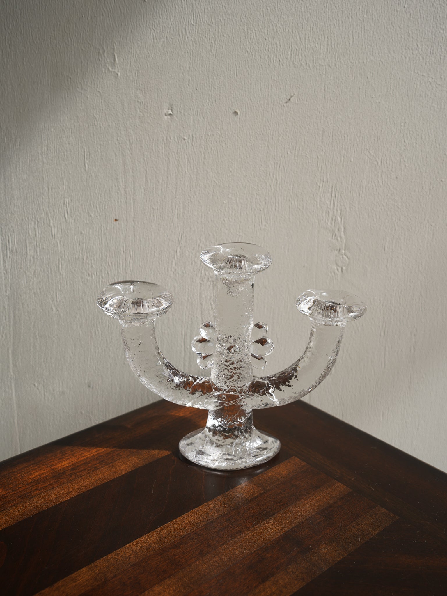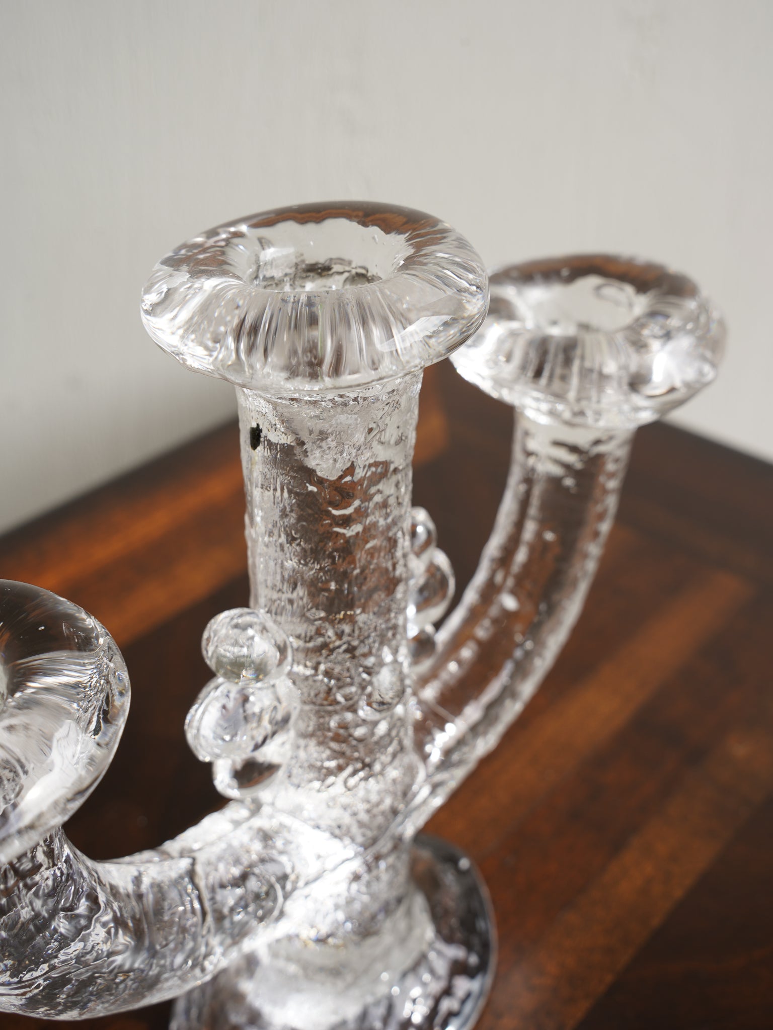 スウェーデンのガラス工房、Pukeberg(プーケベリ)が1970年代に製造した、3本立てのガラス製キャンドルスタンドです。デザイナーはStaffan Gellerstedt(スタッファン・ゲラーステッド)。