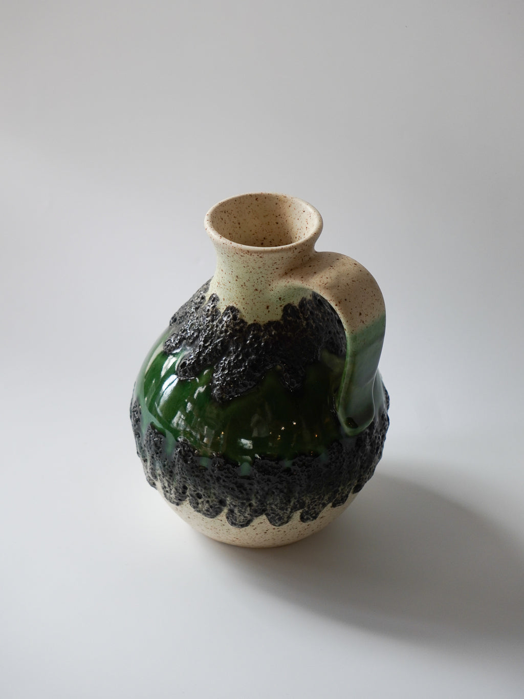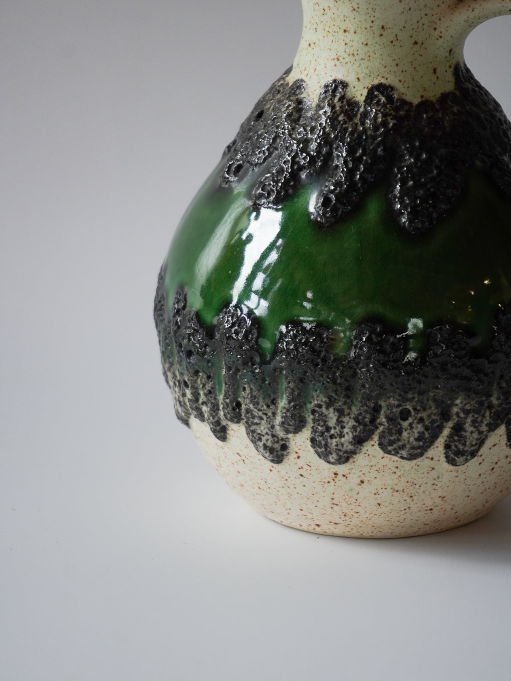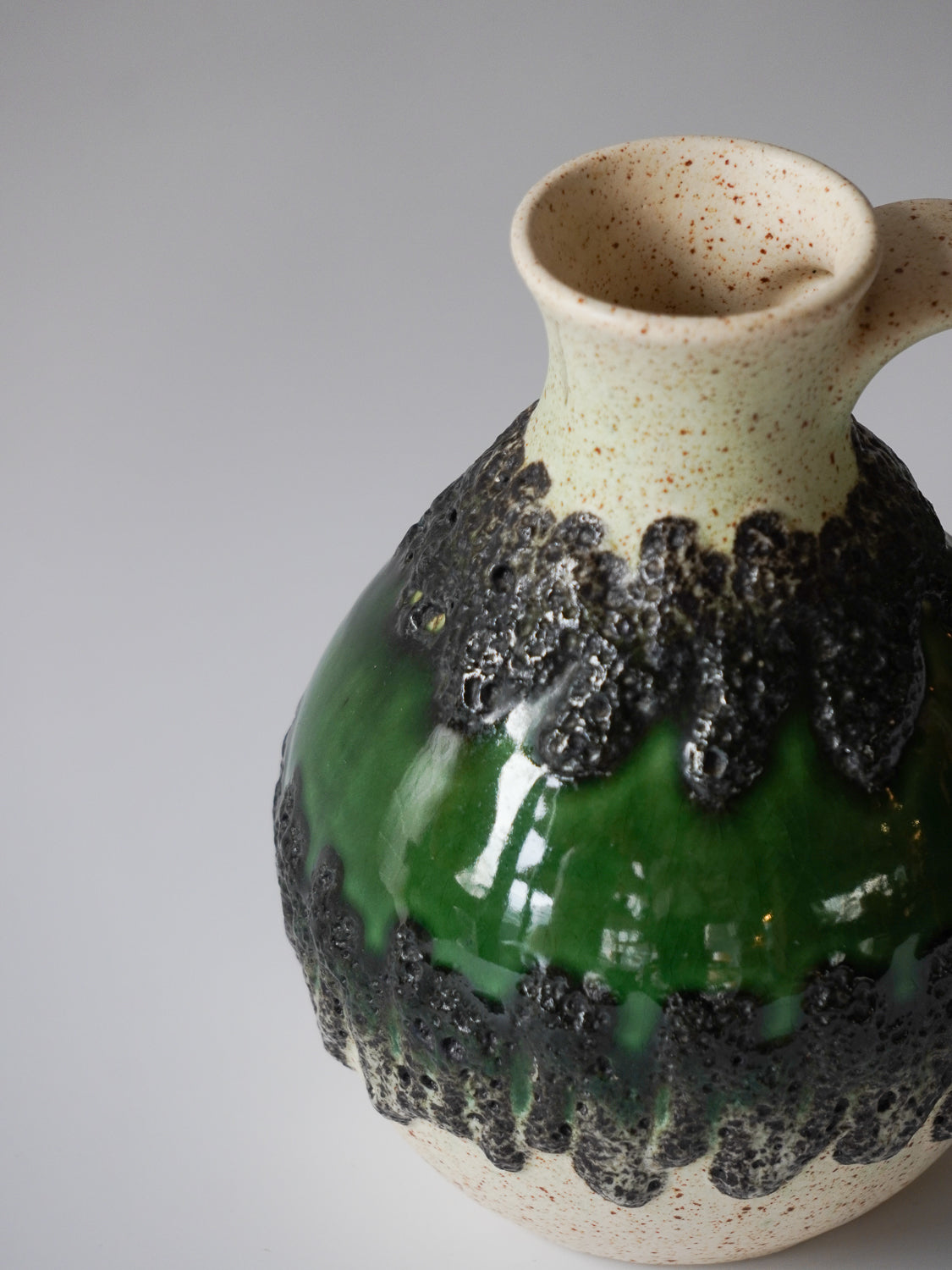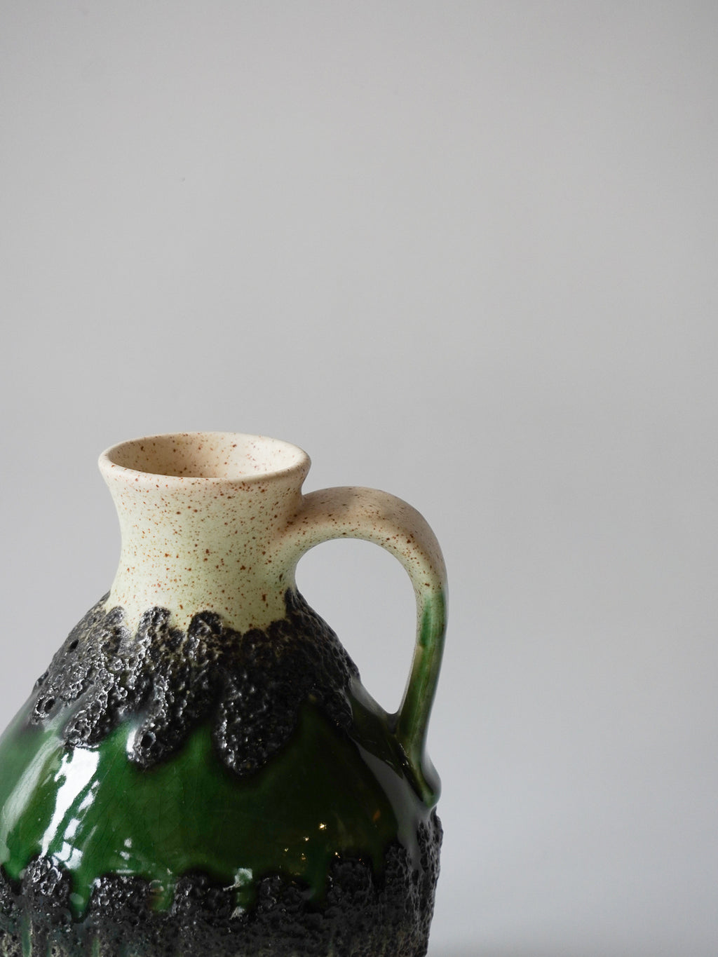 ドイツ”Bay Keramik”製、グリーンの輝きを纏うレトロモダンなピッチャーベース