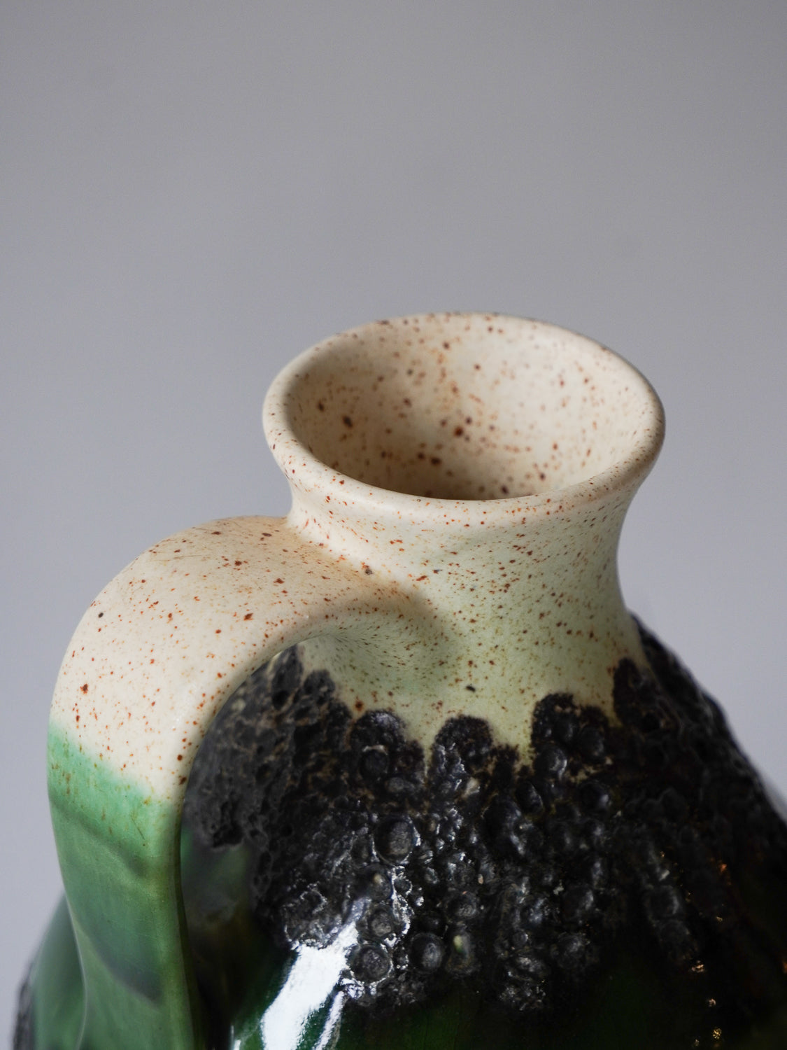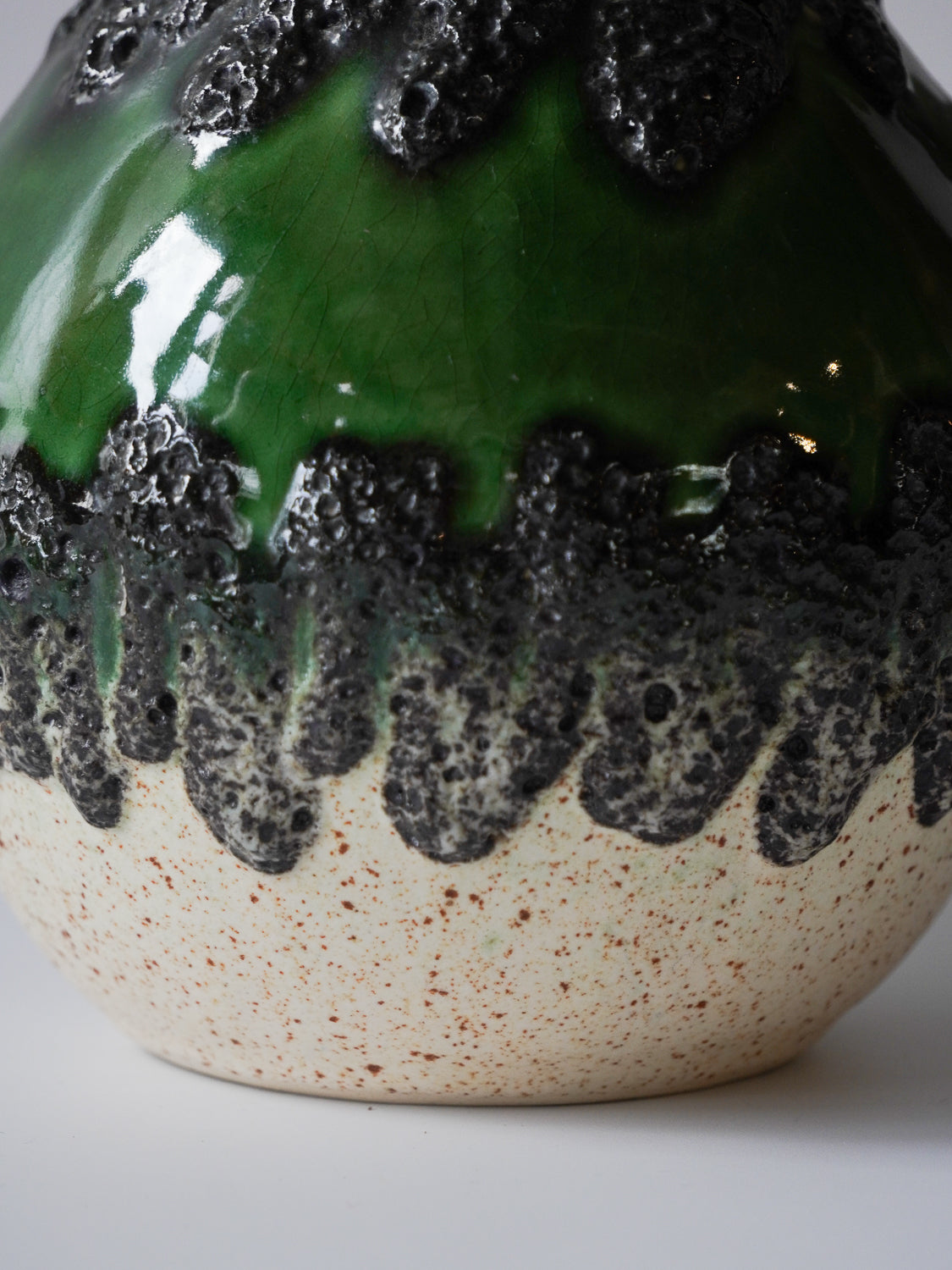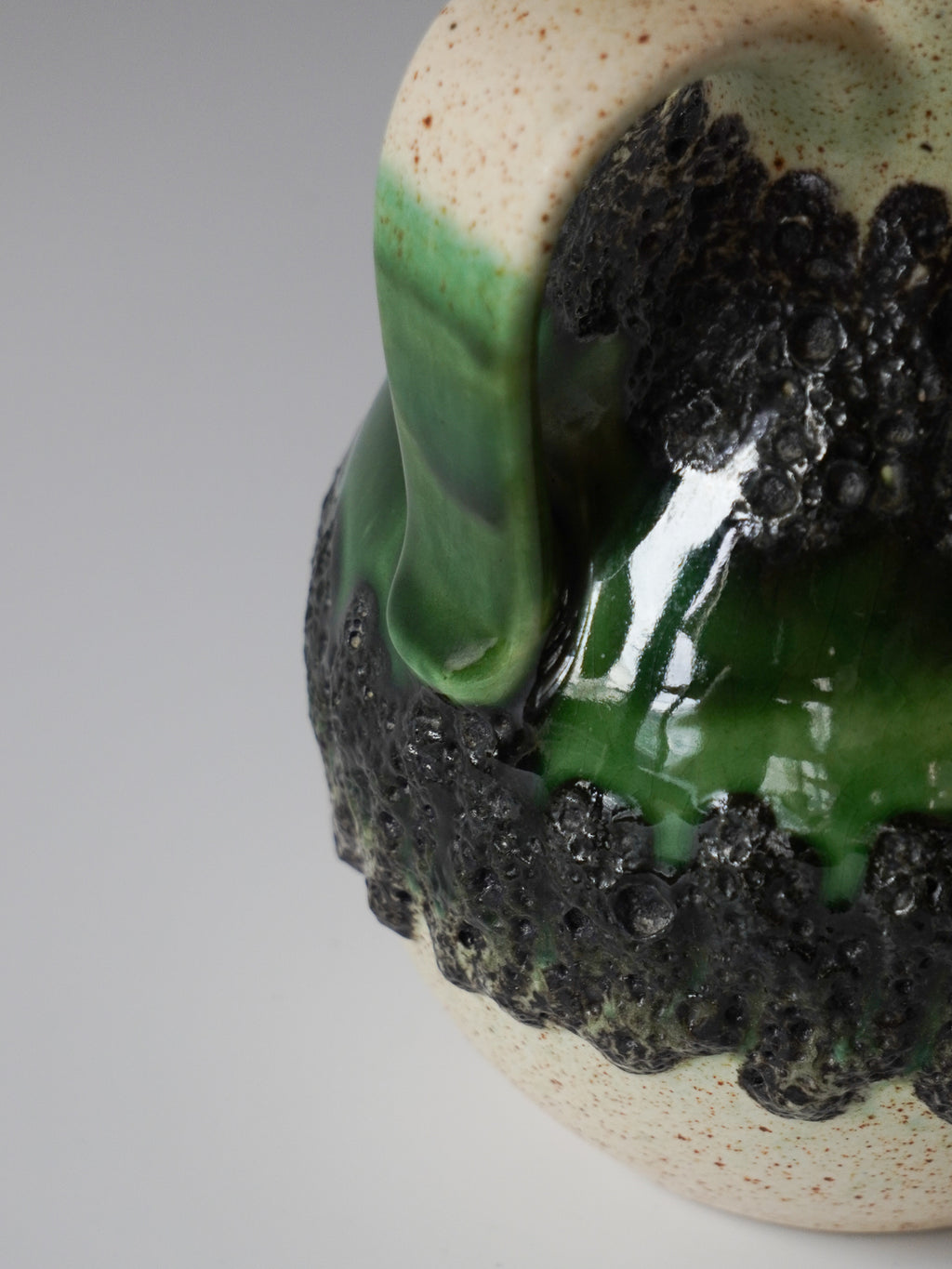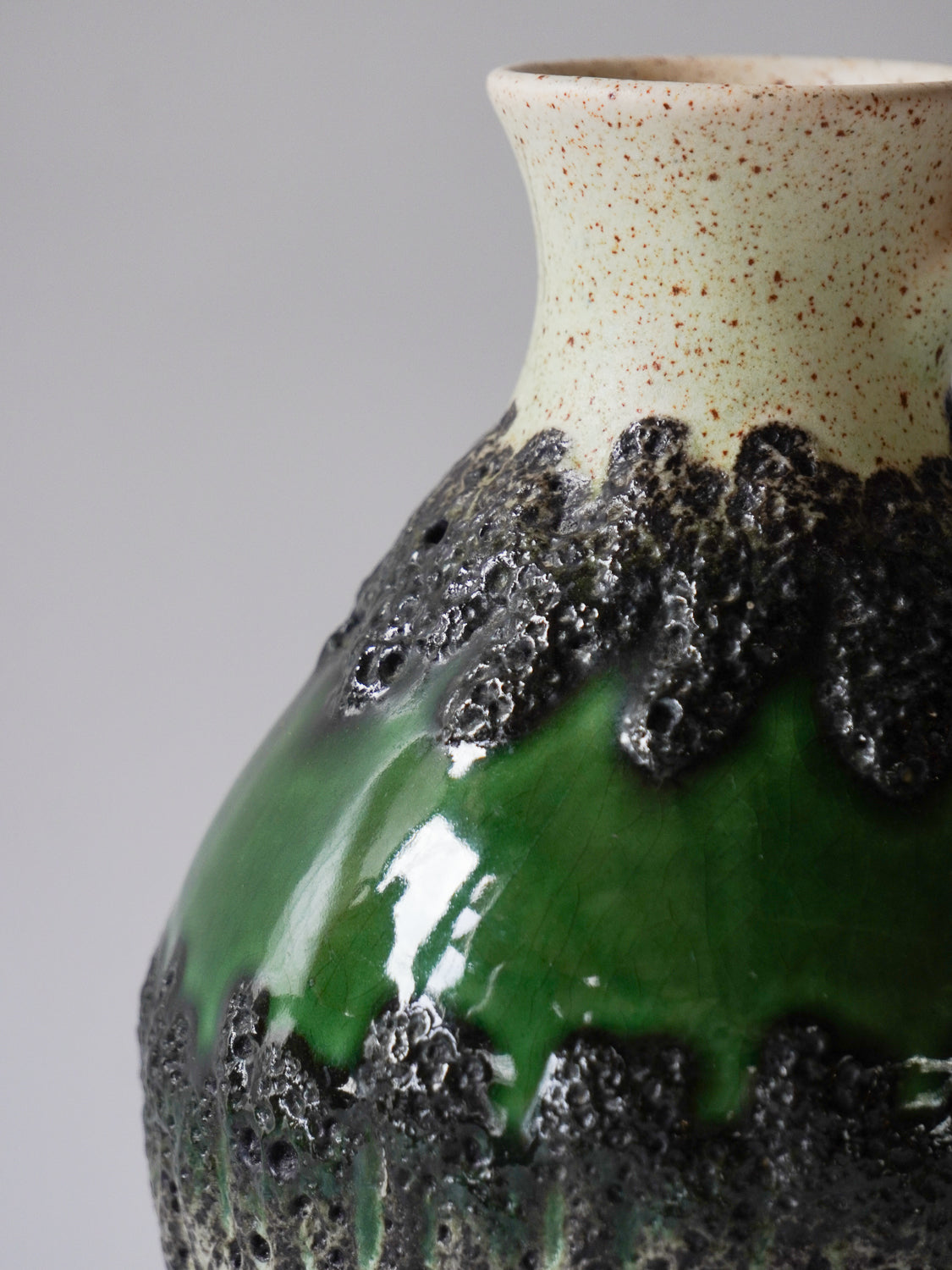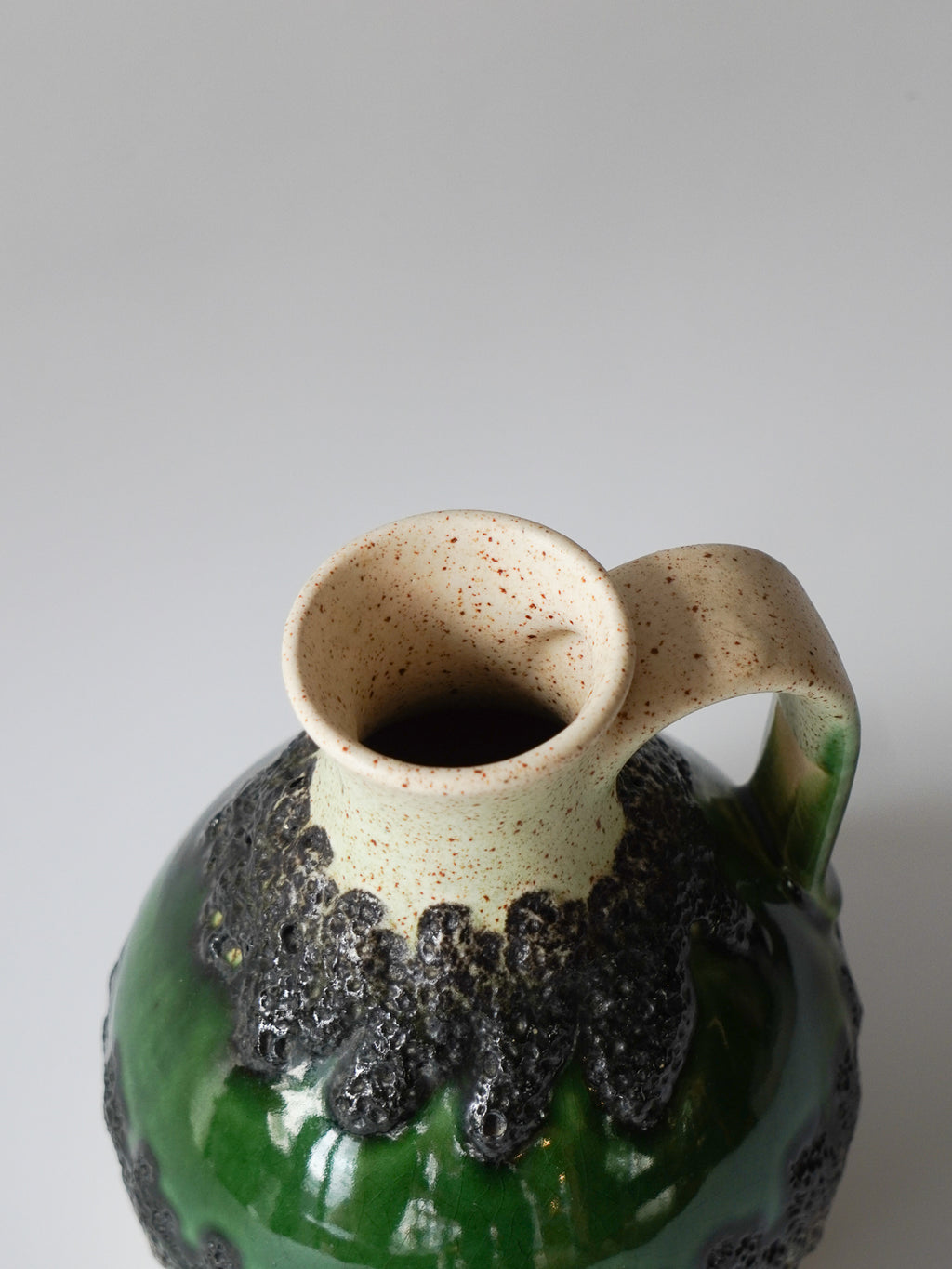 ドイツ”Bay Keramik”製、グリーンの輝きを纏うレトロモダンなピッチャーベース
