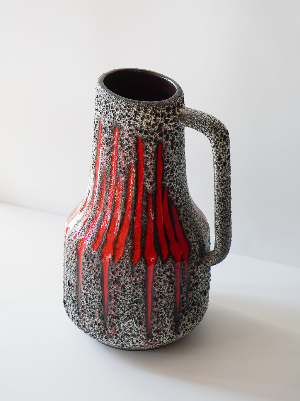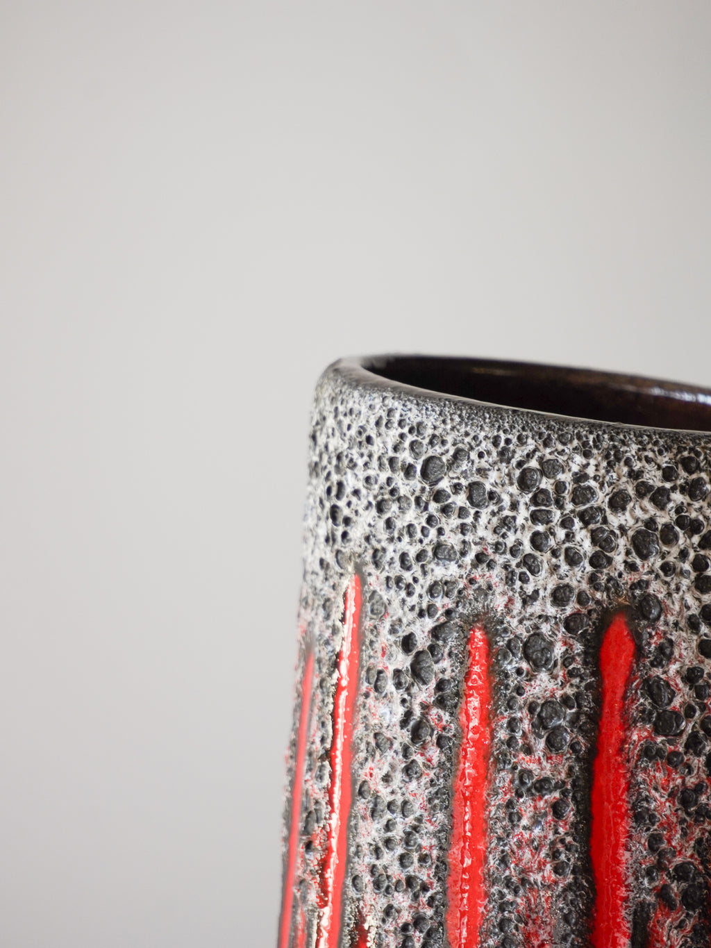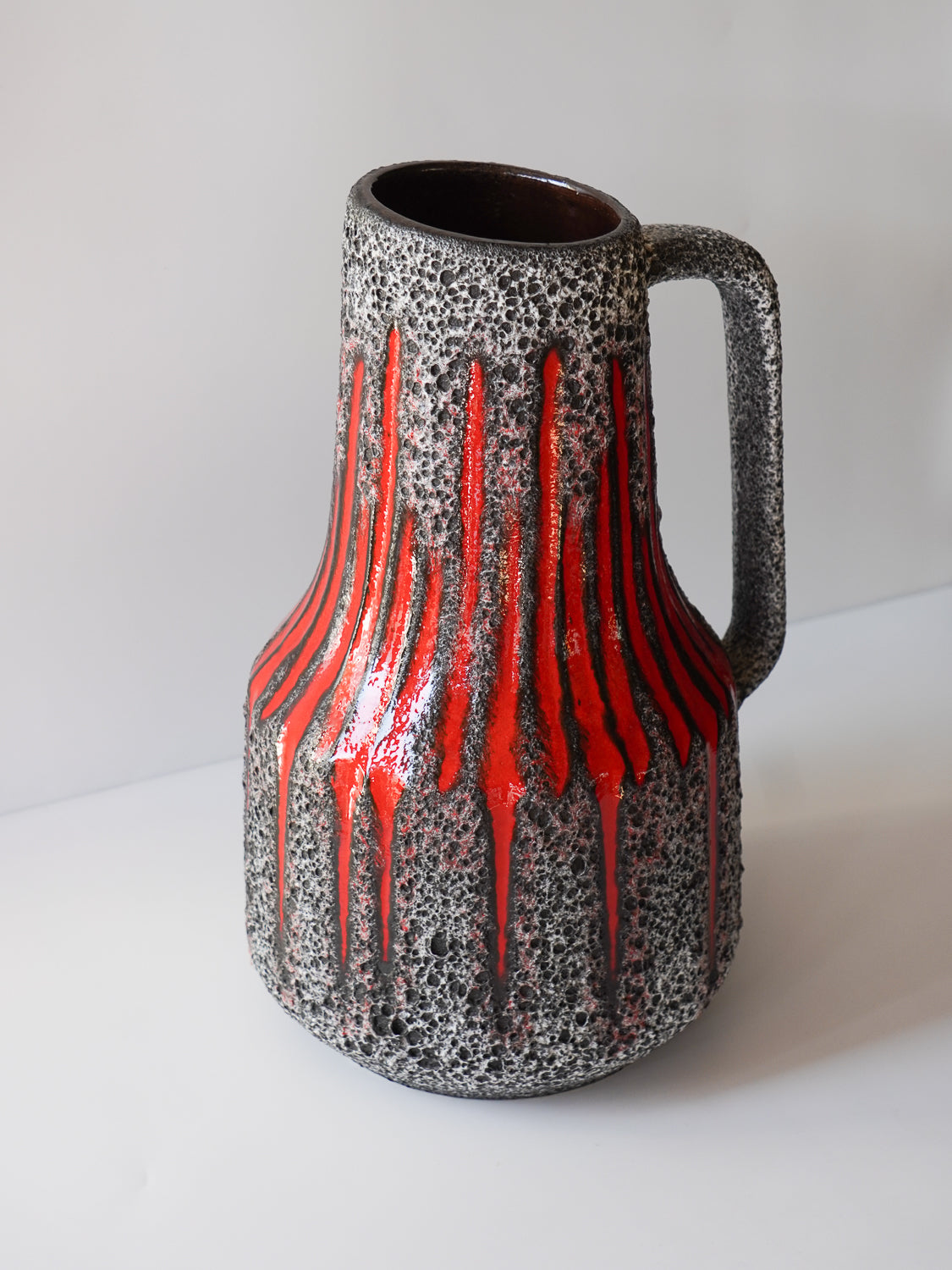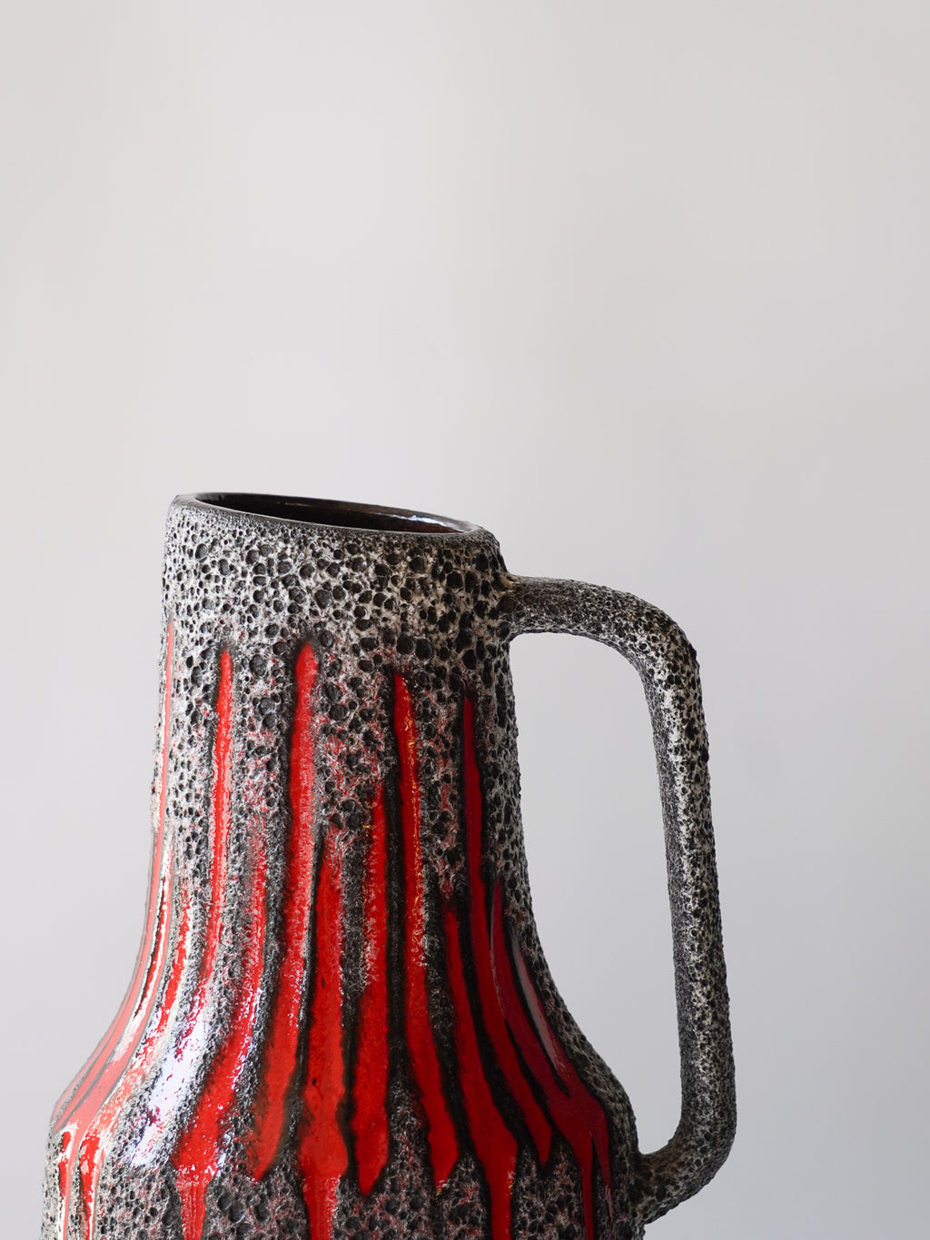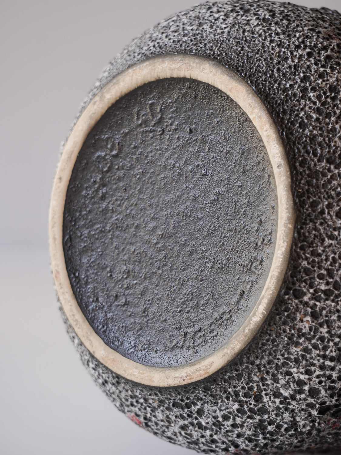 溶岩を思わせるザラザラとした凹凸感が特徴のFat Lavaスタイルを体現した、西ドイツ陶器の傑作です。