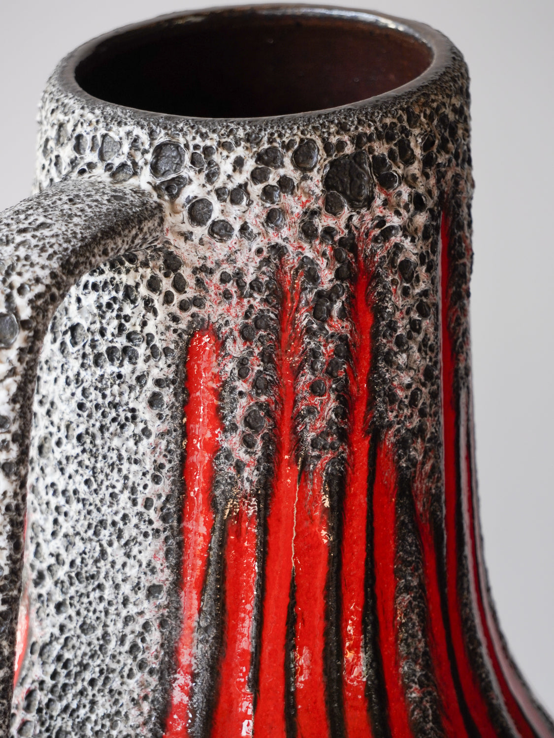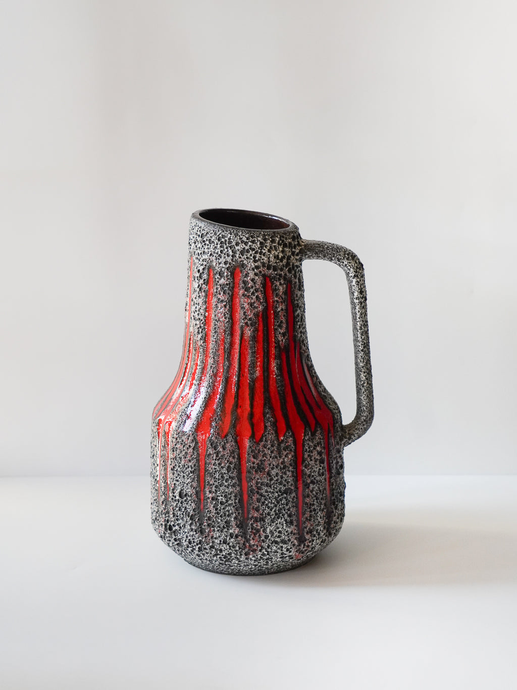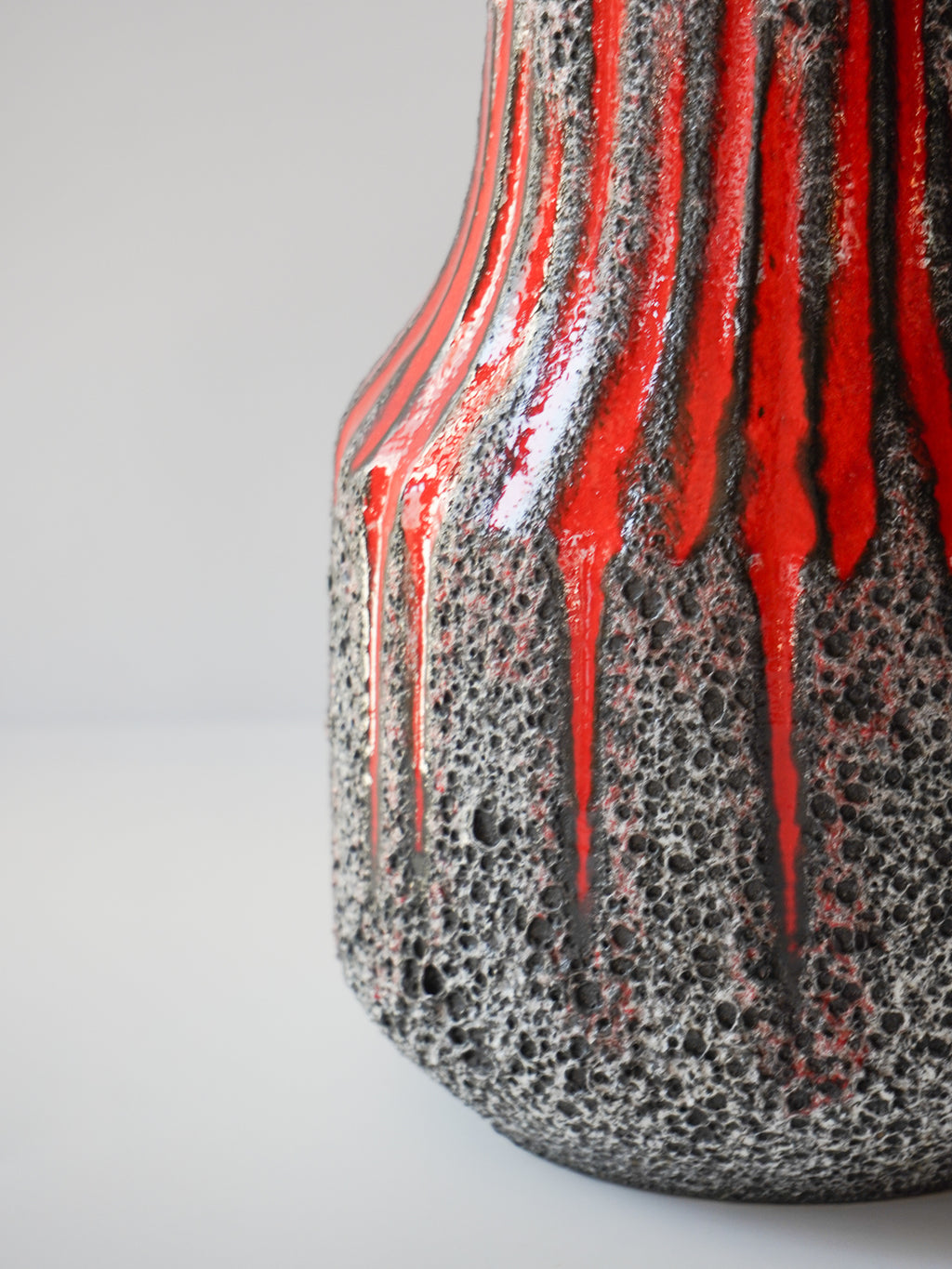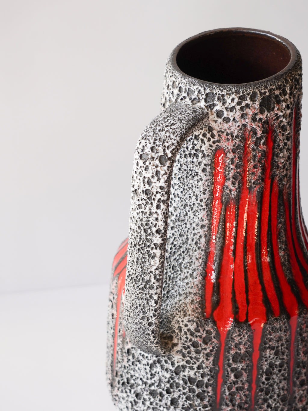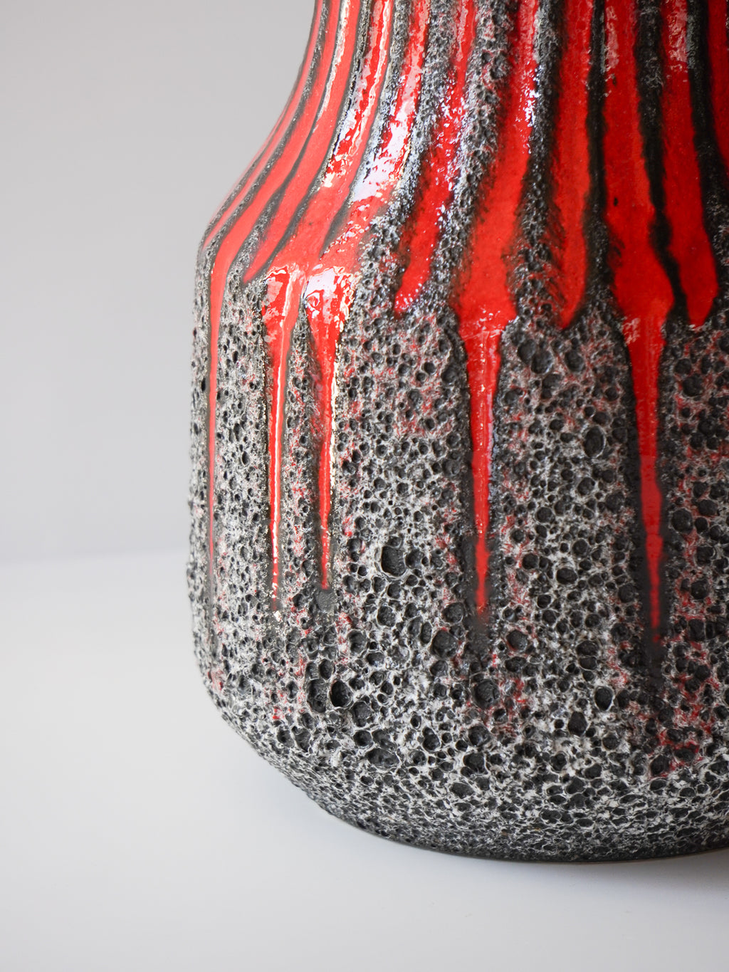 溶岩を思わせるザラザラとした凹凸感が特徴のFat Lavaスタイルを体現した、西ドイツ陶器の傑作です。