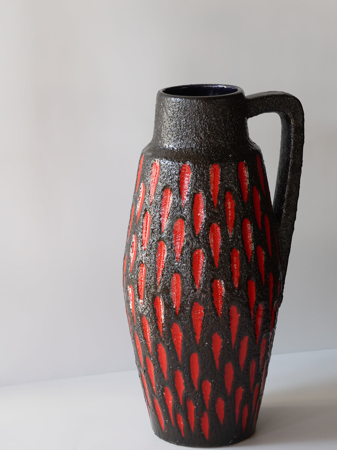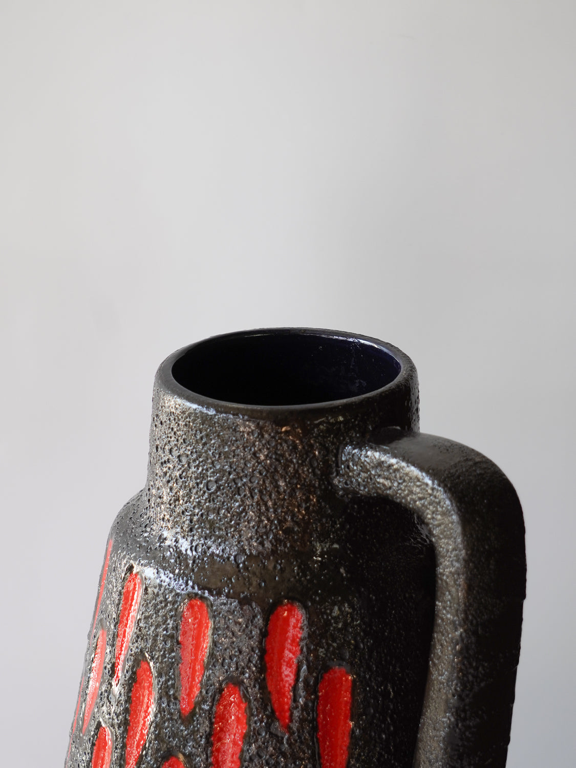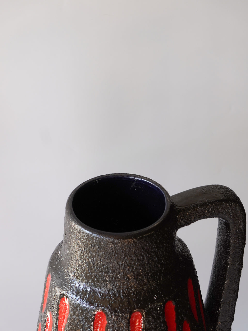 西ドイツ陶器を象徴するFat Lavaの中でも、極めてインパクトの強いデザインを持つピッチャー型花瓶です。