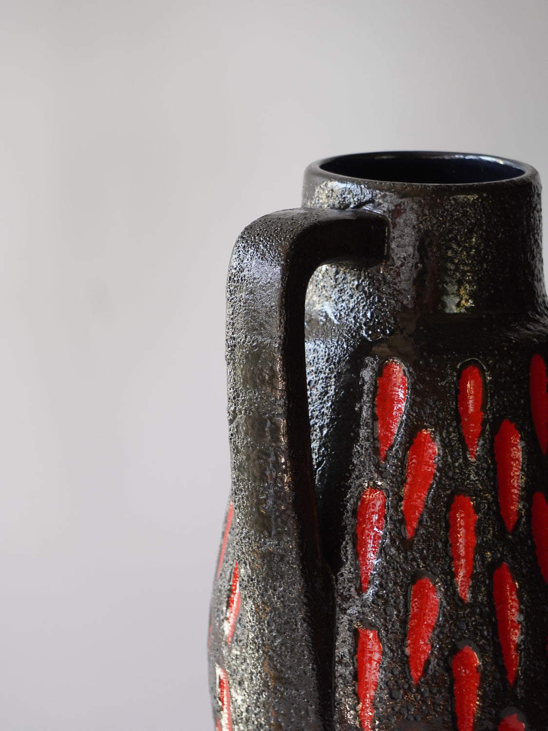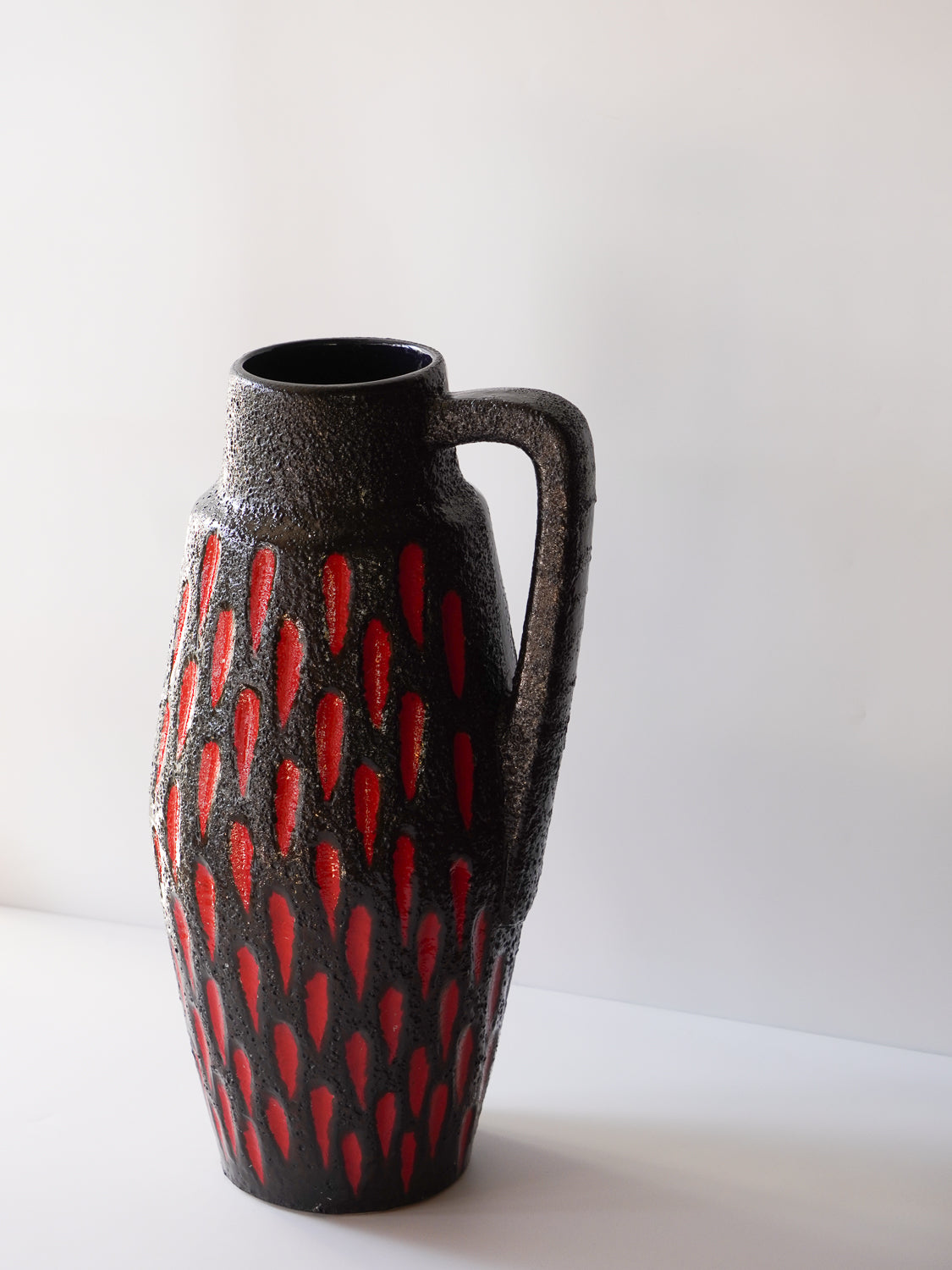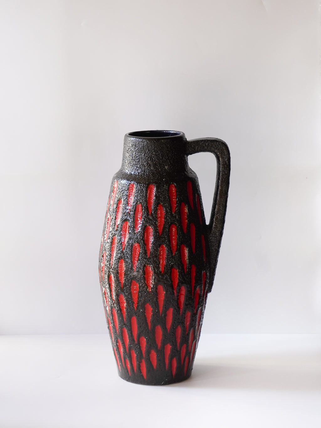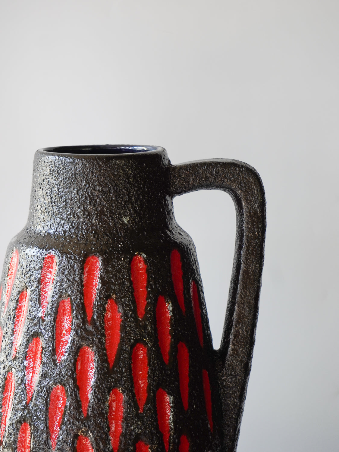 西ドイツ陶器を象徴するFat Lavaの中でも、極めてインパクトの強いデザインを持つピッチャー型花瓶です。