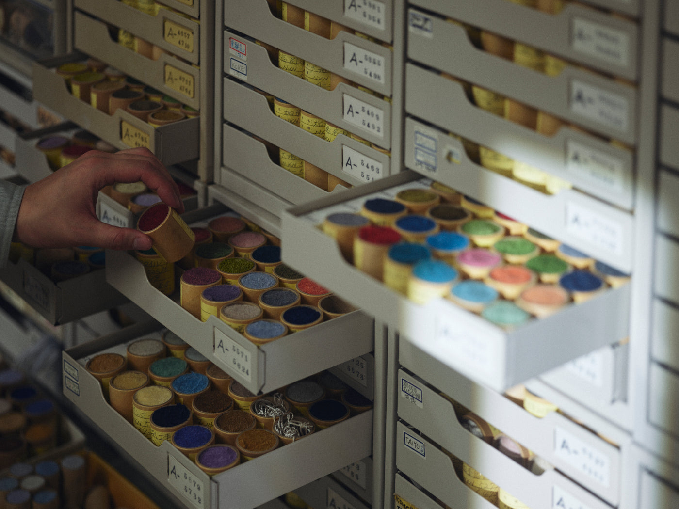 「品質こそ、デザインなり。」の精神のもと、創業時から研鑽を重ねてきた原料(羊毛)へのこだわりと、糸づくりから染色、織り、仕上げまで、じゅうたんの全製作工程を自社工房で厳格に一貫管理する生産体制が、山形緞通のものづくりを支えています。