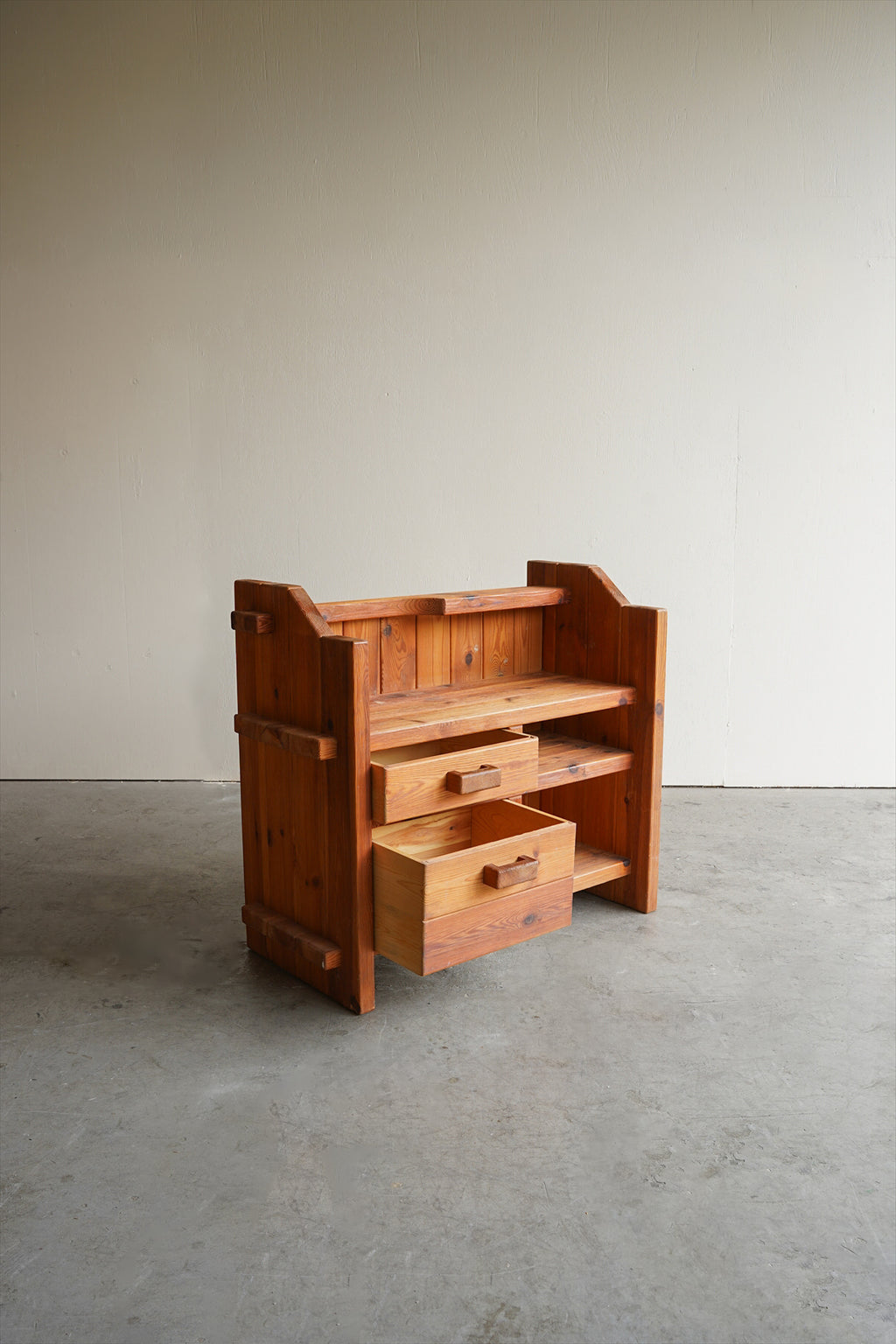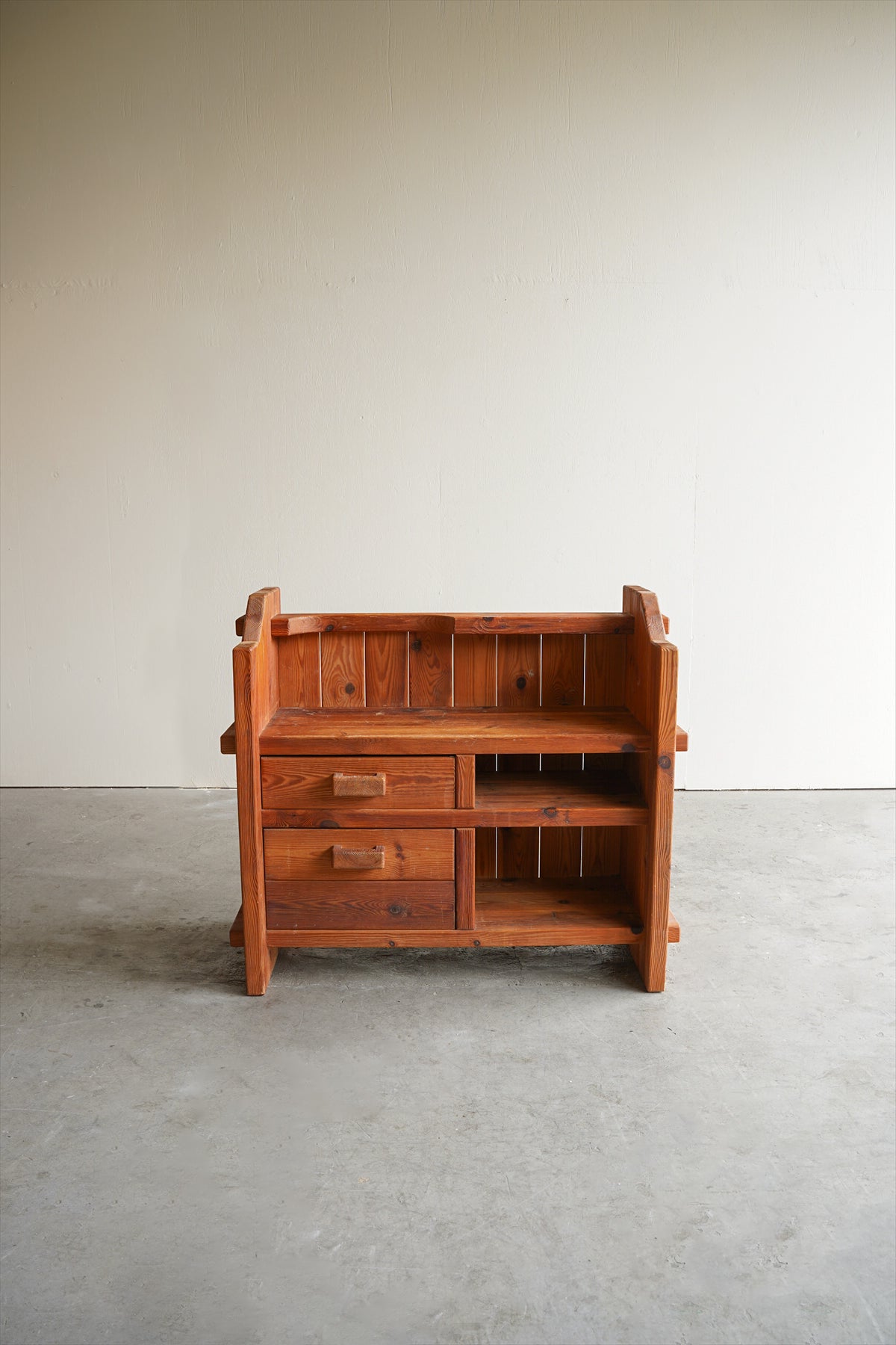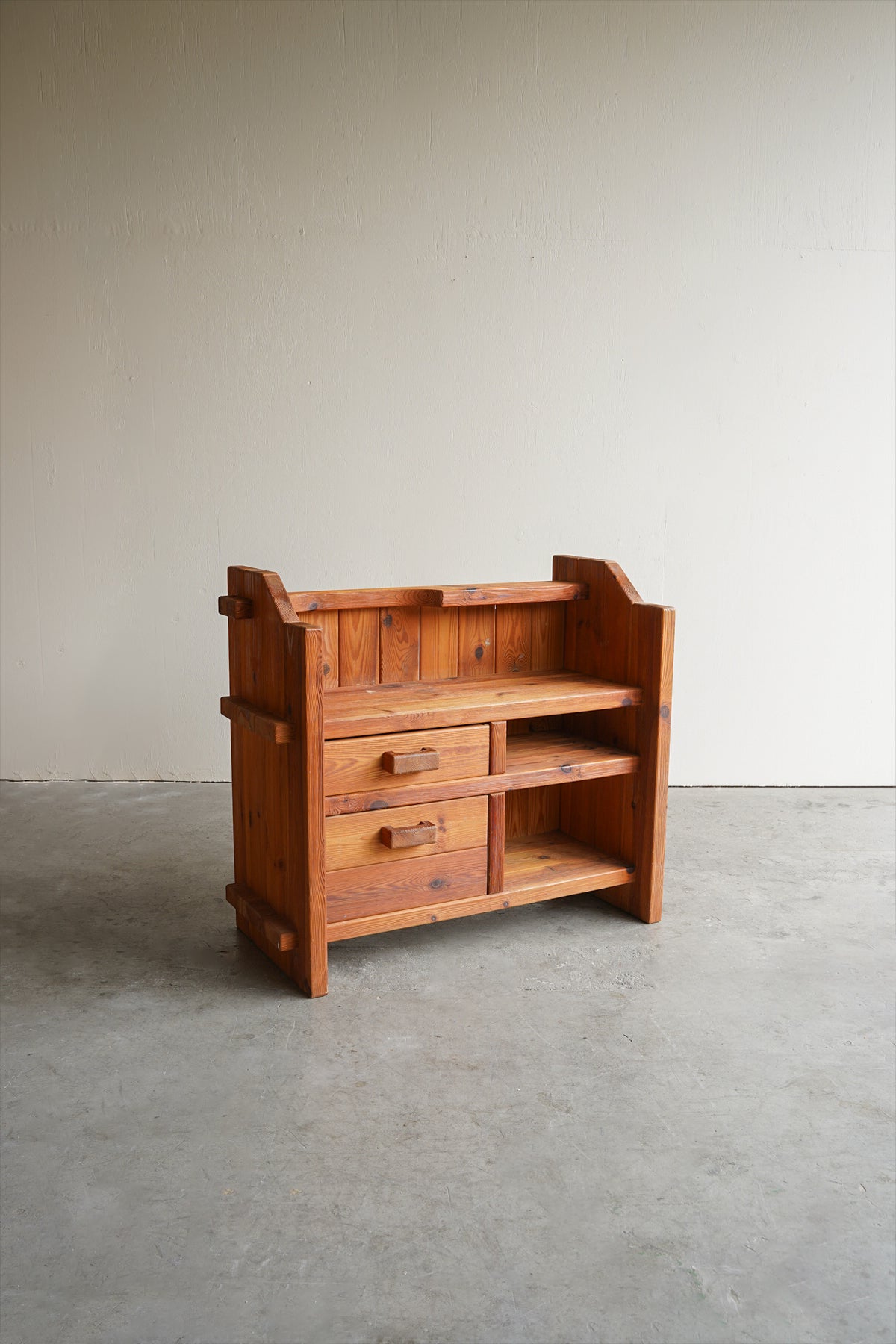 引き出しとオープン棚が一体となった実用的な設計で、収納とディスプレイの両方に活躍します。