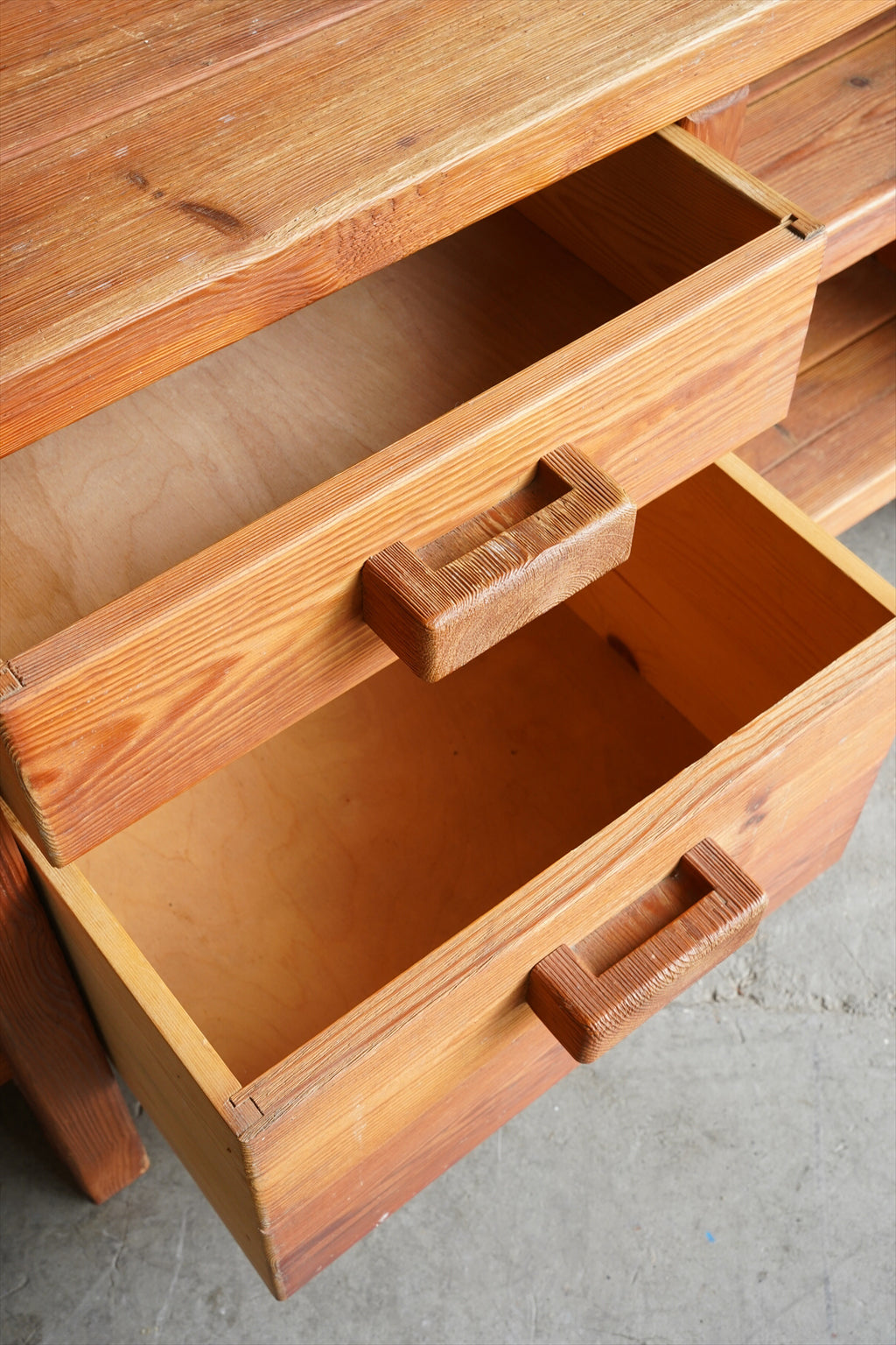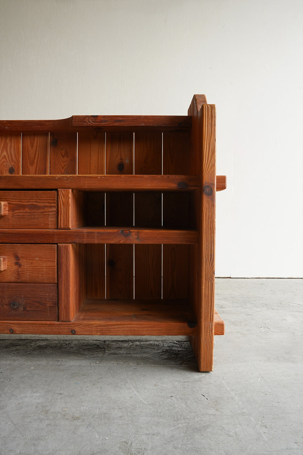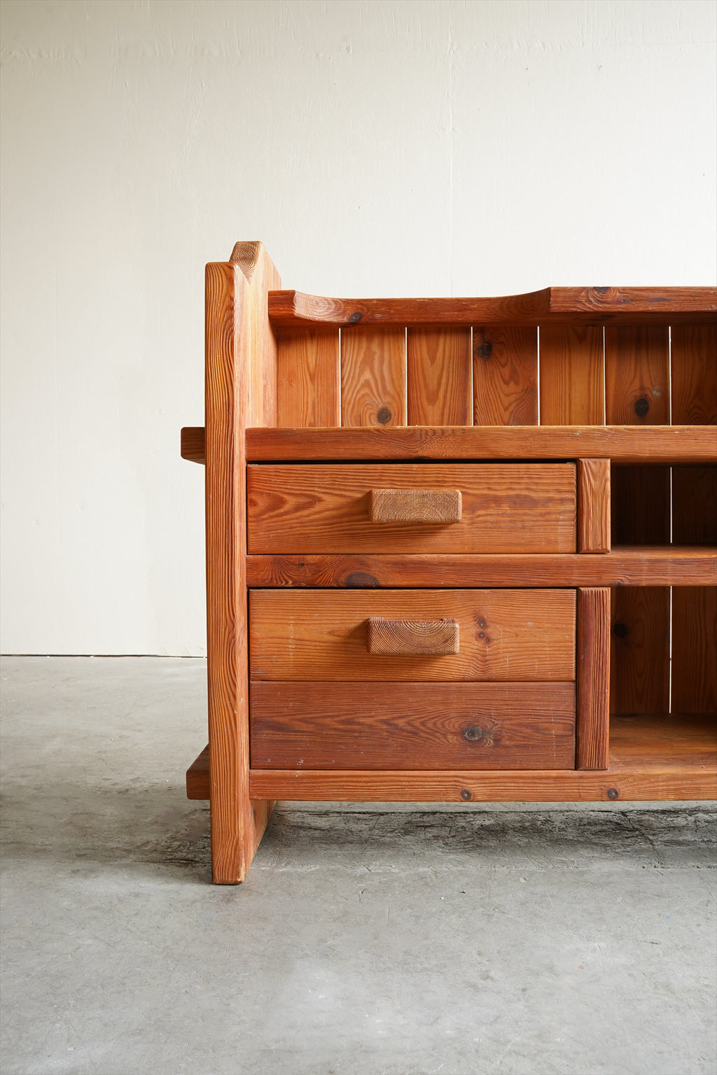 引き出しとオープン棚が一体となった実用的な設計で、収納とディスプレイの両方に活躍します。