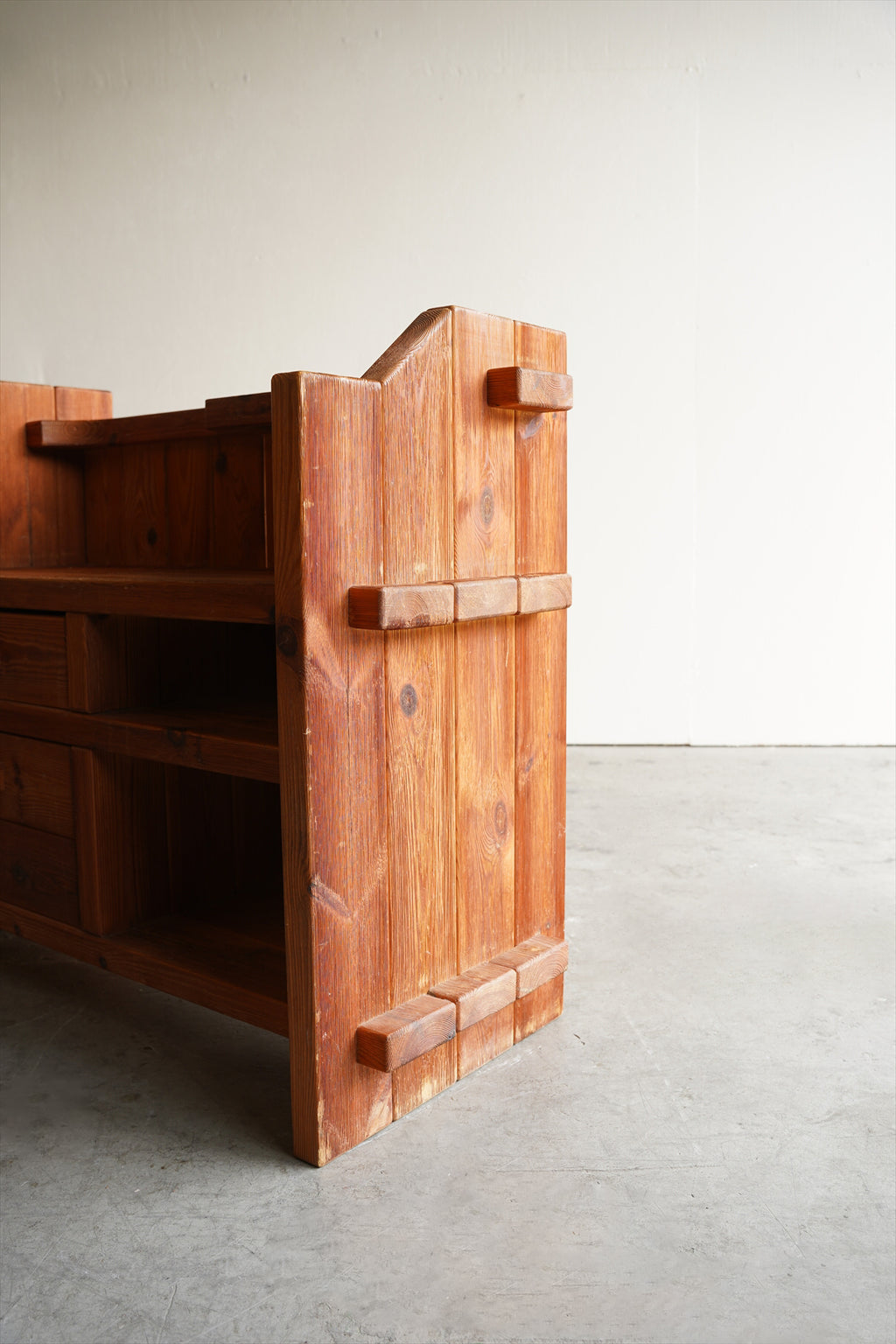 しっかりと厚みのある木材を使い、無骨さと温もりを兼ね備えた一台。