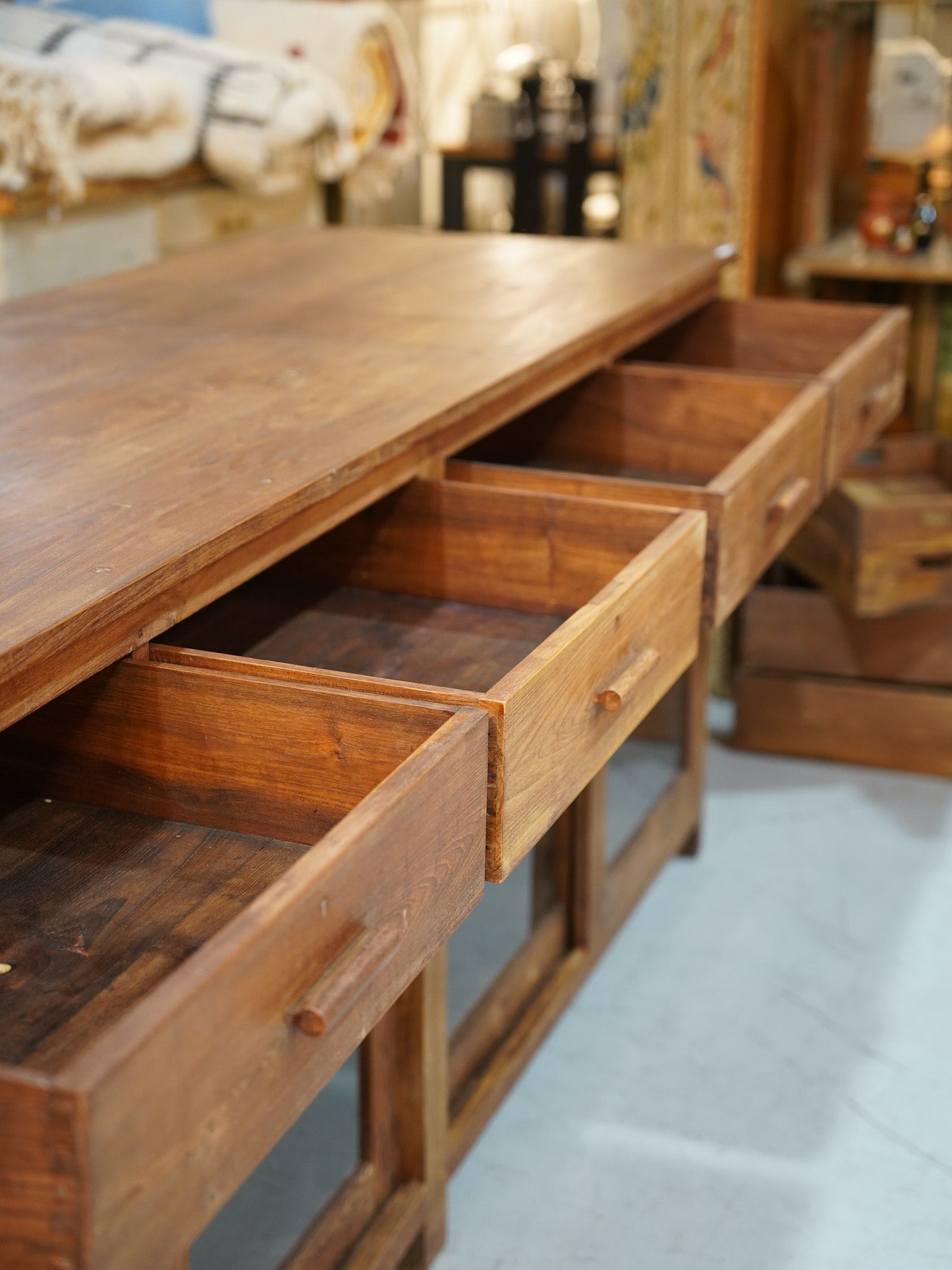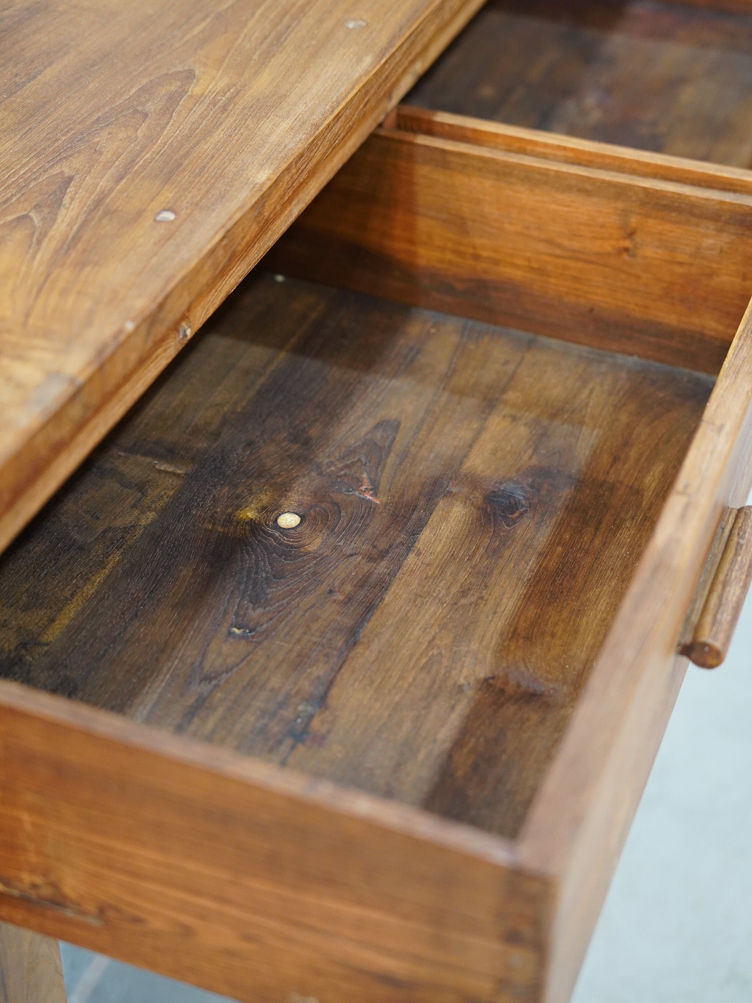 無垢のチーク材の表情と、経年によって深みを増した木肌が美しい一台です。